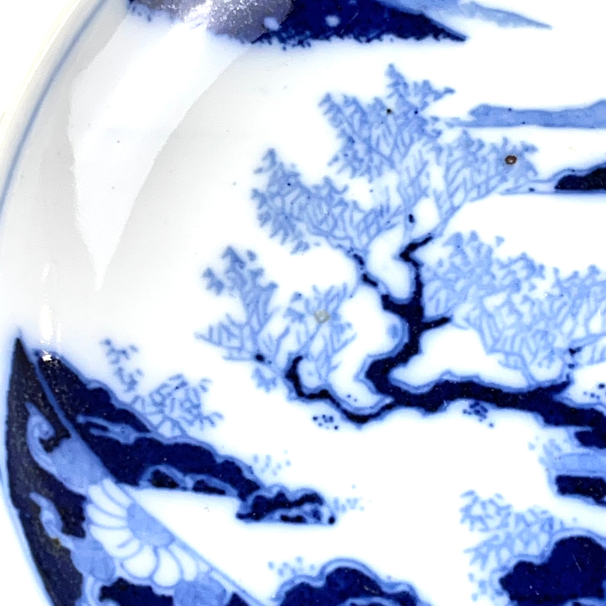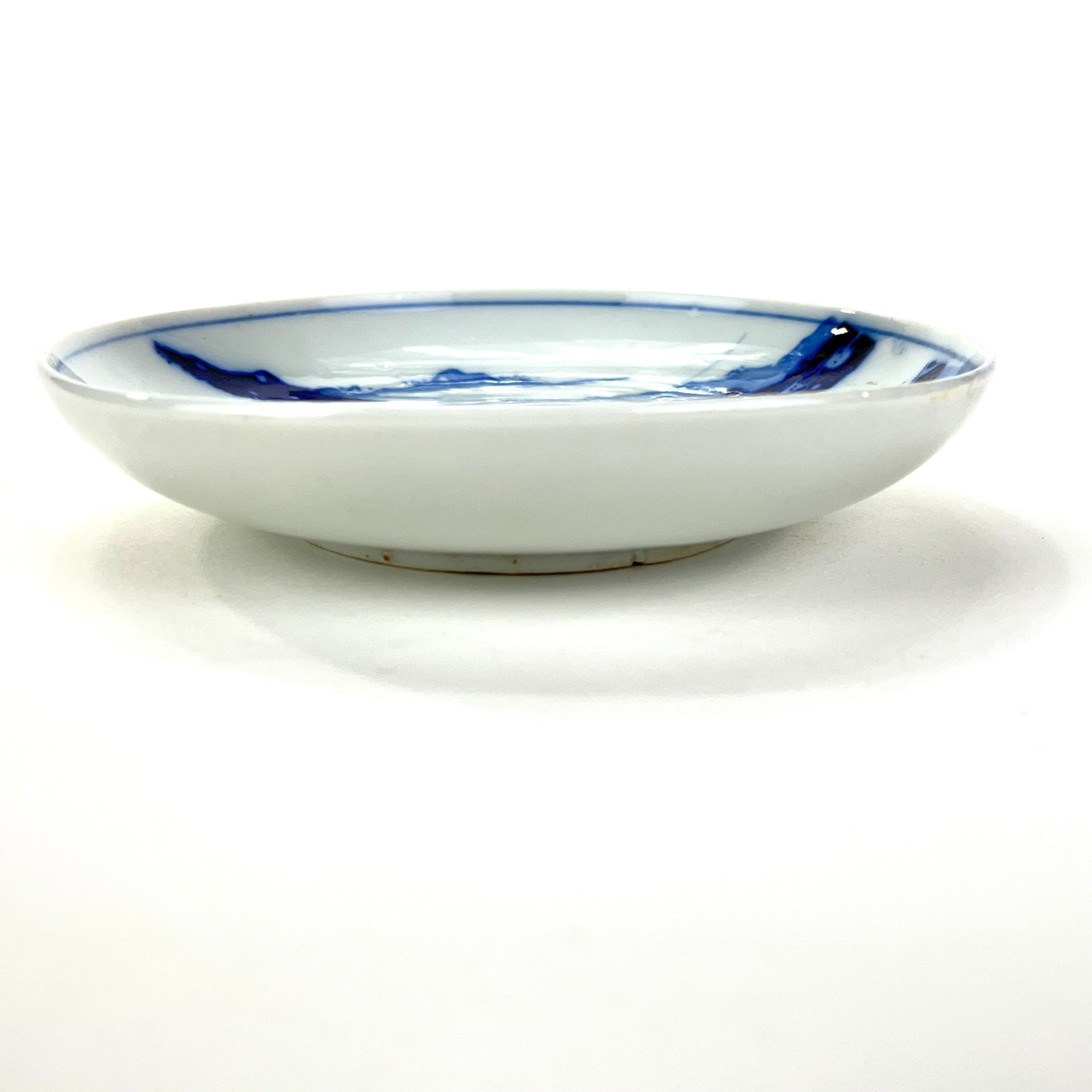 Antique c.1900 Meiji Era Japanese Ceramic Imari Plate Cranes w/ Landscape 6"