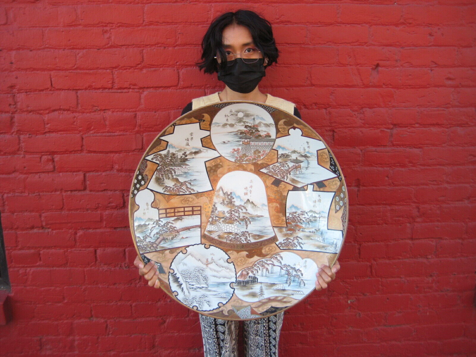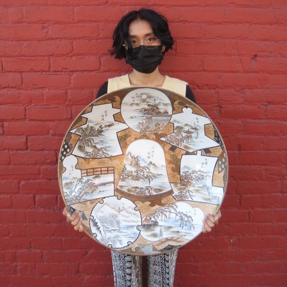 Toyokuni This charger measures 24" across (61 cm) and remains in excellent condition. Great as a serving plate and also great for serving a variety of appetizers. It is truly a work of stand alone art.