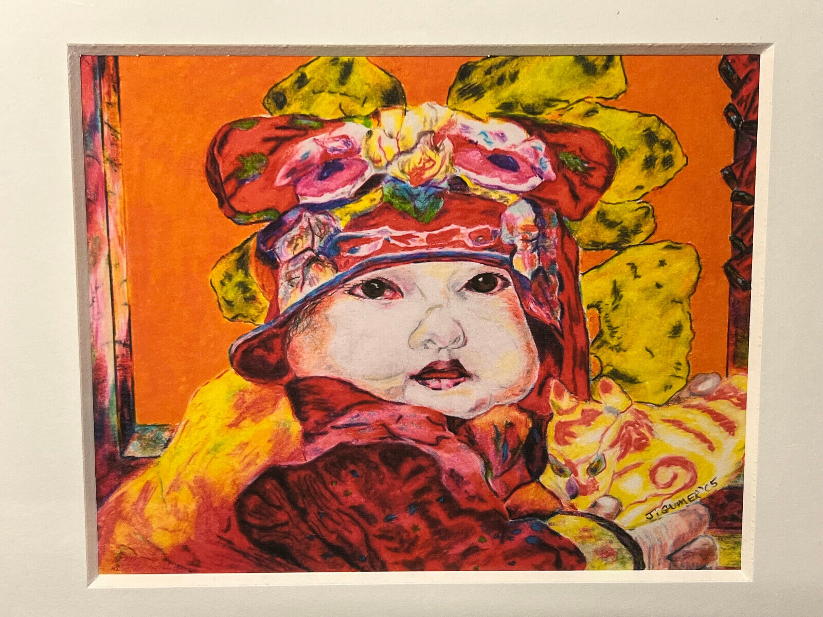 Framed Print of Baby with Colorful Bows by J. Gumer 16.5" x 13.5" Framed
