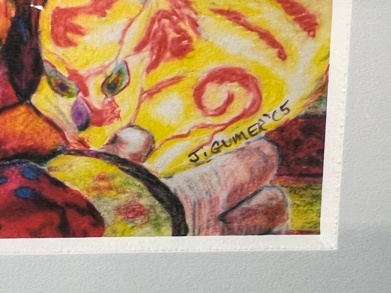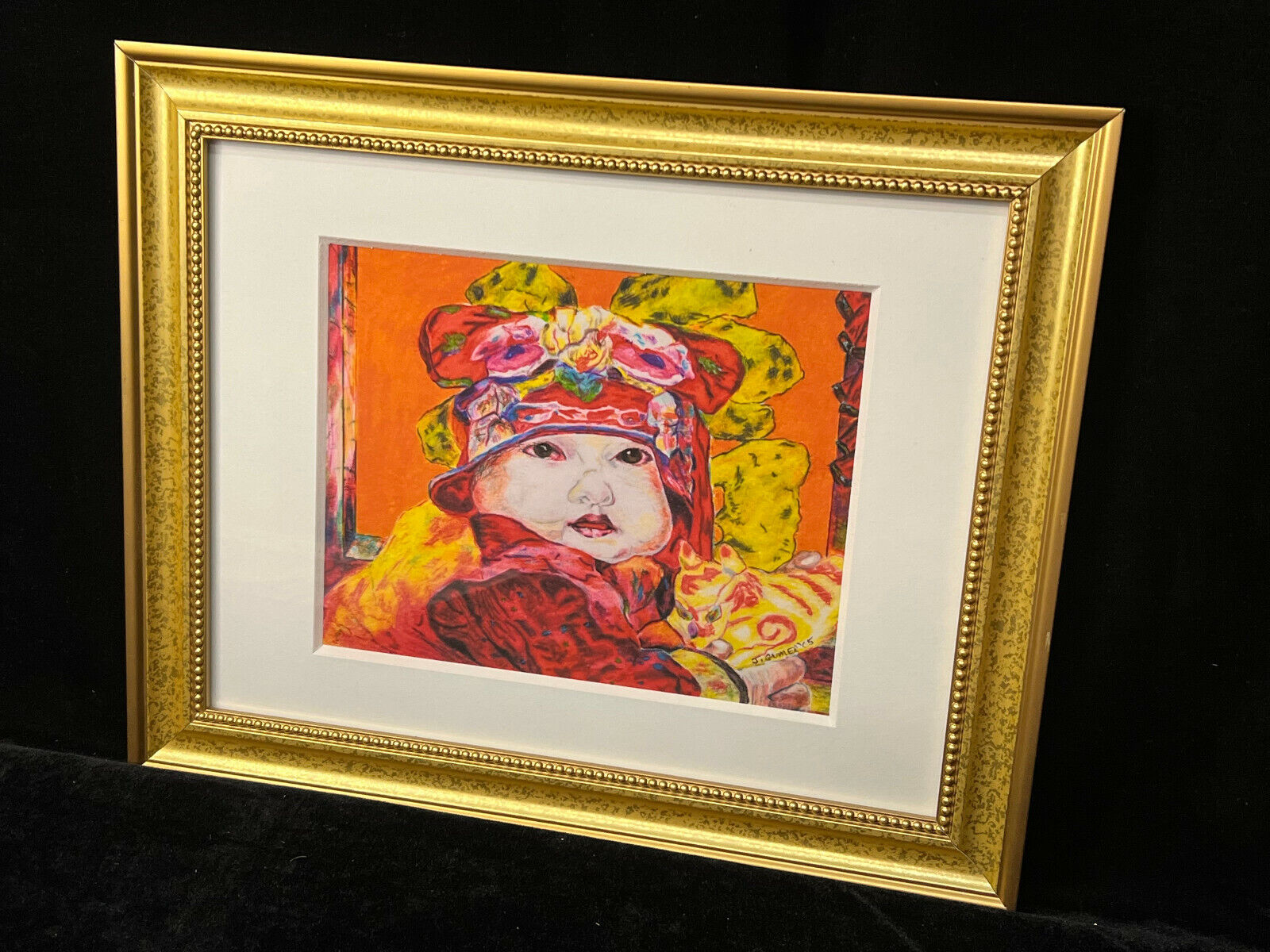 This is a framed and matted print of a small children by J. Gumer. It measures approximately 16.5" wide by 13.5" tall (42 x 34 cm). It is in like new condition.