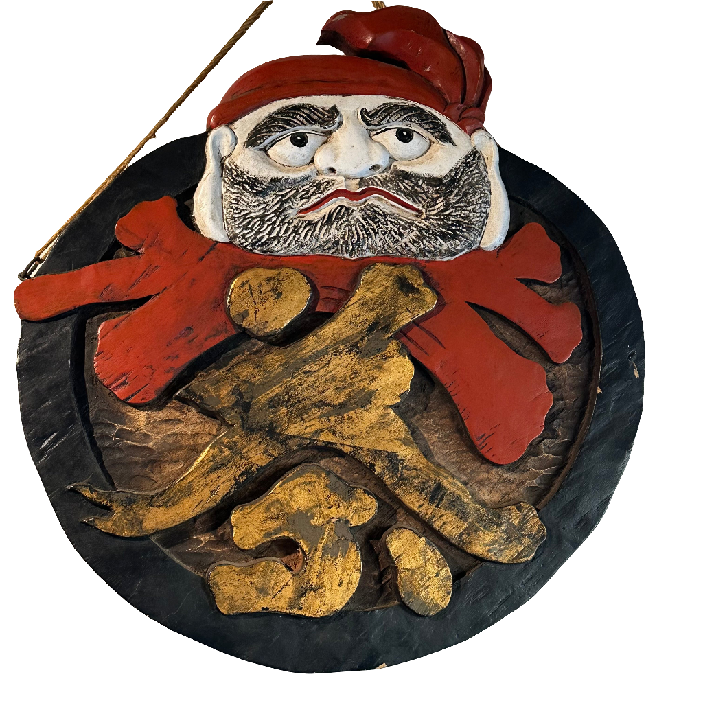 This traditional shop sign (kanban) features Daruma, the legendary Zen monk and symbol of perseverance. Merchants often used his image to attract customers by evoking qualities like discipline, resilience, and good fortune. Daruma’s intense expression and enduring presence made him a popular figure for kanban, reminding viewers of the Japanese proverb “Nanakorobi yaoki” — “Seven times down, eight times up.” His image linked commerce, spirituality, and folk tradition in everyday life.