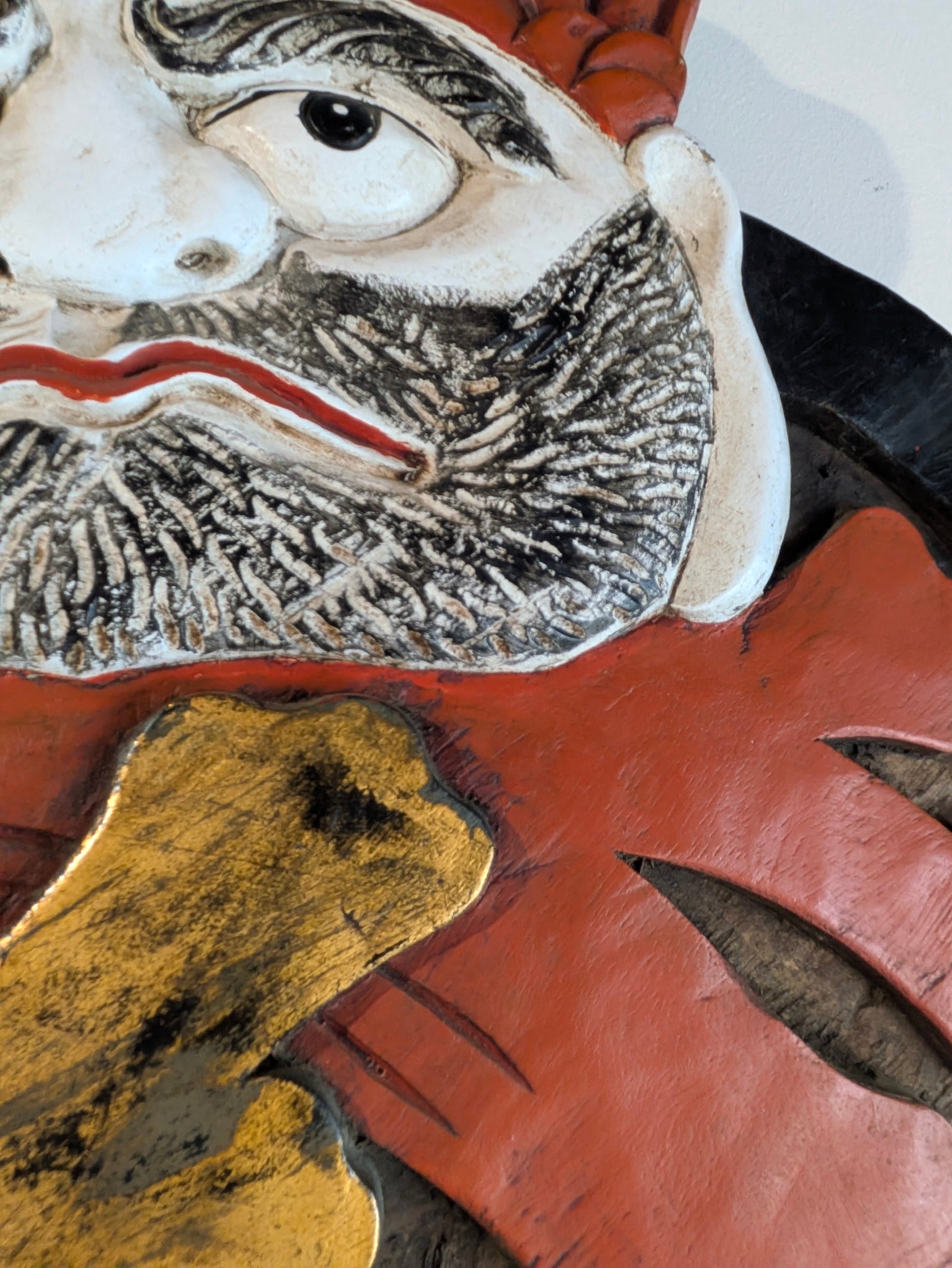 According to legend, Daruma meditated for nine years facing a wall without speaking or moving. His unwavering commitment to self-discipline and enlightenment is reflected in his intense, wide-eyed expression, often seen in Japanese paintings, sculpture, and folk art. Over time, artists portrayed him with bold brushwork and exaggerated features to express his fierce energy and focus.