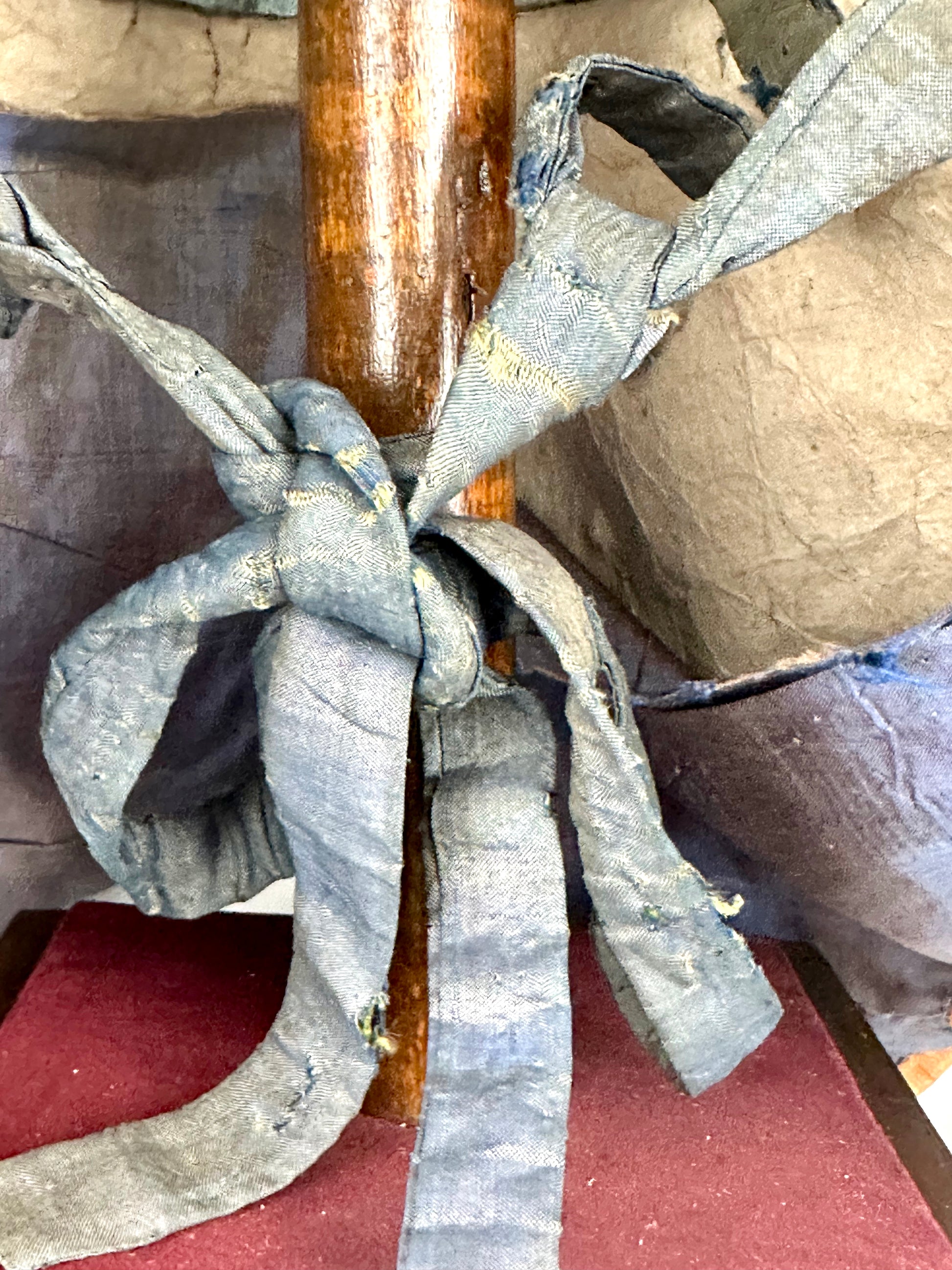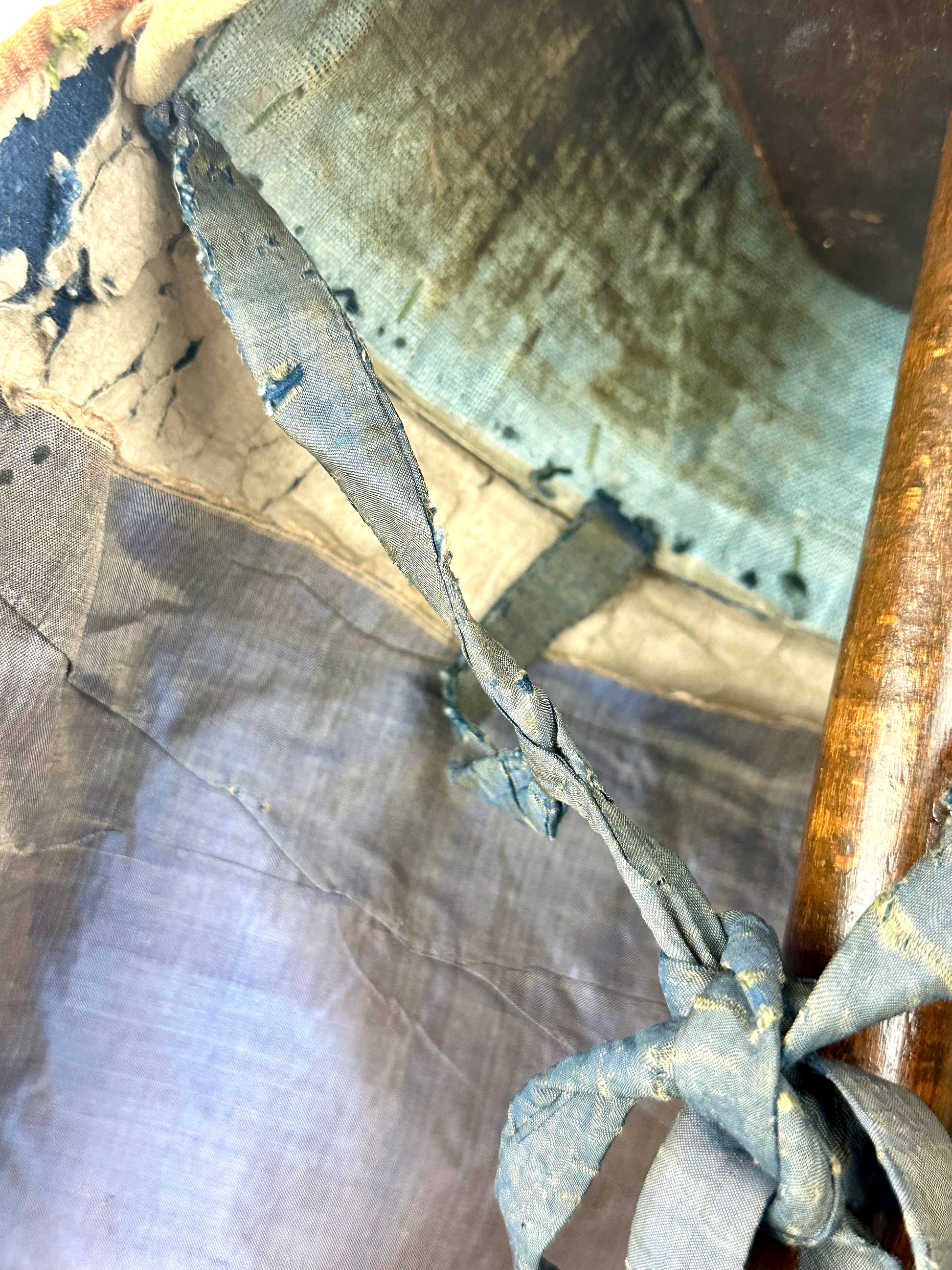 Condition: Good antique condition with age-related wear, fabric fraying, and minor surface losses consistent with use and age.