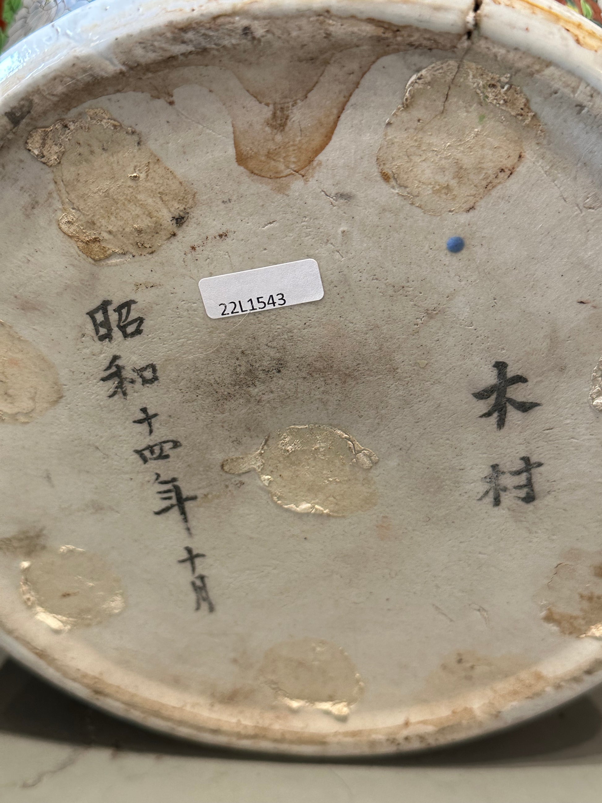 Japanese Hibachi Signed & Dated 1939 Ceramic Imari Hibachi Brazier Pot Planter 11"