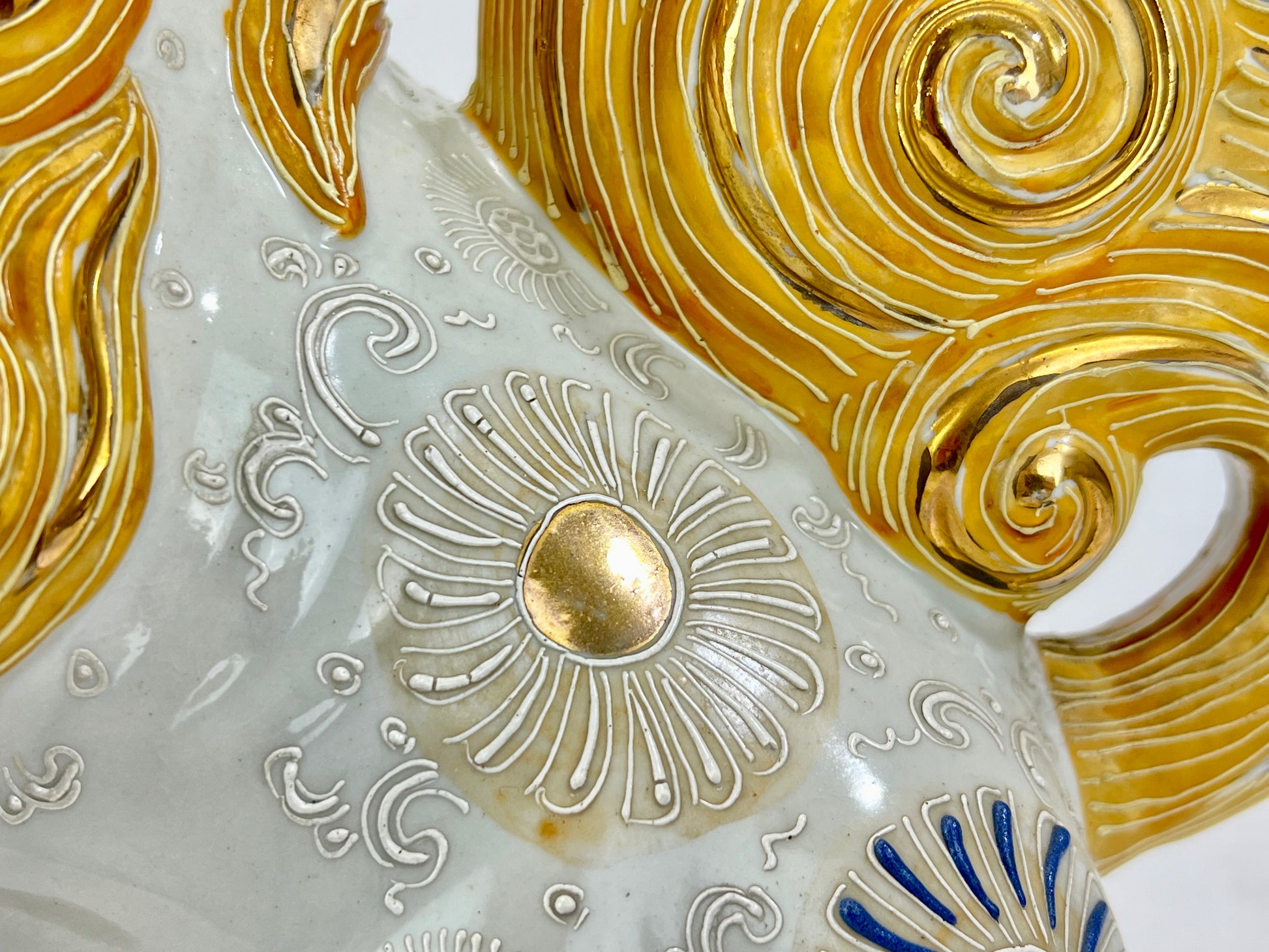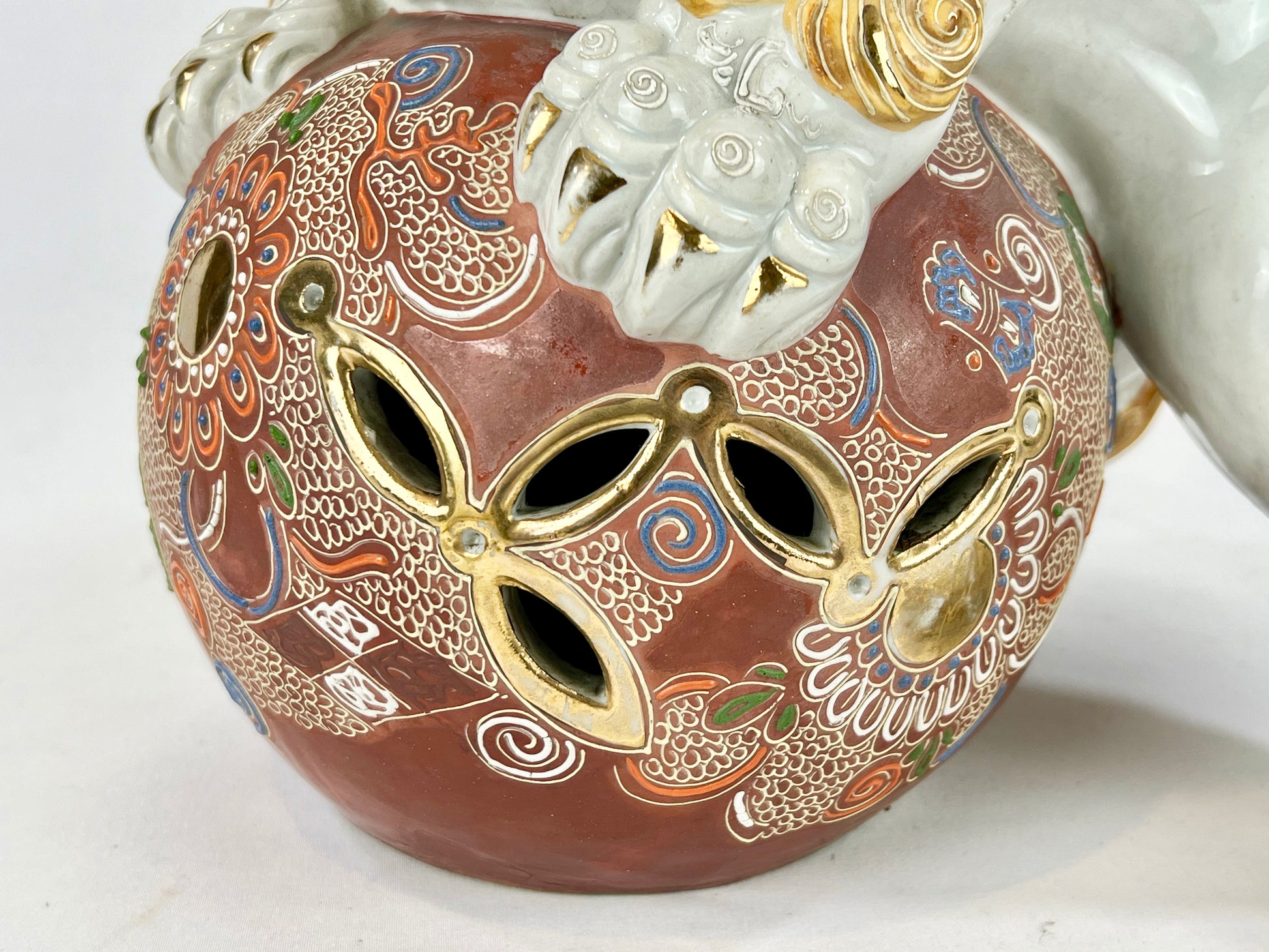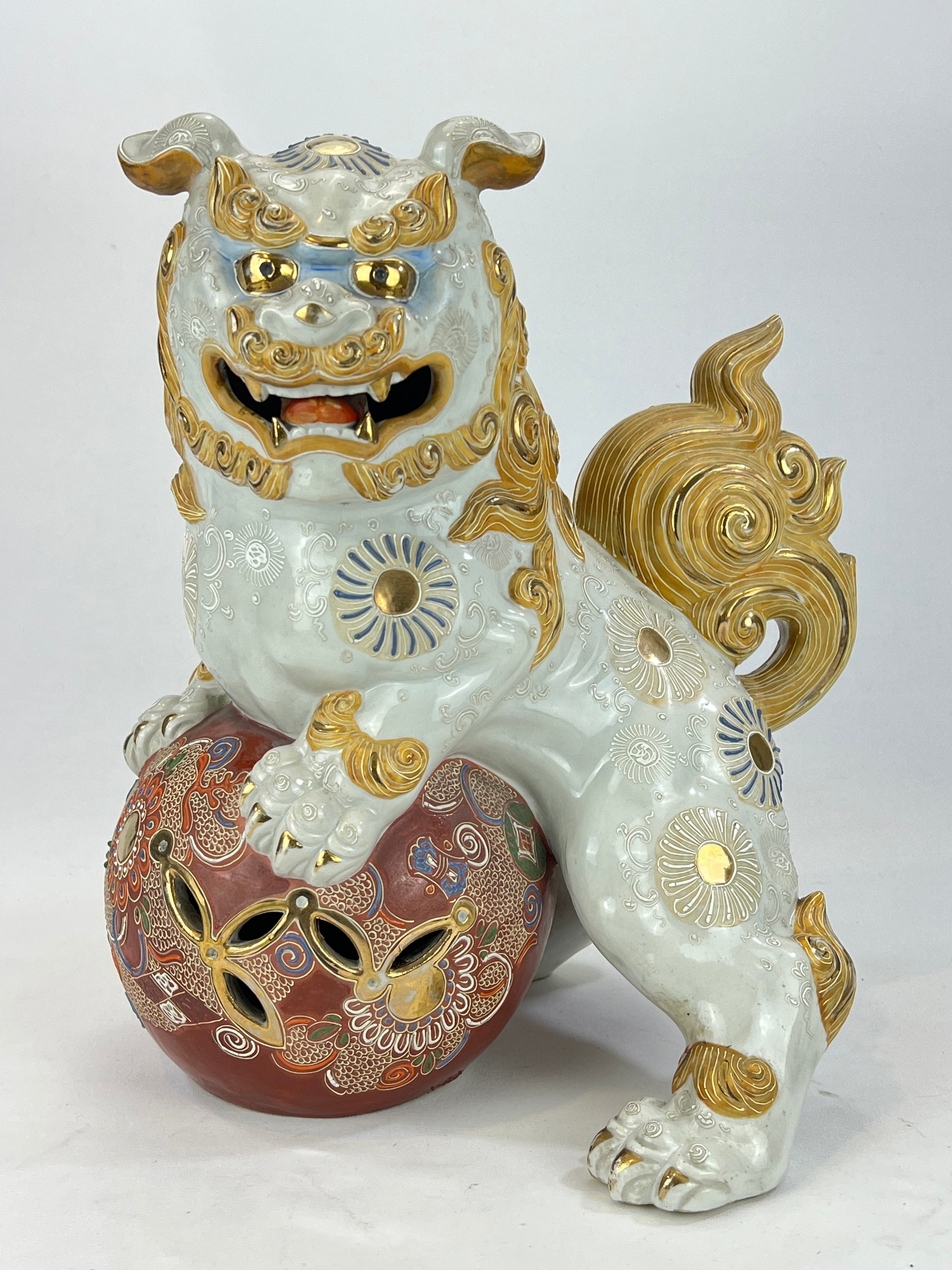 This is an antique Japanese ceramic Kutani ware piece. It is the ShiShi (Foo Dog) from the Taisho Era (c.1912-1926).