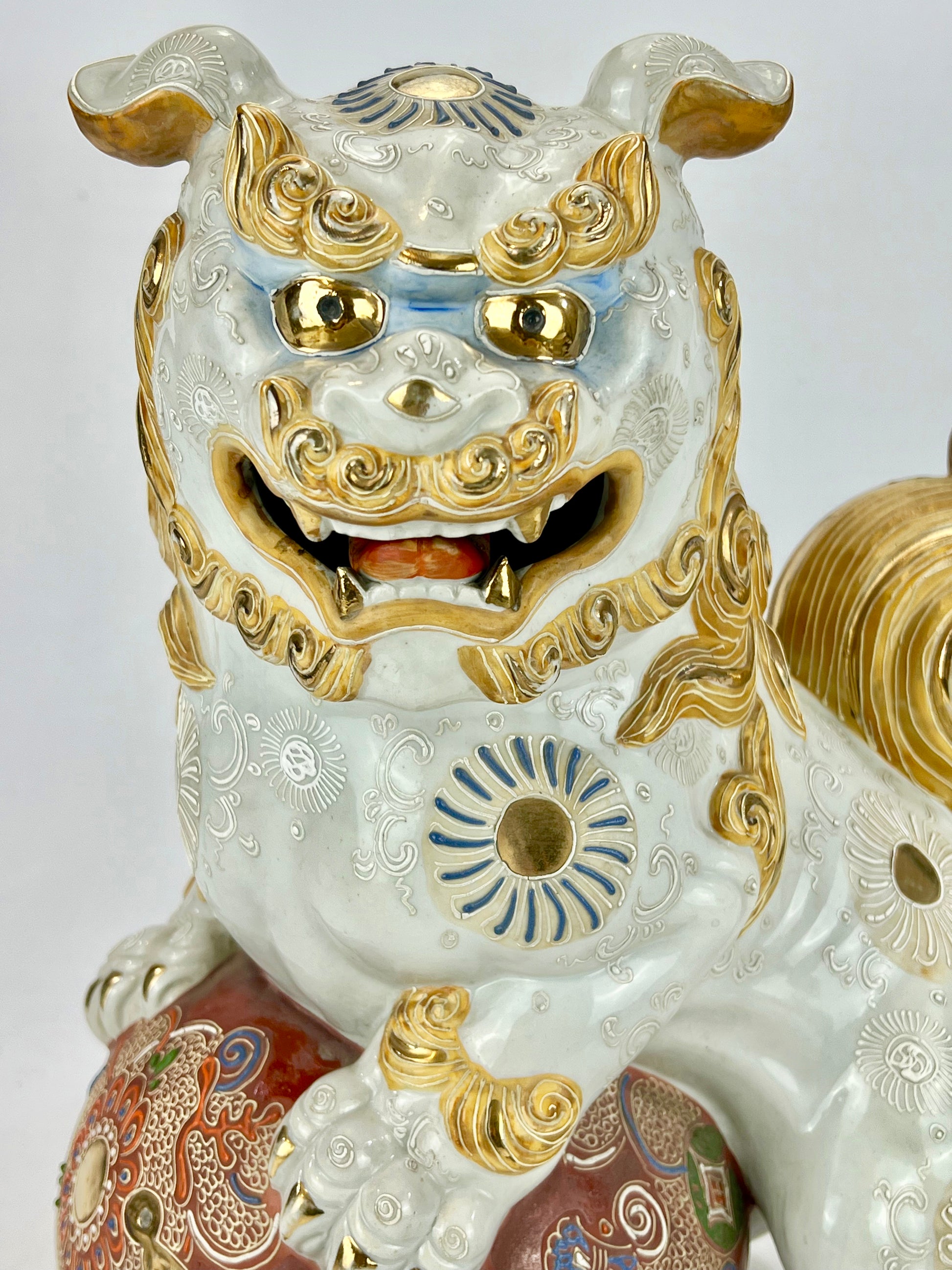 Vintage Japanese Kutani Ceramic ShiShi Temple Lion Foo Dog Statue 13”