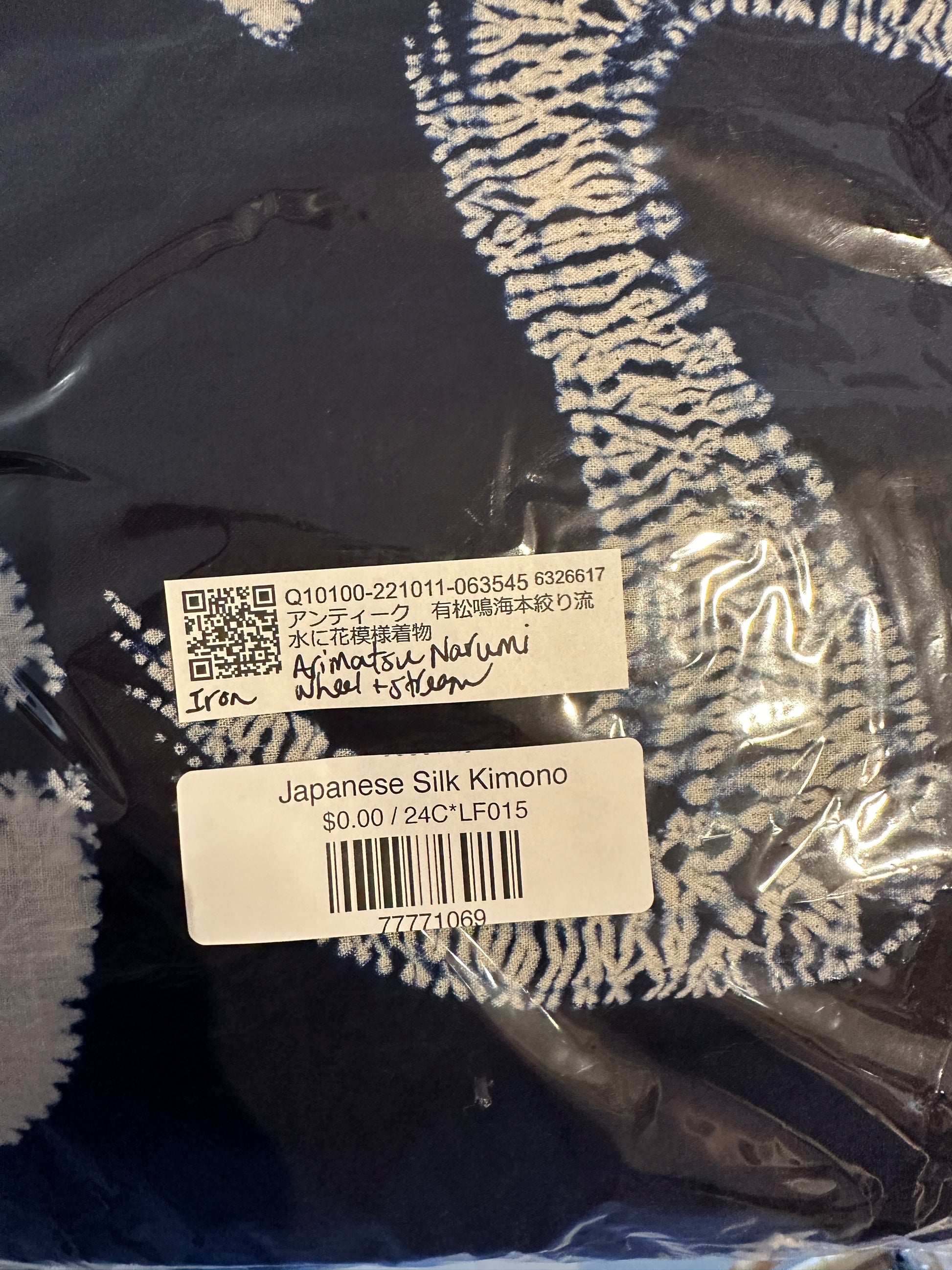 Japanese Cotton Shibori Yukata Kimono Dark Blue Wheel & Stream Arimatsu