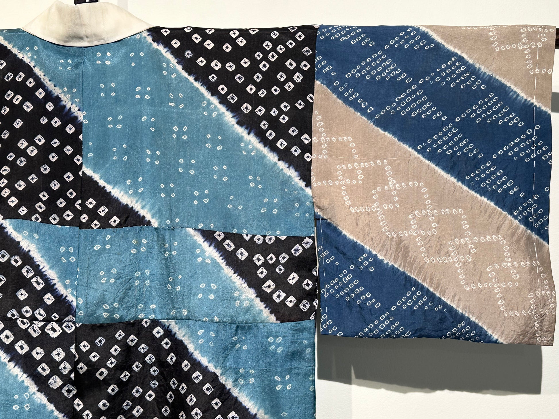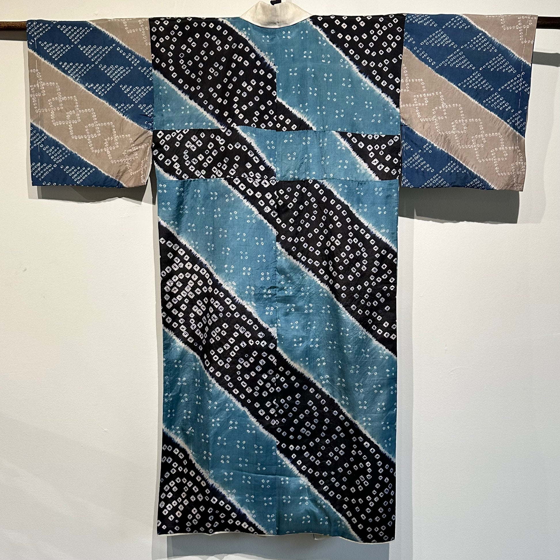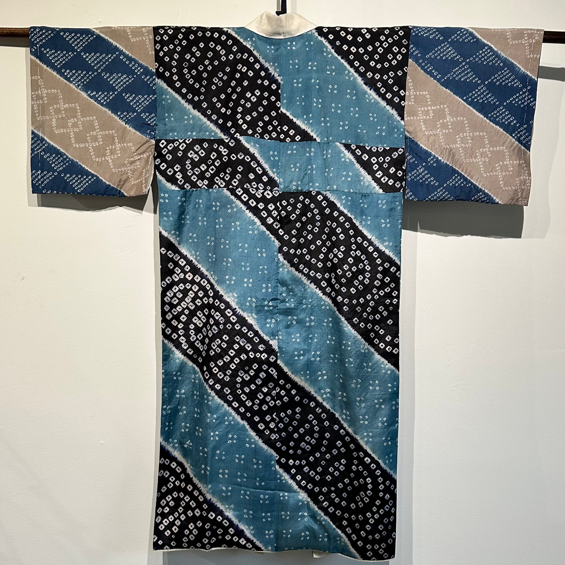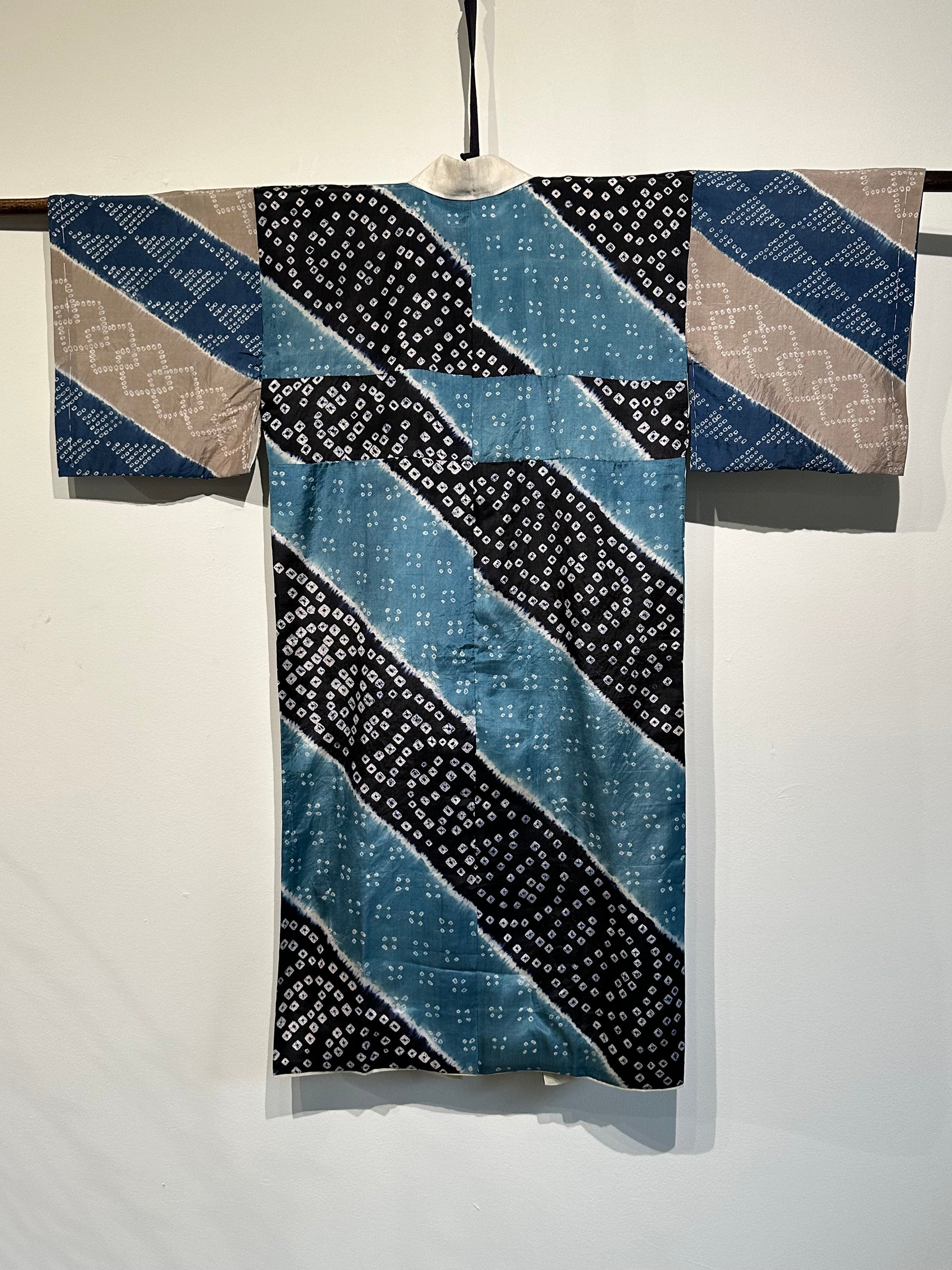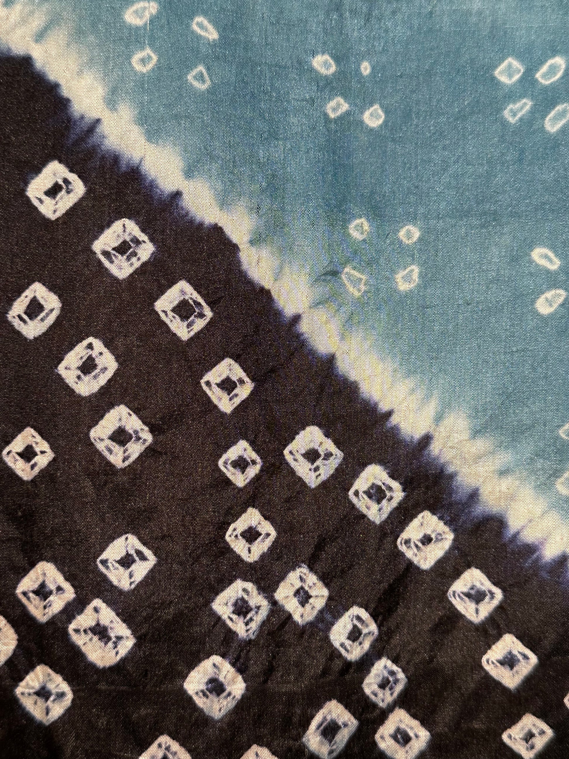 Japanese Silk Woman's Juban Kimono Shibori Tie Dye Turquoise & Navy