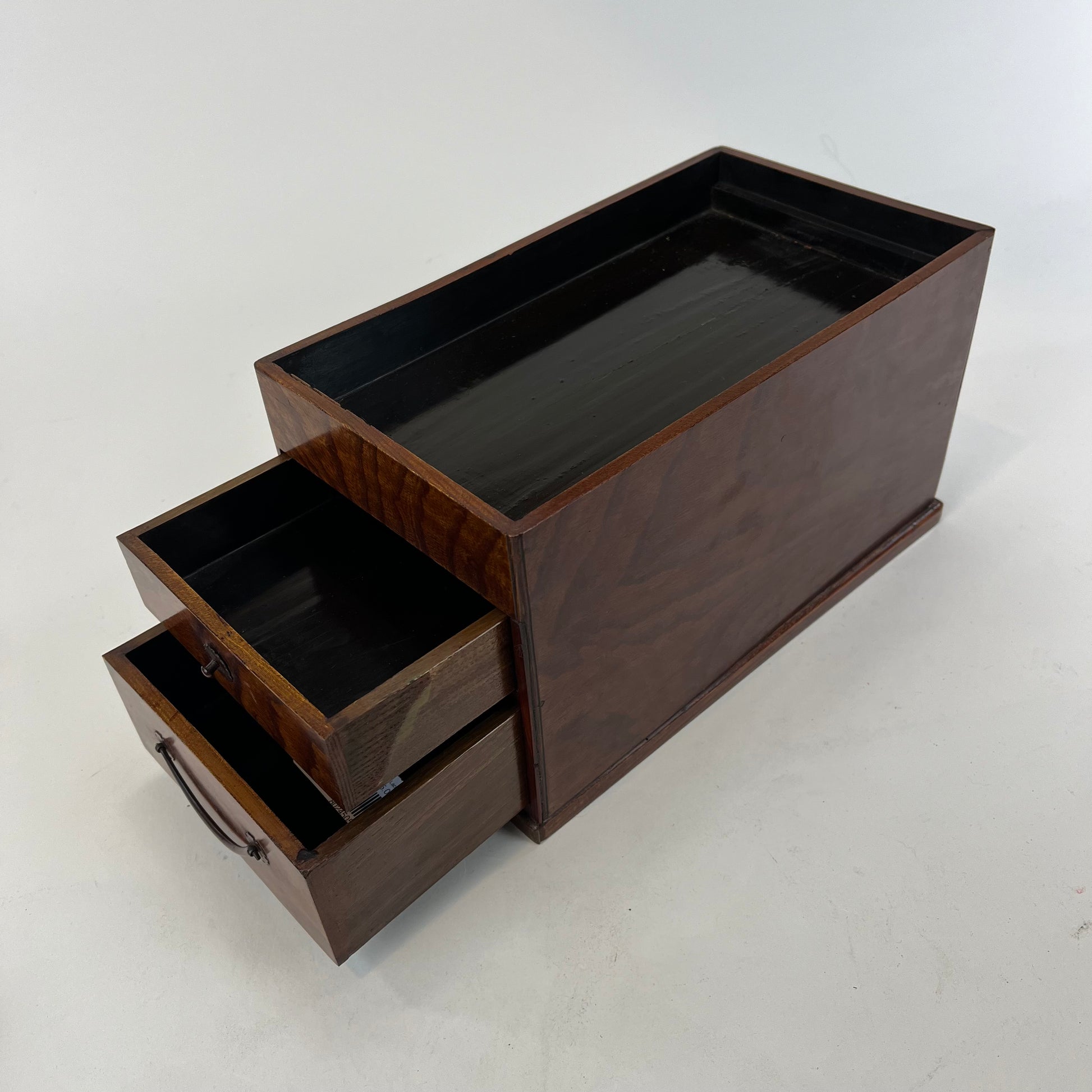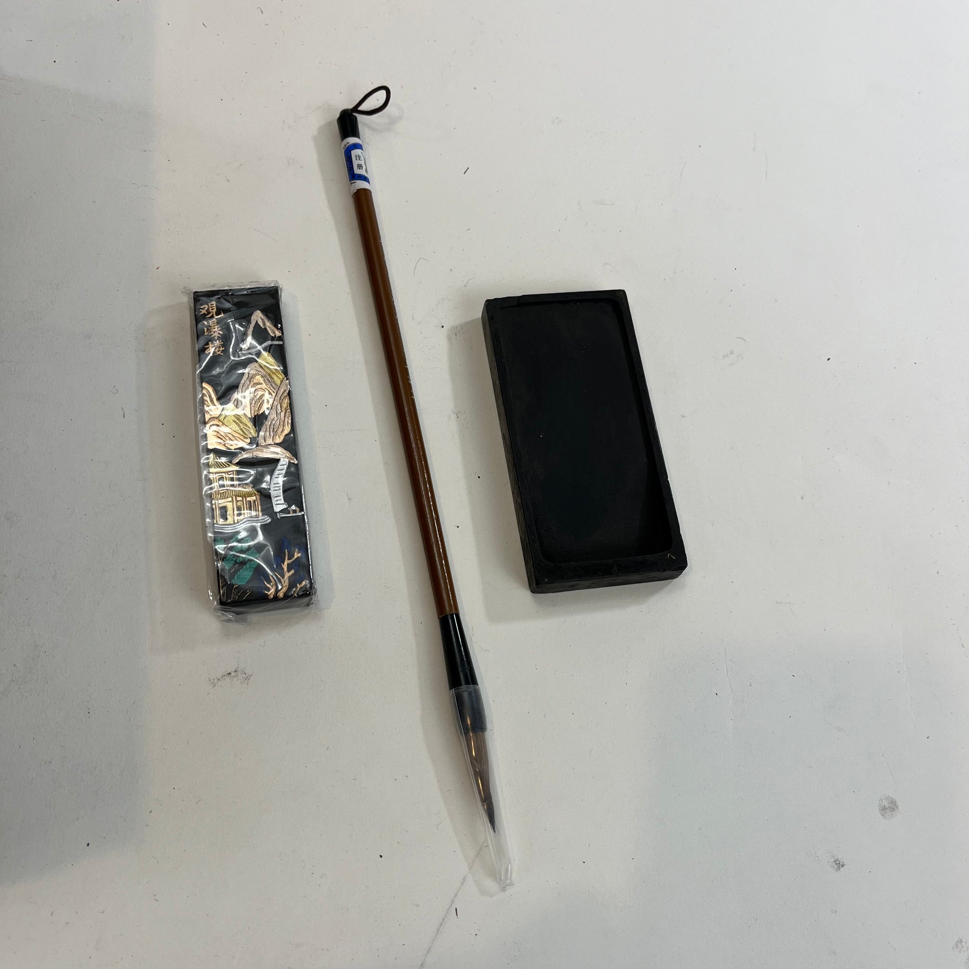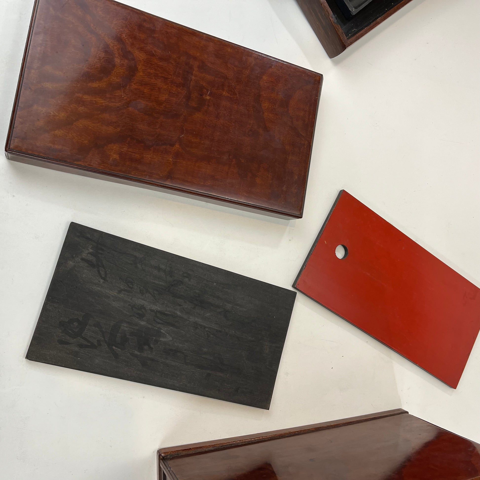 Japanese Suzuribako 2 Drawer Lacquered Box w/ Ink-stones, Brush & Ink Stick Set