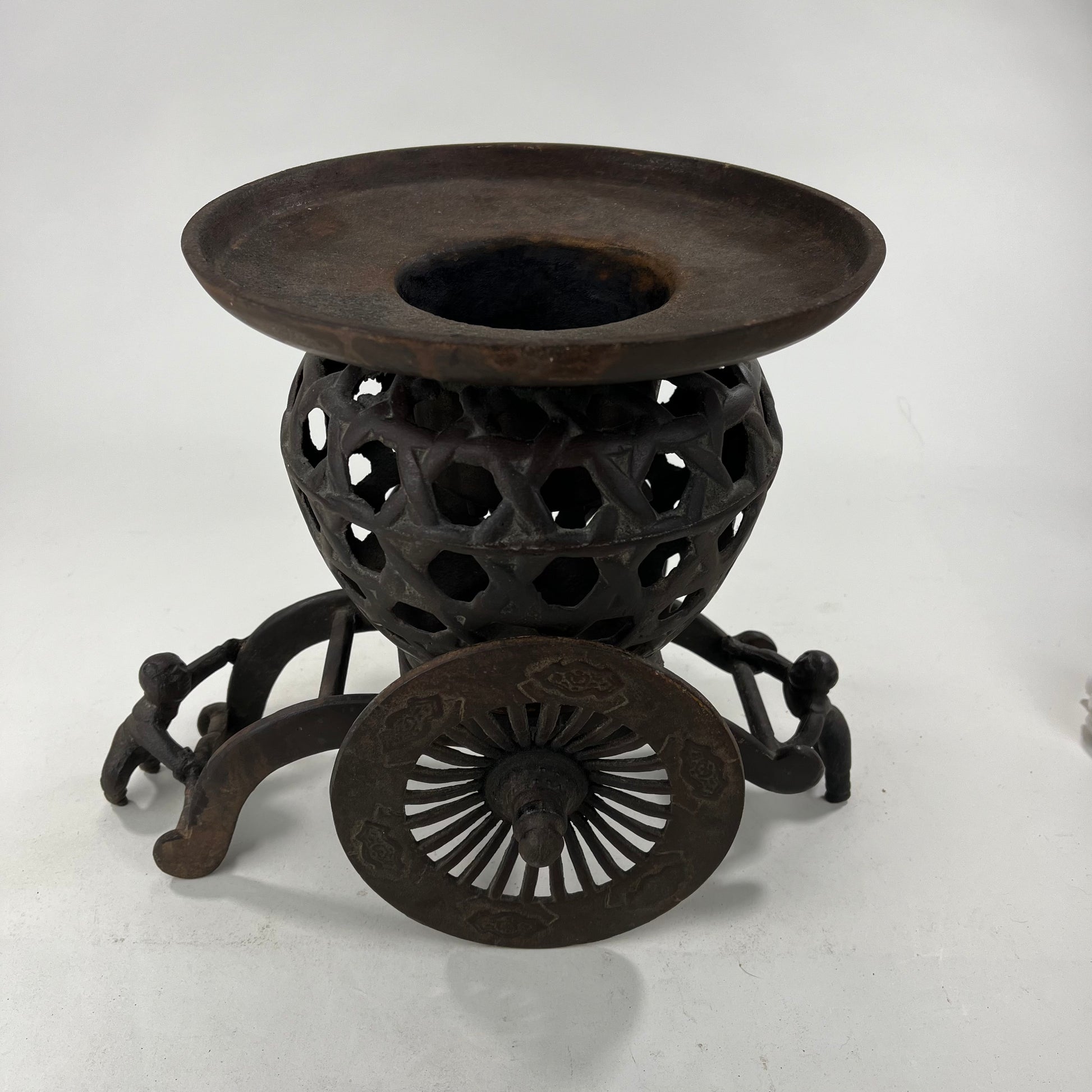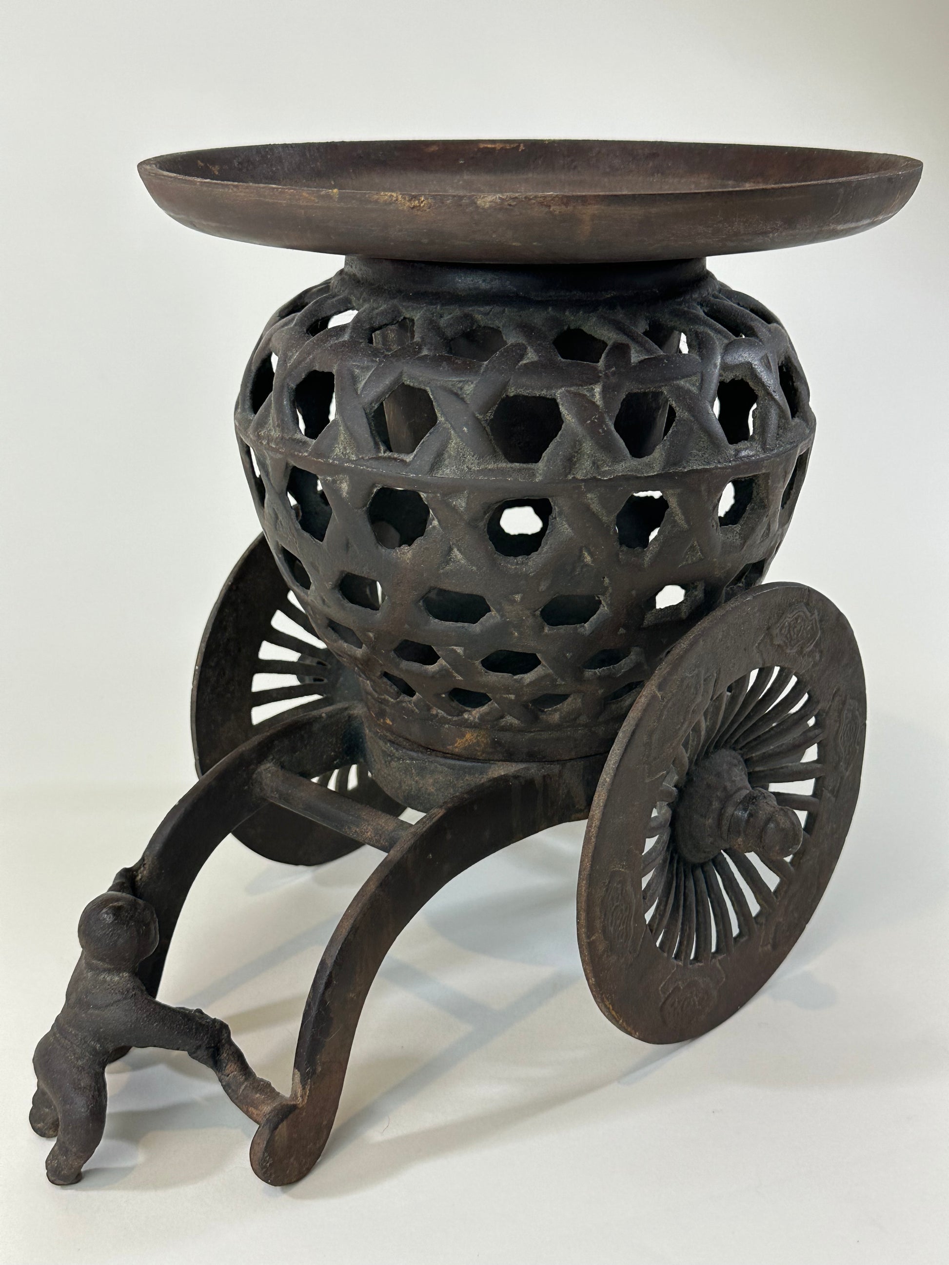 Japanese Usubata Cart Style Bronze Ikebana Flower Vase 12"