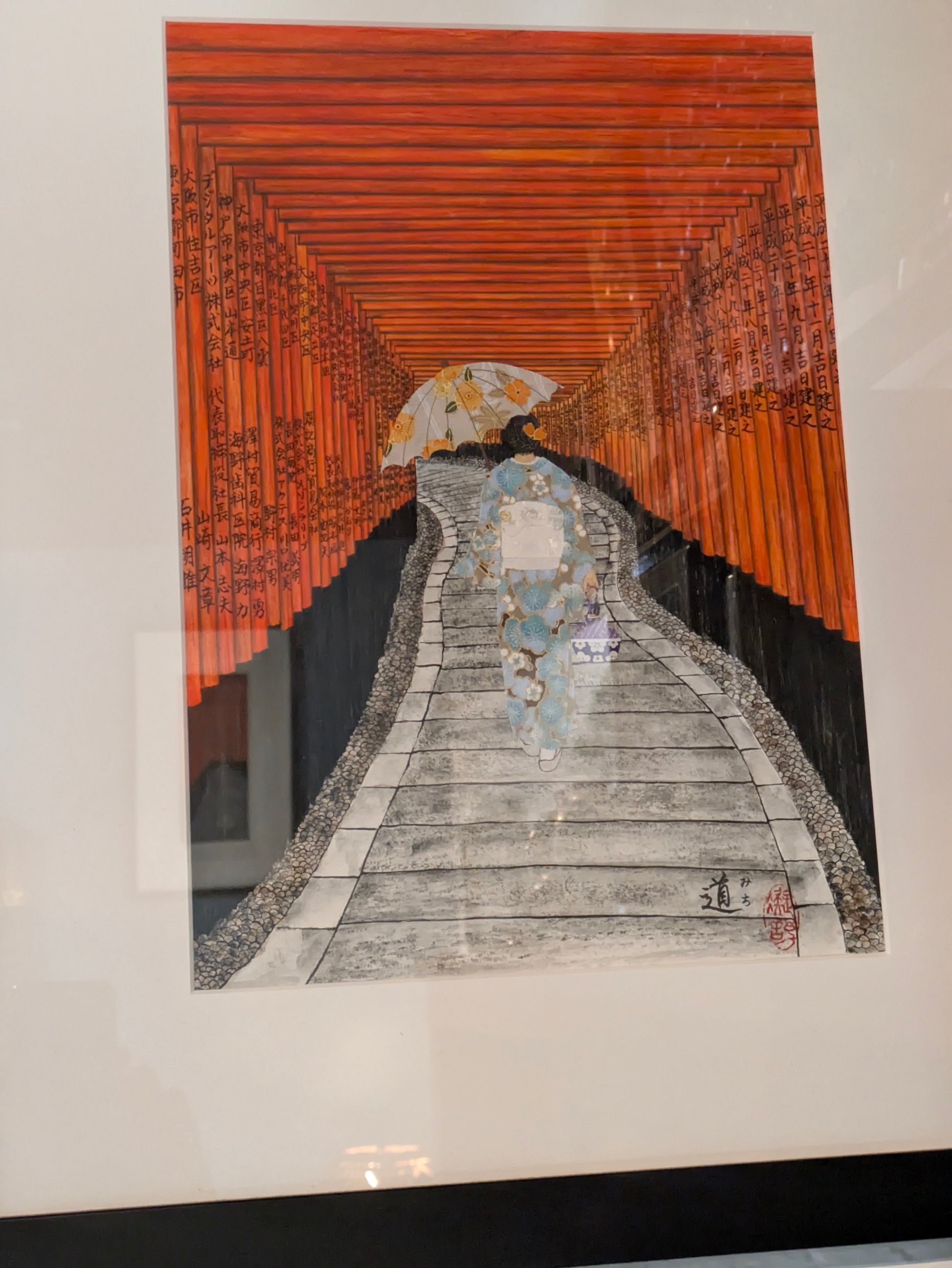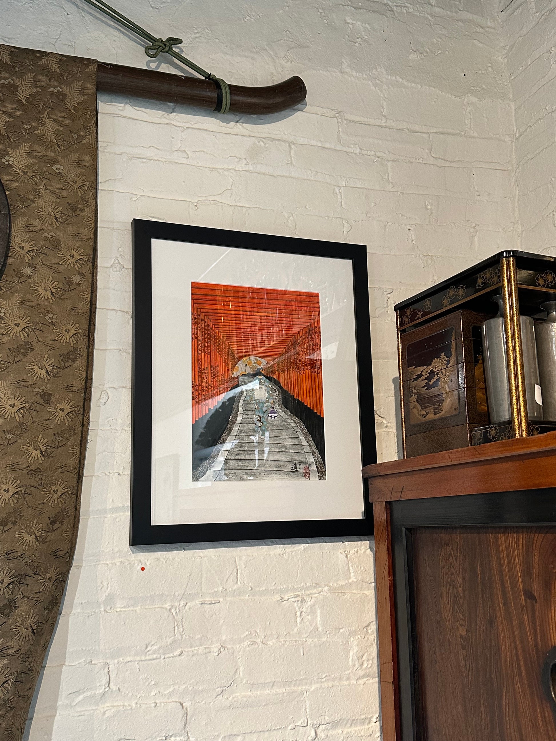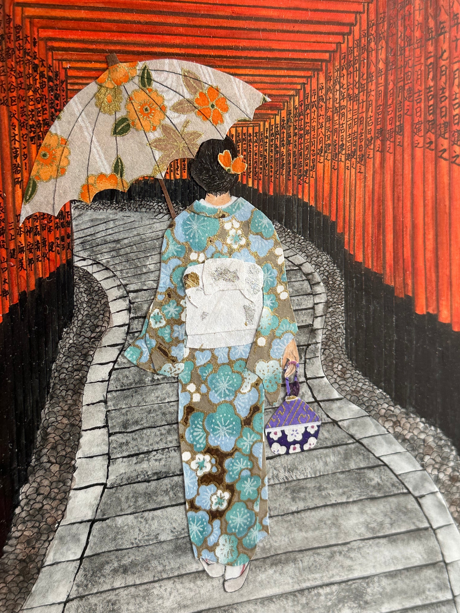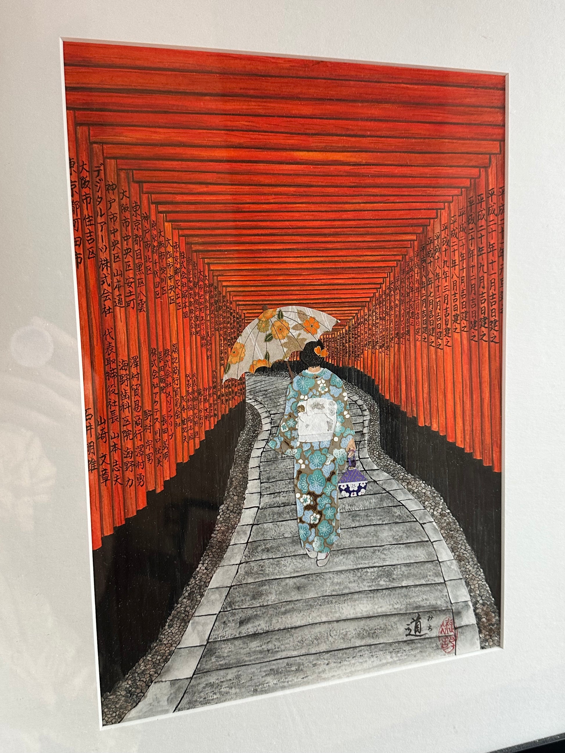 Japanese Woodblock Fushimi Inari Shrine "Michi" Tori Kimono 21.5" LS#228