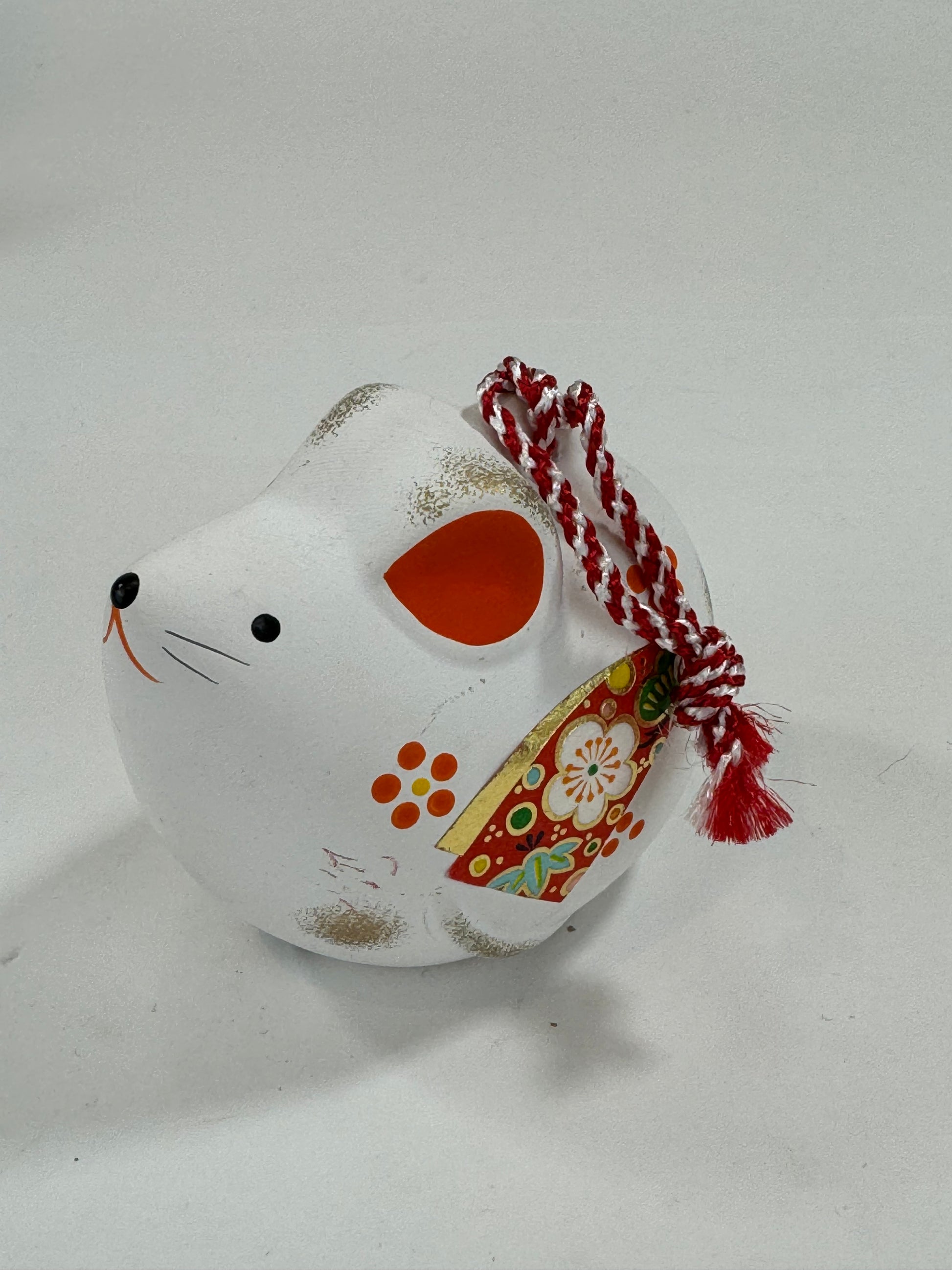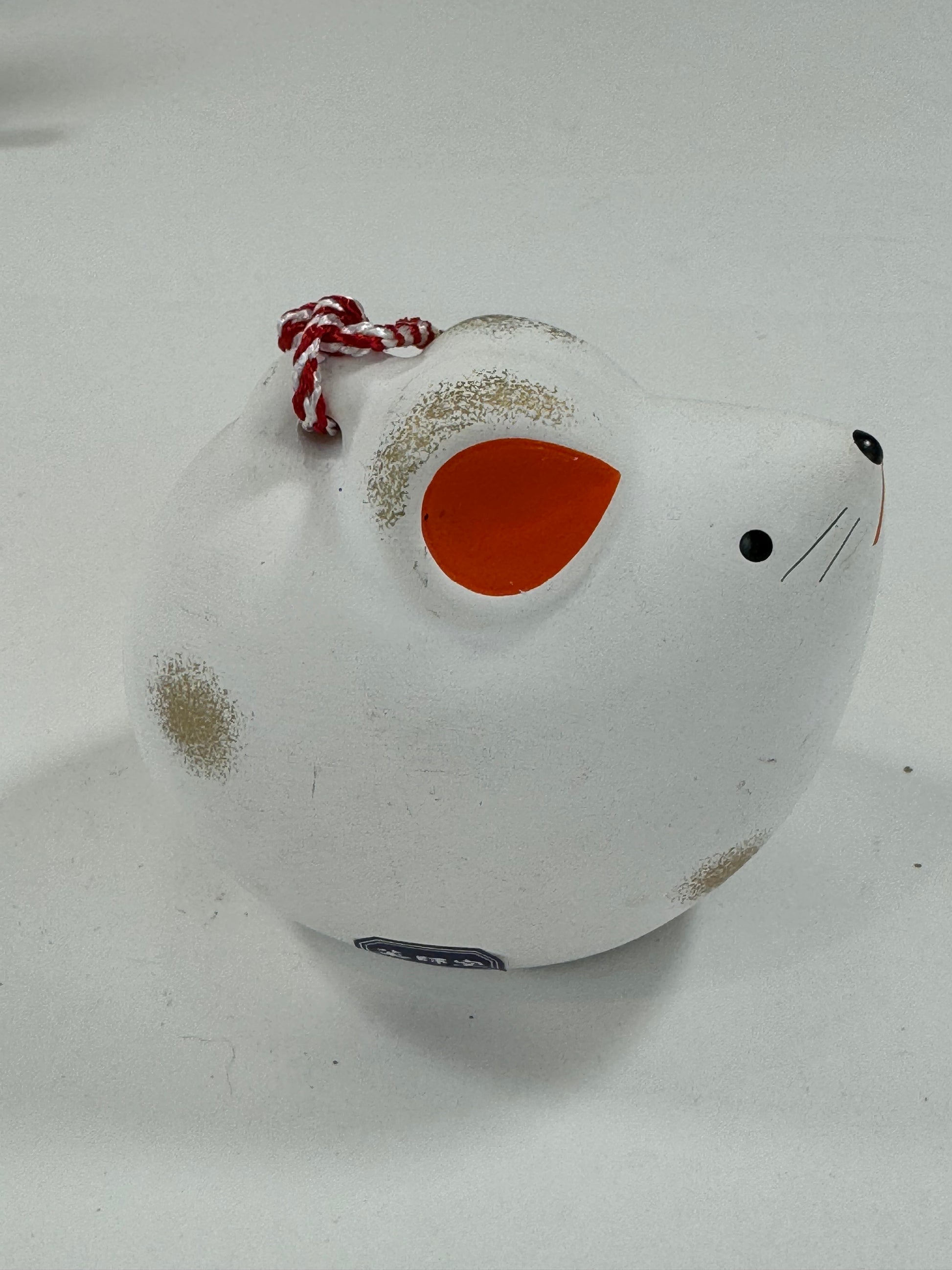 Clay bells (dorei) have been a part of Japanese culture for a long time – bells have been found that date back to the prehistoric Jomon period in Japan (10,000 B.C. – 3,000 B.C.). They were thought to be effective against evil spirits. In modern times, the small bells have become popular souvenir items and can be found for sale at temples, shrines and gift and souvenir shops. They are often given or purchased at New Years, especially bells depicting the current year’s zodiac animal.This is a small ceramic animal based on the 12 Chinese zodiac beasts. Each year people will put and change out the zodiac animals on display in their homes to bring good fortune. These little bells are a traditional way to call good fortune to you at the beginning of the year.