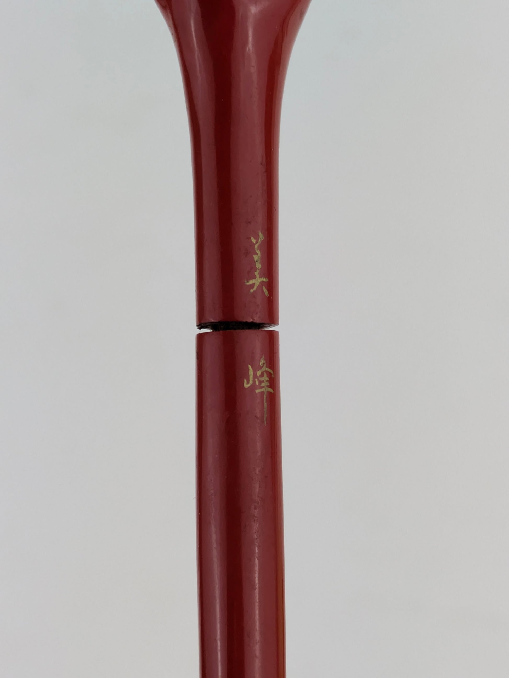 Materials: Lacquered wood, celluloid, bamboo tang, gold signature
