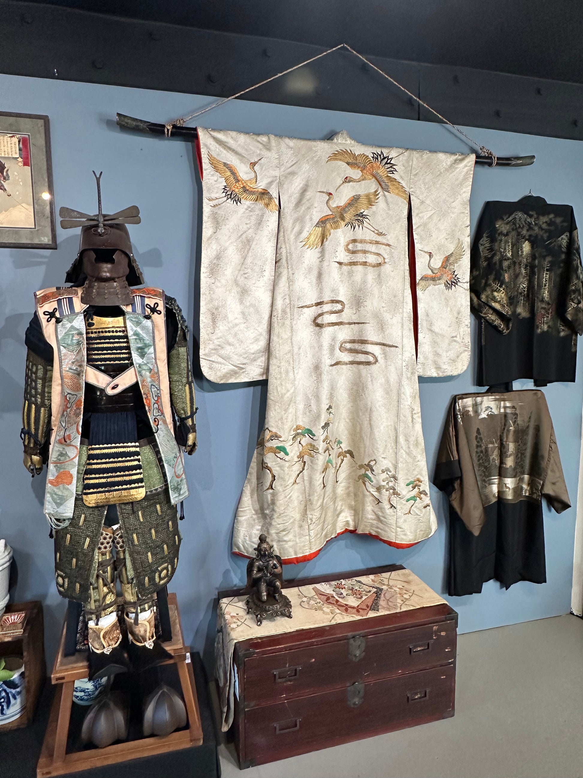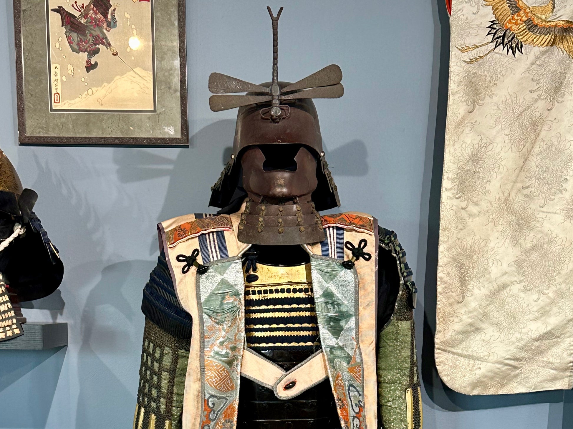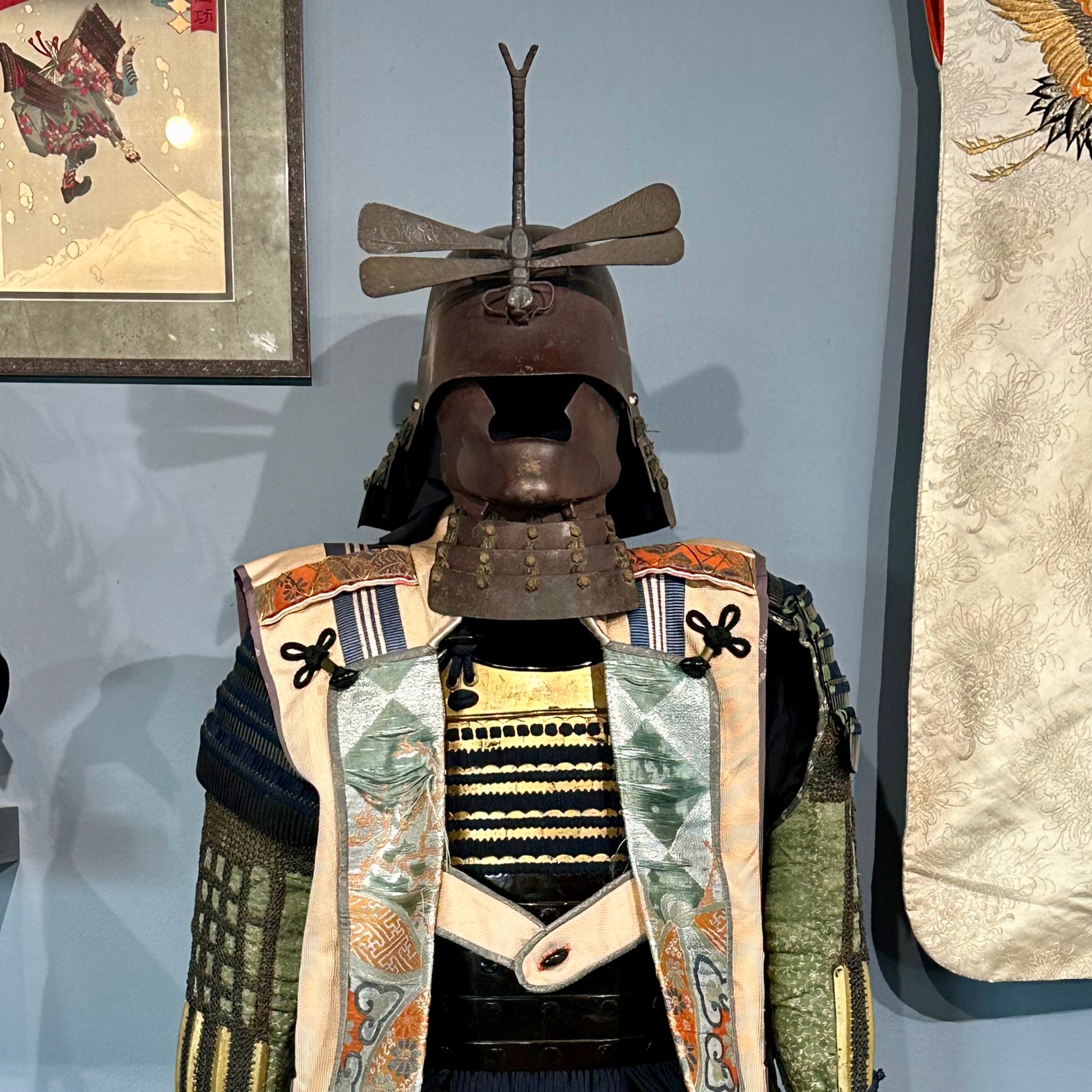 Condition is consistent with age, showing surface wear, patina, and textile aging expected of antique armor. No evidence of aggressive modern restoration is observed. Some repairs to the dragonfly maedate can be seen in the detailed photos. This is a strong example suitable for private collection, gallery display, or institutional presentation.