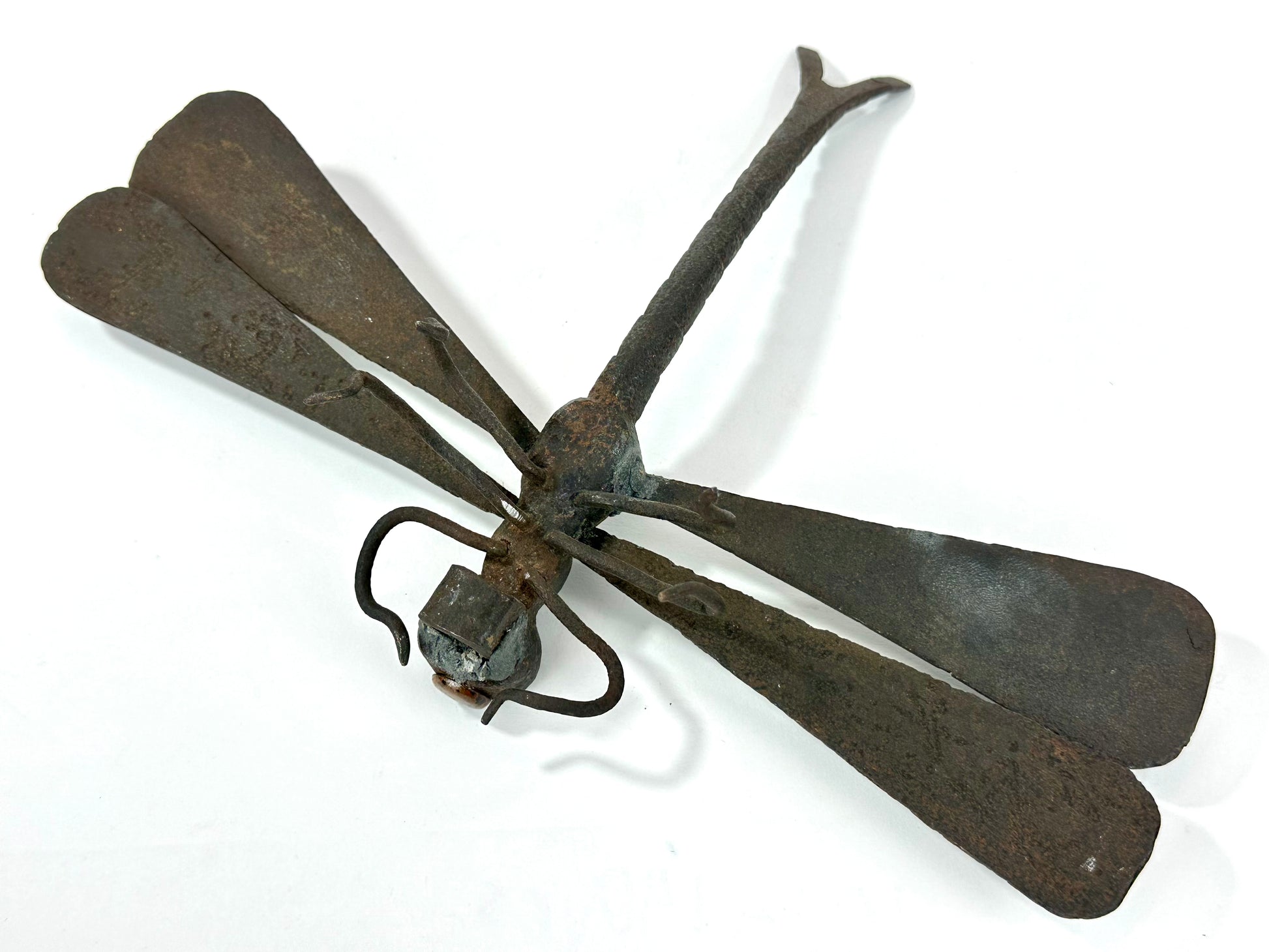 The armor features an iron suji-style kabuto with a naturally aged patina and a dragonfly (tonbo) maedate, a traditional samurai symbol associated with vigilance and victory. An iron menpō with expressive modeling and honest surface wear accompanies a lamellar-style dō finished with silk lacing in an indigo and gold color palette.