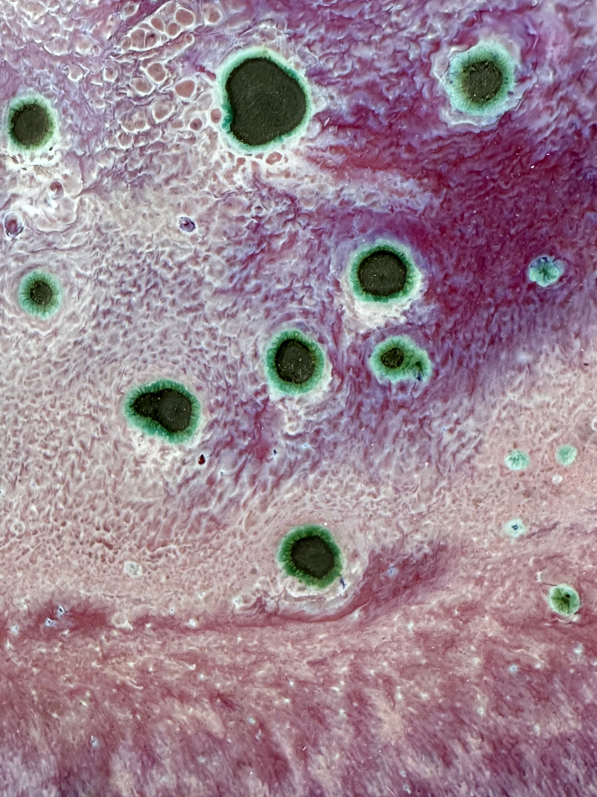 In 1963, the first generation Gaei Matsuyama became ill and instructed his wife Tsutako in the art of Yohen Kujaku Tenmoku (copper transmutation glaze) before passing away.