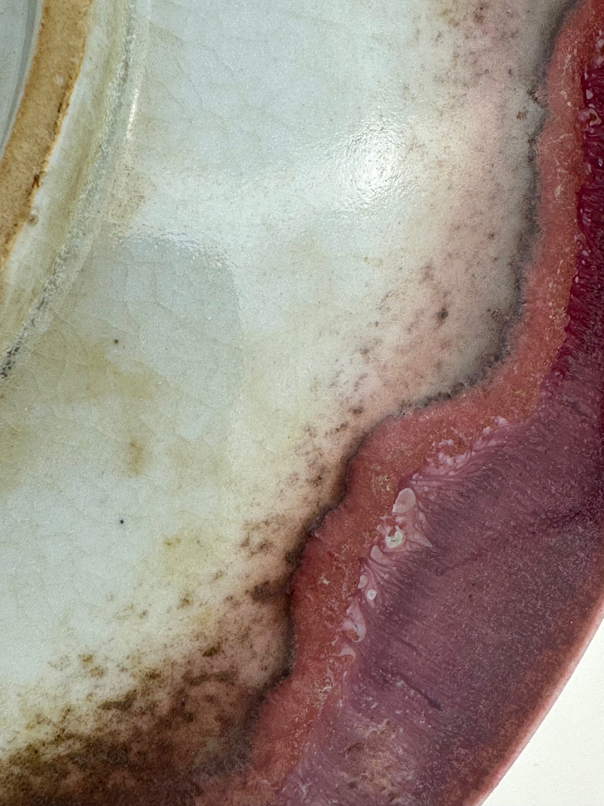 They moved the kiln to Kamikajo Town in 1950, where he completed his yohen tenmoku (天目) glaze the following year and produced his kujaku Peacock glaze pottery all inspired by the Song Dynasty Jian glazing techniques from the 1100's.