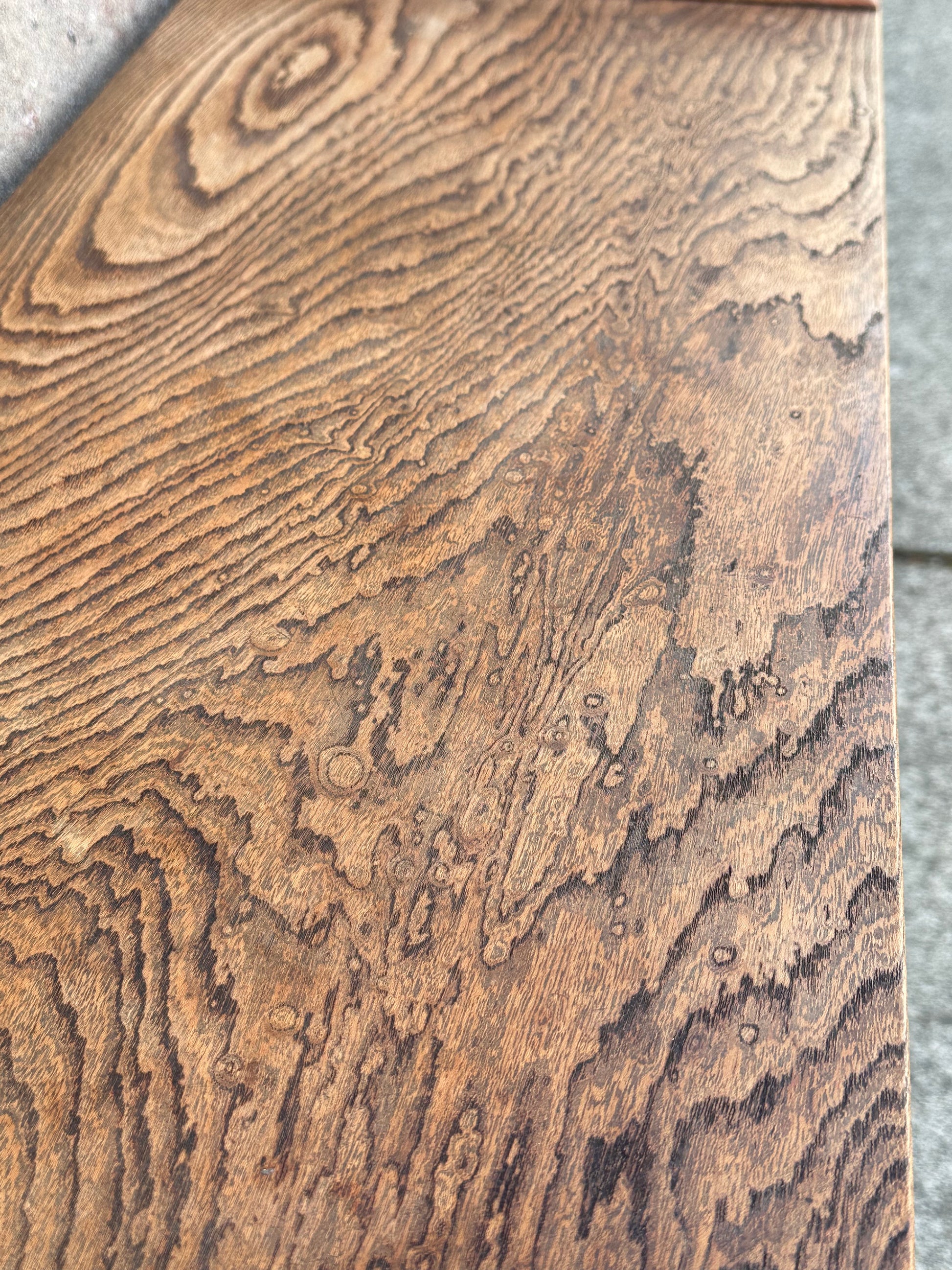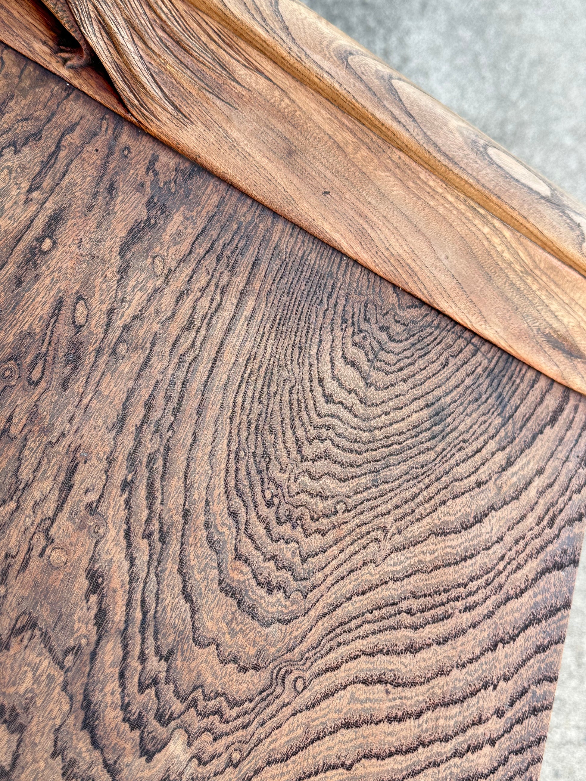This exceptional Japanese Chadansu (tea utensil cabinet) is crafted entirely from solid keyaki (Japanese zelkova), prized historically for its dramatic swirling grain and its strength, durability, and resonance. The chest is richly accented with hand-carved persimmon wood pulls and trim, lending warm tonal contrast and demonstrating the high level of traditional craftsmanship.