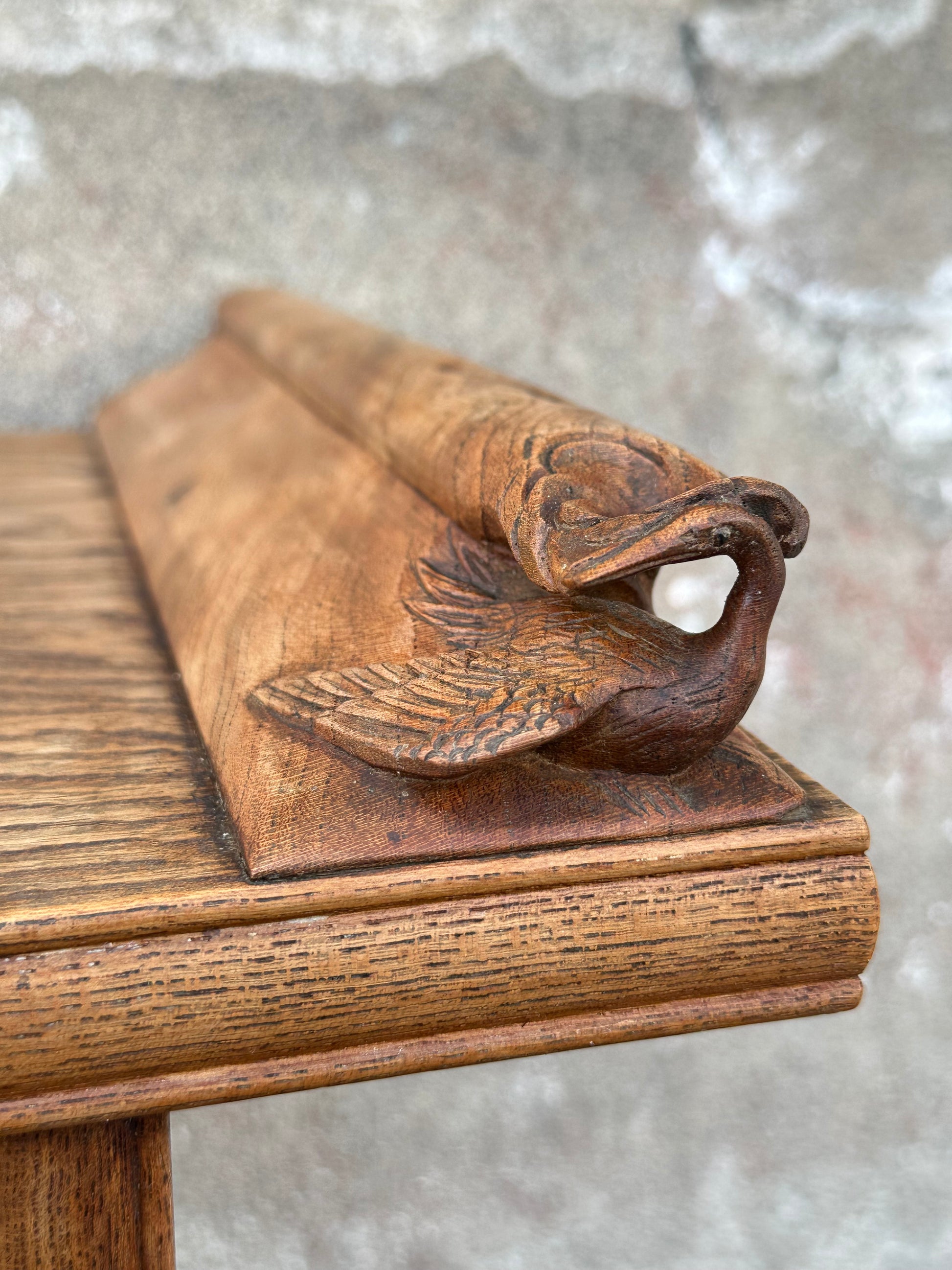 The most striking feature of this Chadansu is the pair of hand-carved symbolic guardians mounted at the upper finials:
