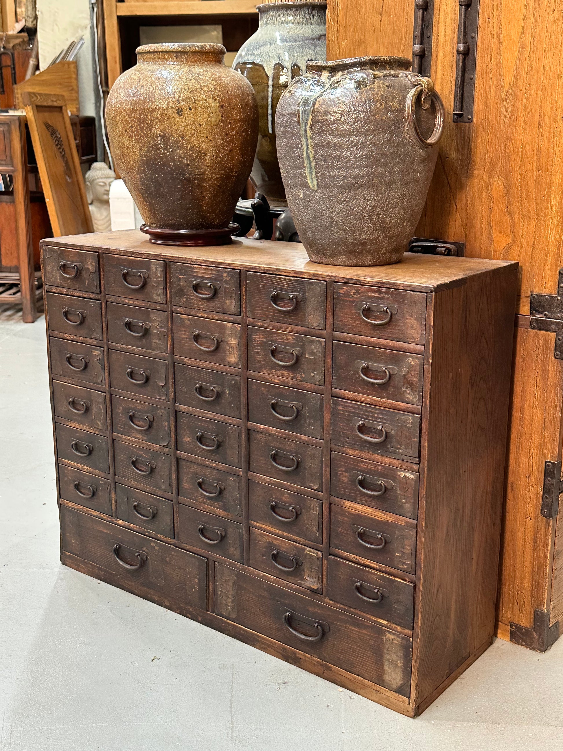 Rare 200 Year Old Antique Japanese 32 Drawer Kusuridansu Apothecary Tansu Late Edo Period c1820s