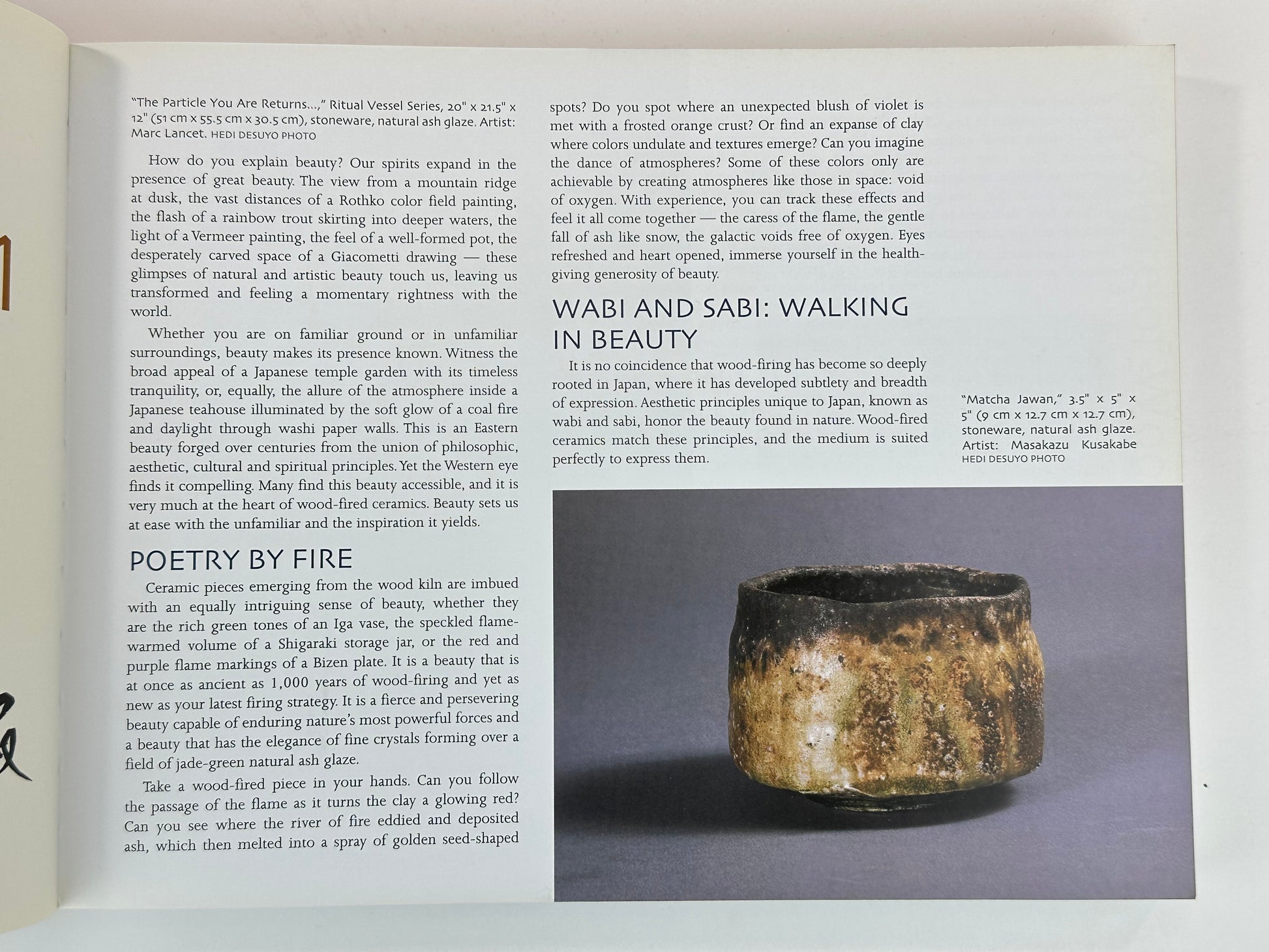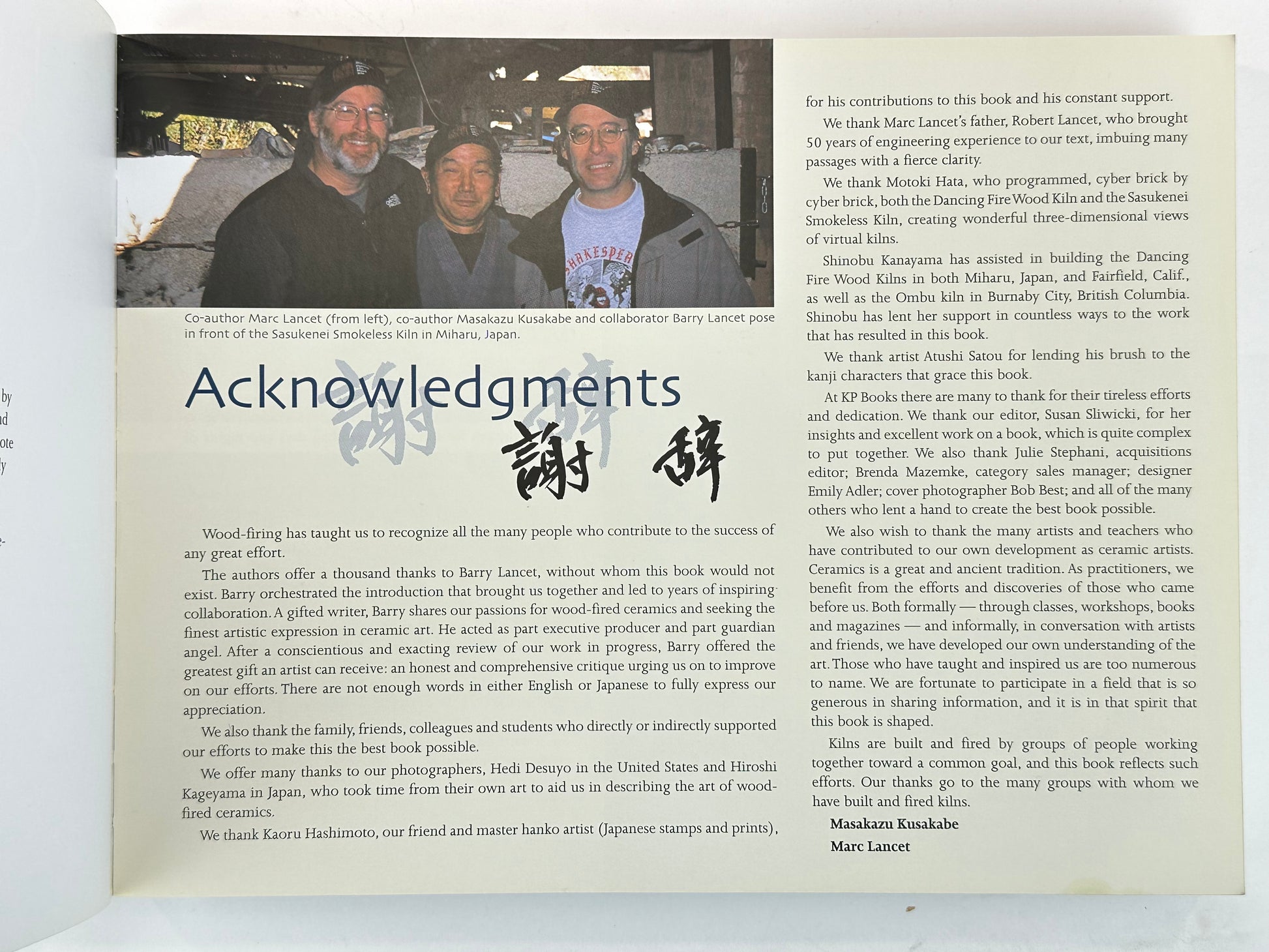 Written by Masakazu Kusakabe with Marc Lancet, the book bridges Japanese ceramic tradition with Western studio practice. It is widely used by potters, ceramic artists, and collectors as both a practical guide and visual reference. Richly illustrated throughout, it includes kiln diagrams, process charts, and comparative examples of surface effects produced by wood firing.
