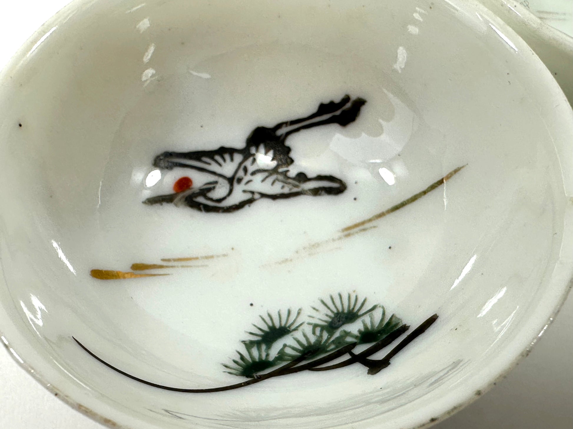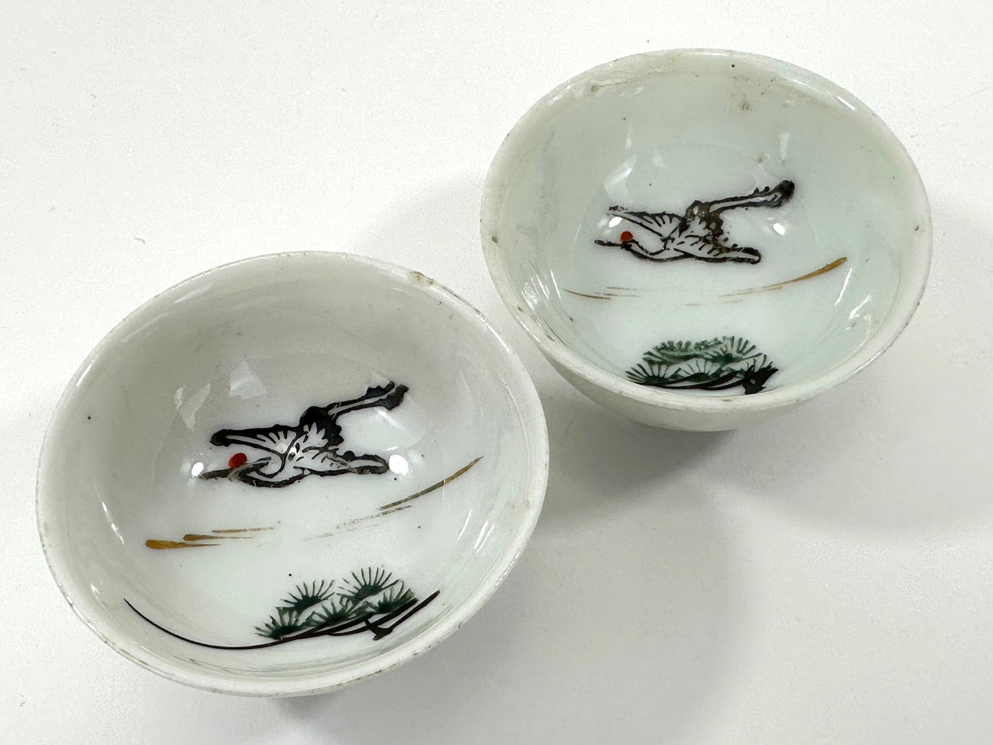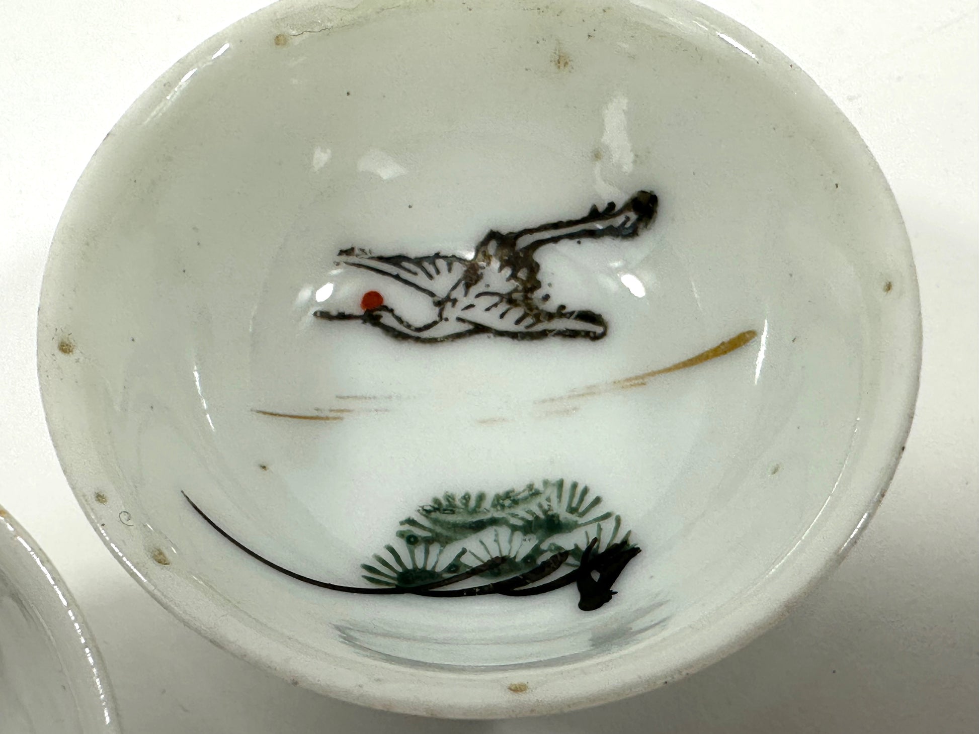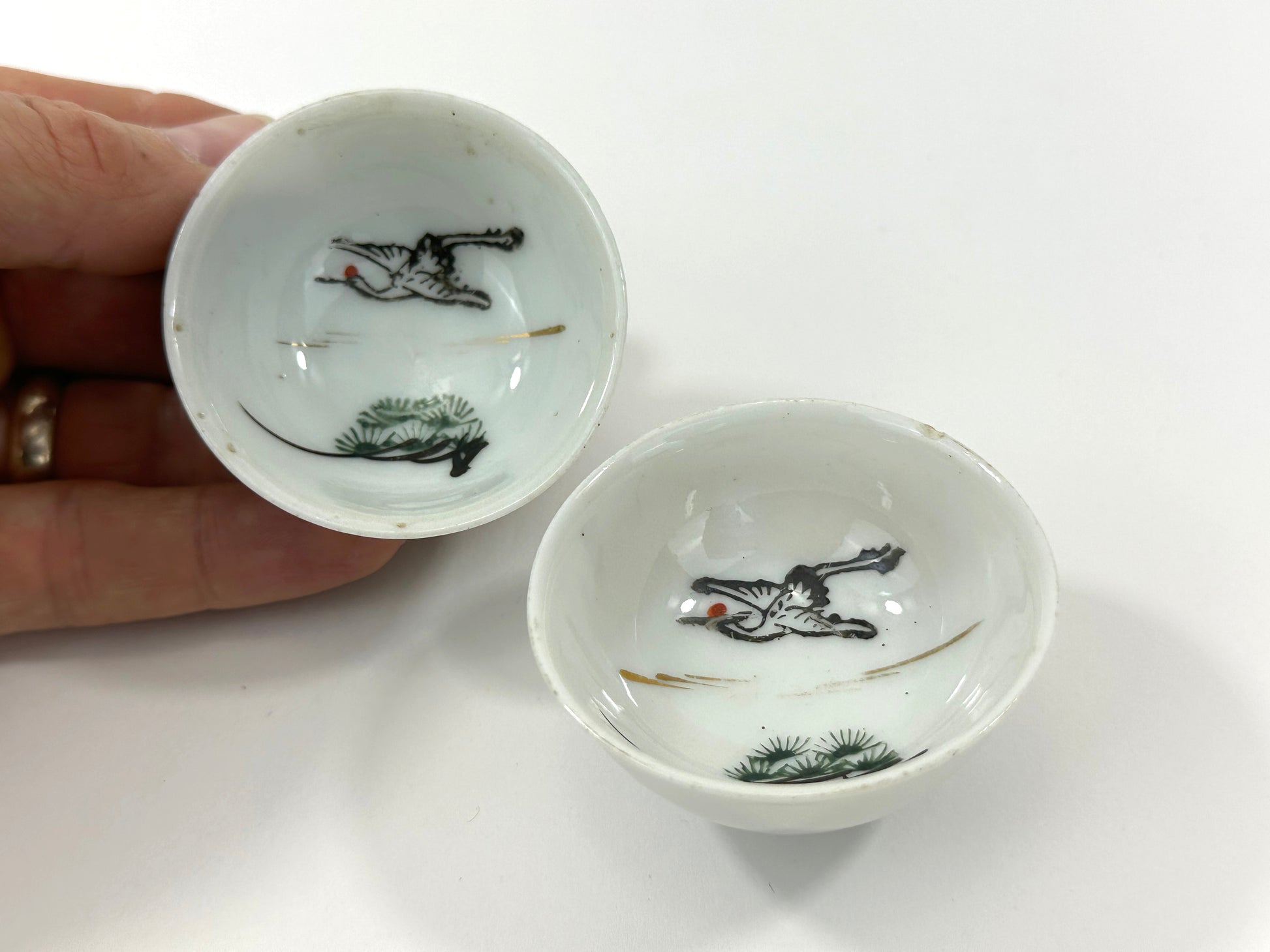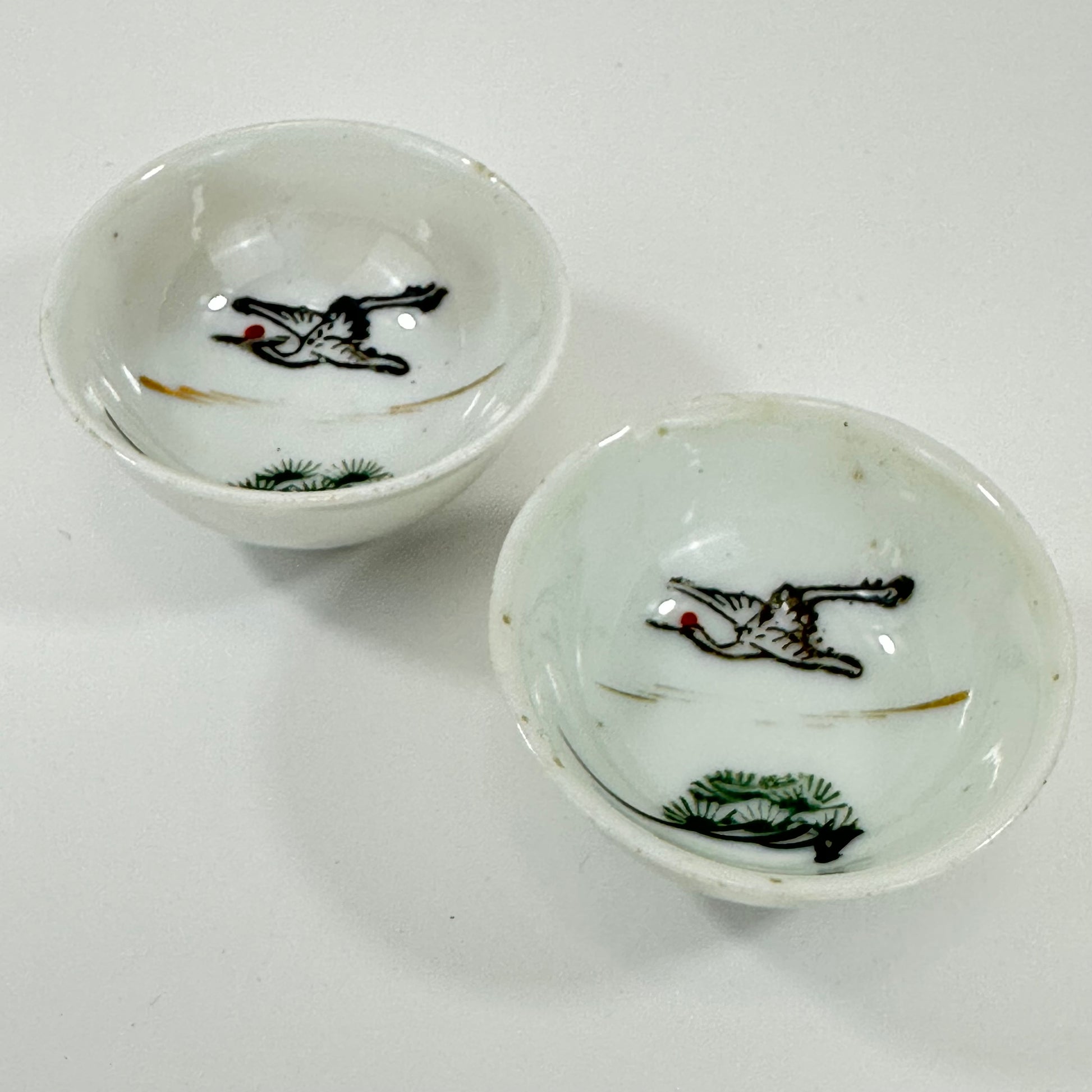 Vintage Japanese Sake Cups (2) Crane with Pine