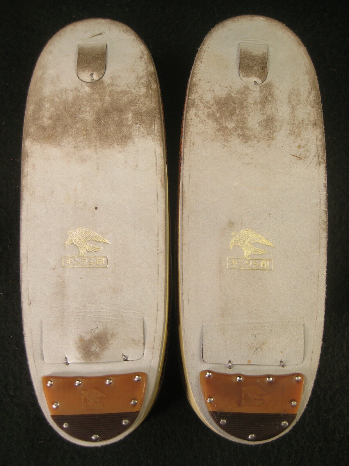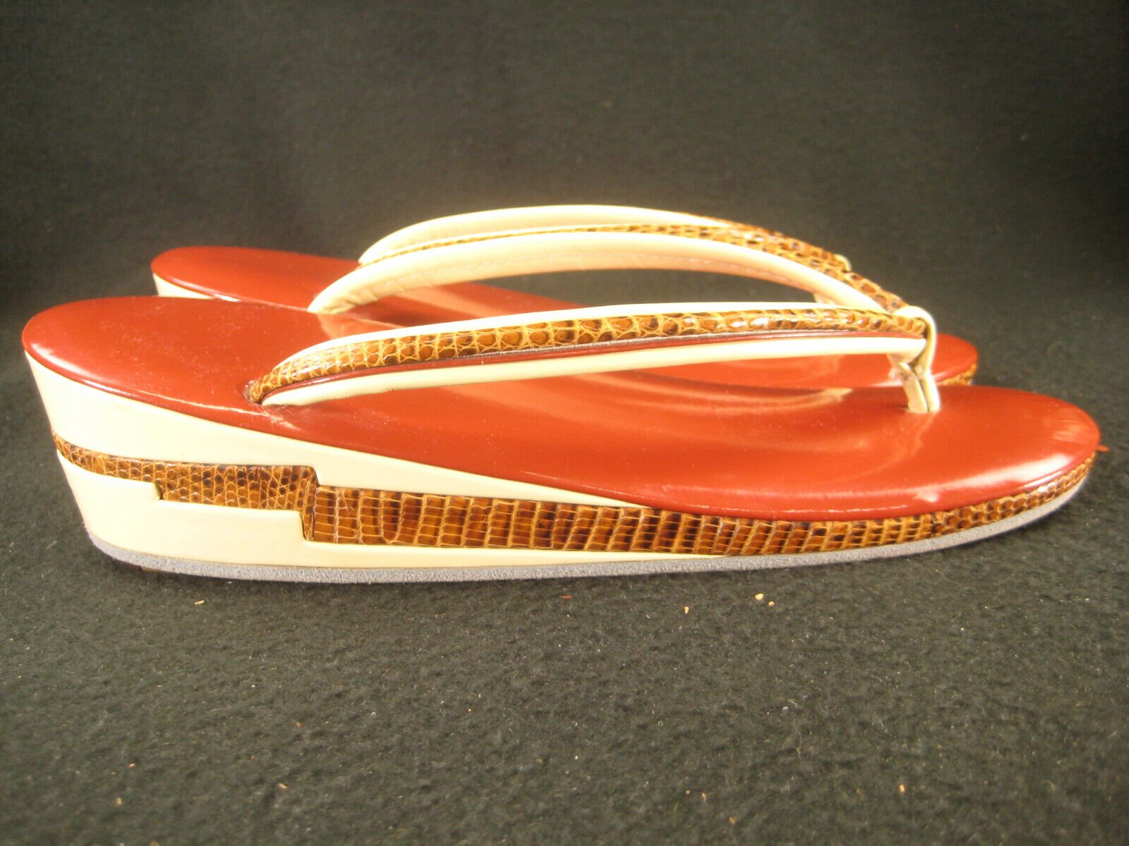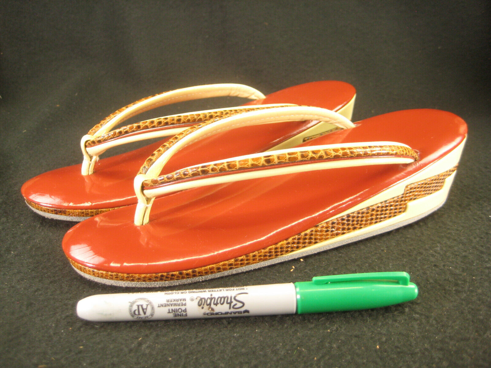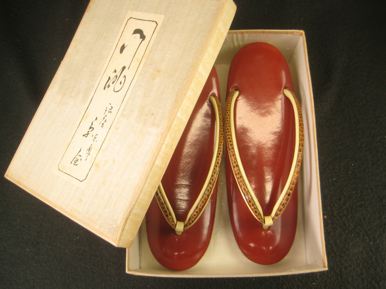 This is a pair of hand made formal high quality leather split toe sandals called setta. These are the official shoes to wear with traditional Japanese clothing and before a tea ceremony. They measure 9" long by 3" wide. It's about 7 1/2" from the toe strap to the back of the heel. This pair comes in the original box which measures 9" x 7" x 3"(23 x 18 x 7.5 cm)