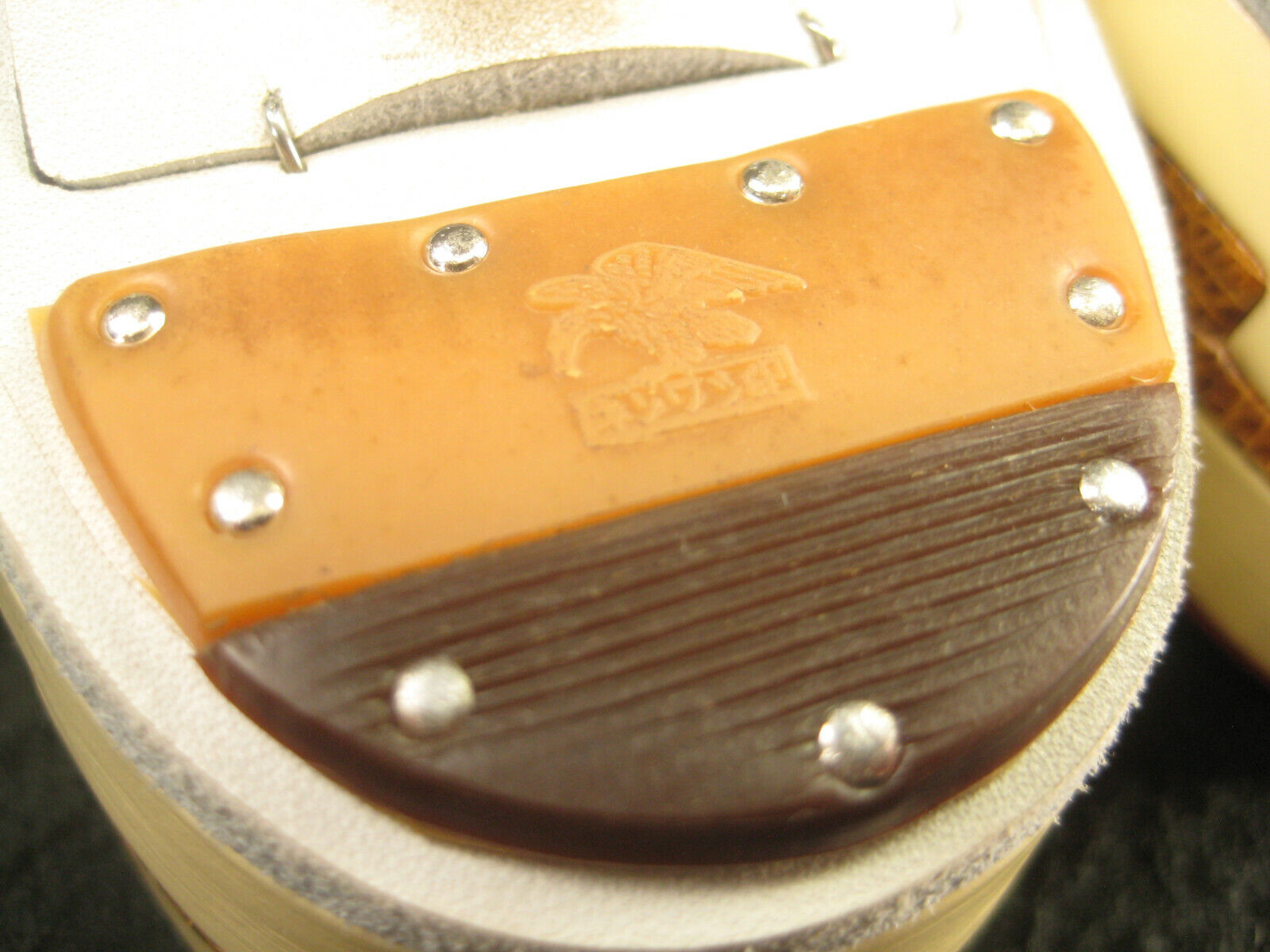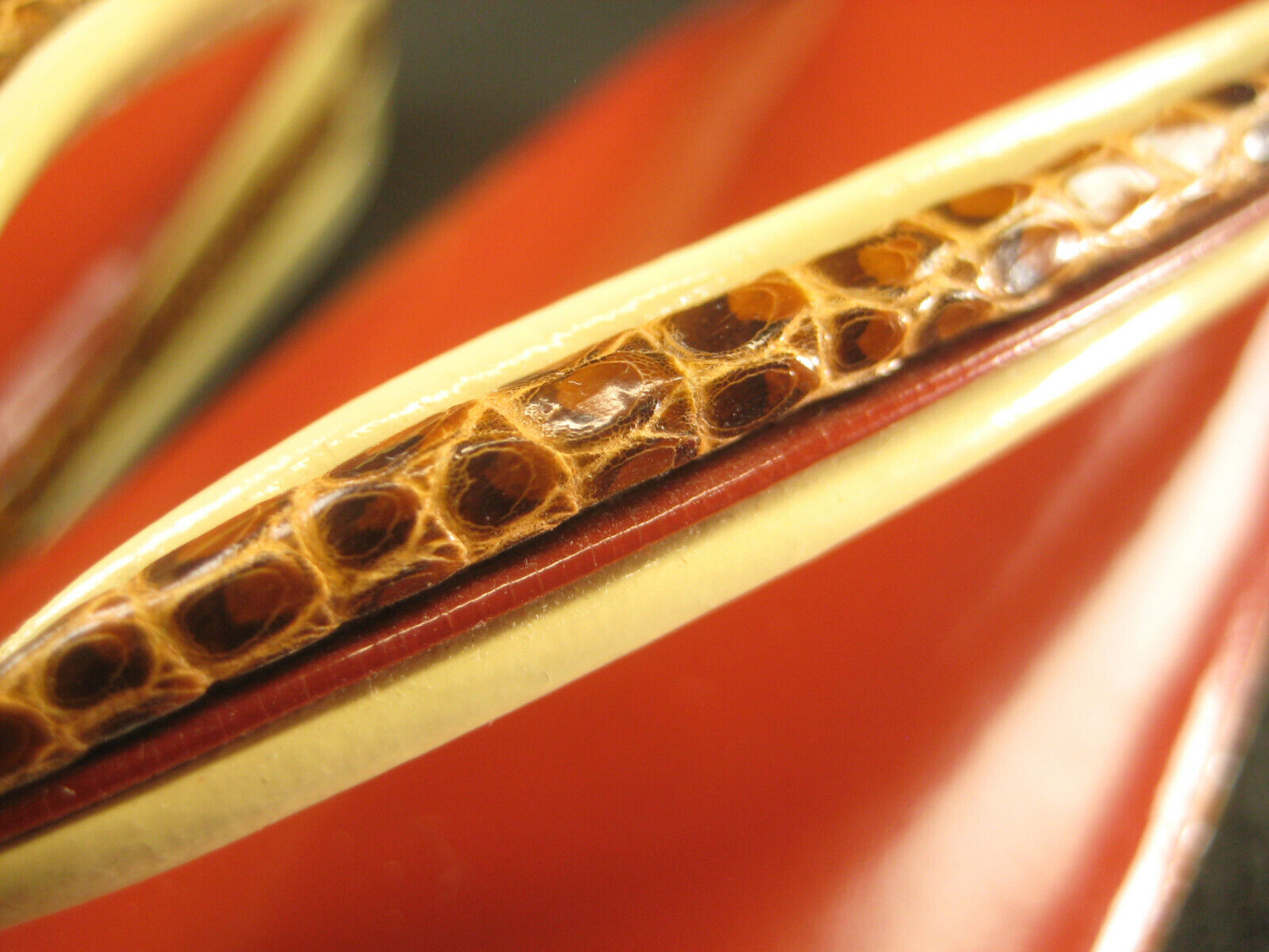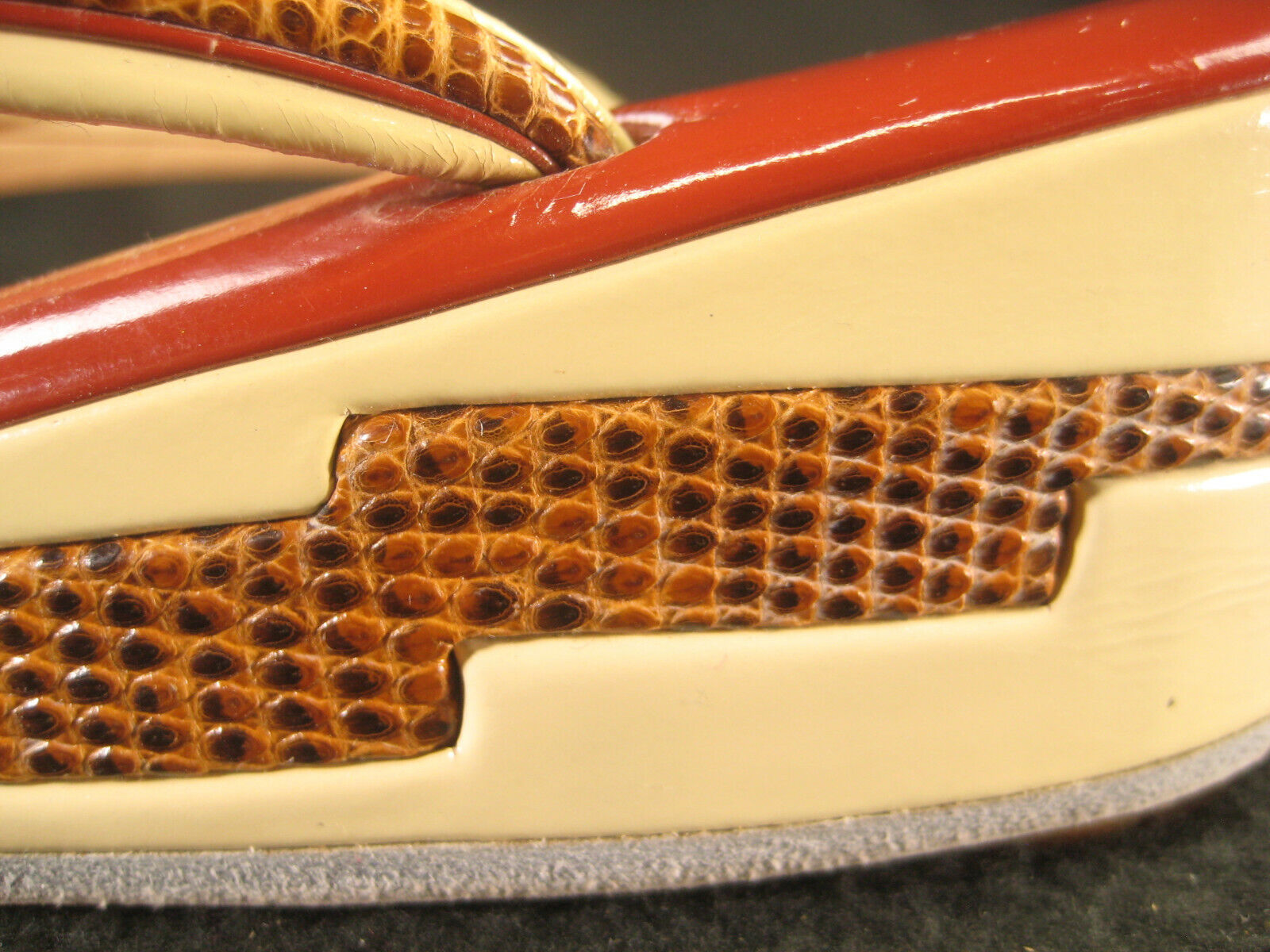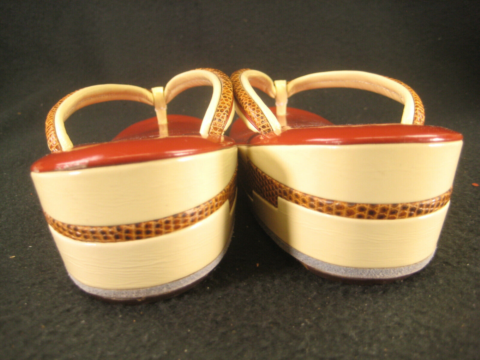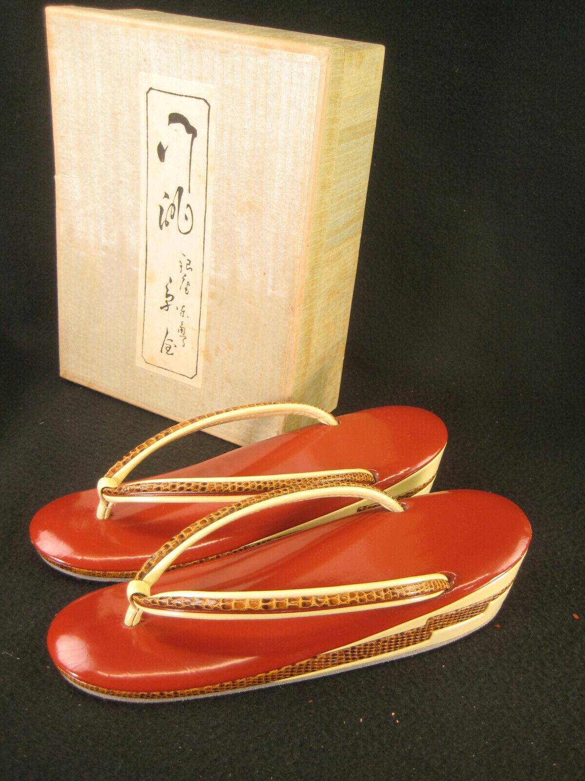 This is a pair of hand made formal high quality leather split toe sandals called setta. These are the official shoes to wear with traditional Japanese clothing and before a tea ceremony. They measure 9" long by 3" wide. It's about 7 1/2" from the toe strap to the back of the heel. This pair comes in the original box which measures 9" x 7" x 3"(23 x 18 x 7.5 cm)