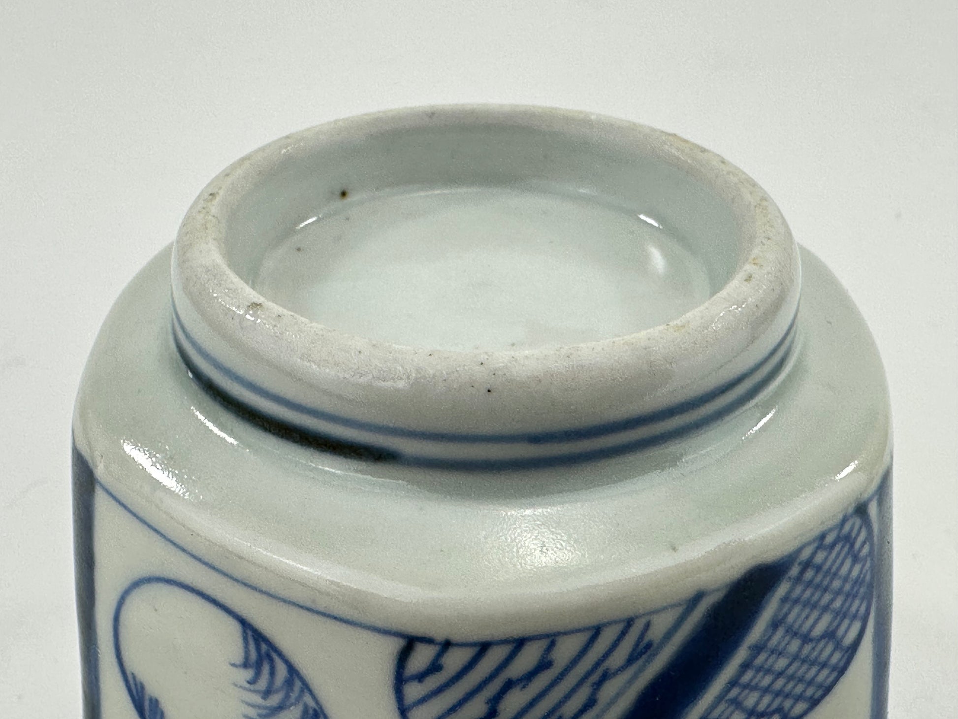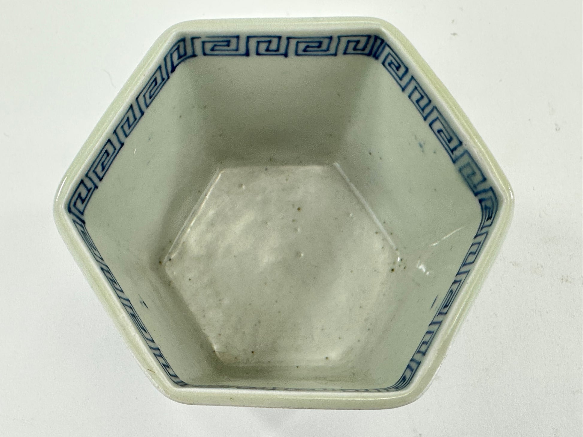 Antique Japanese Arita Imari Blue & White Hexagonal Porcelain Cup 19th C.
