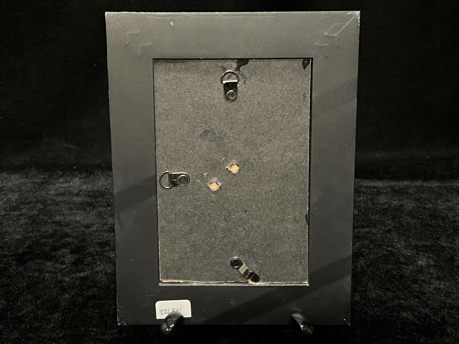 This is a framed painting on canvas of a small child flying a white hawk kite.Signed or titled in calligraphy. It measures approximately 6.25" wide by 8.25" tall (16 x 21 cm). It is in very good condition.
