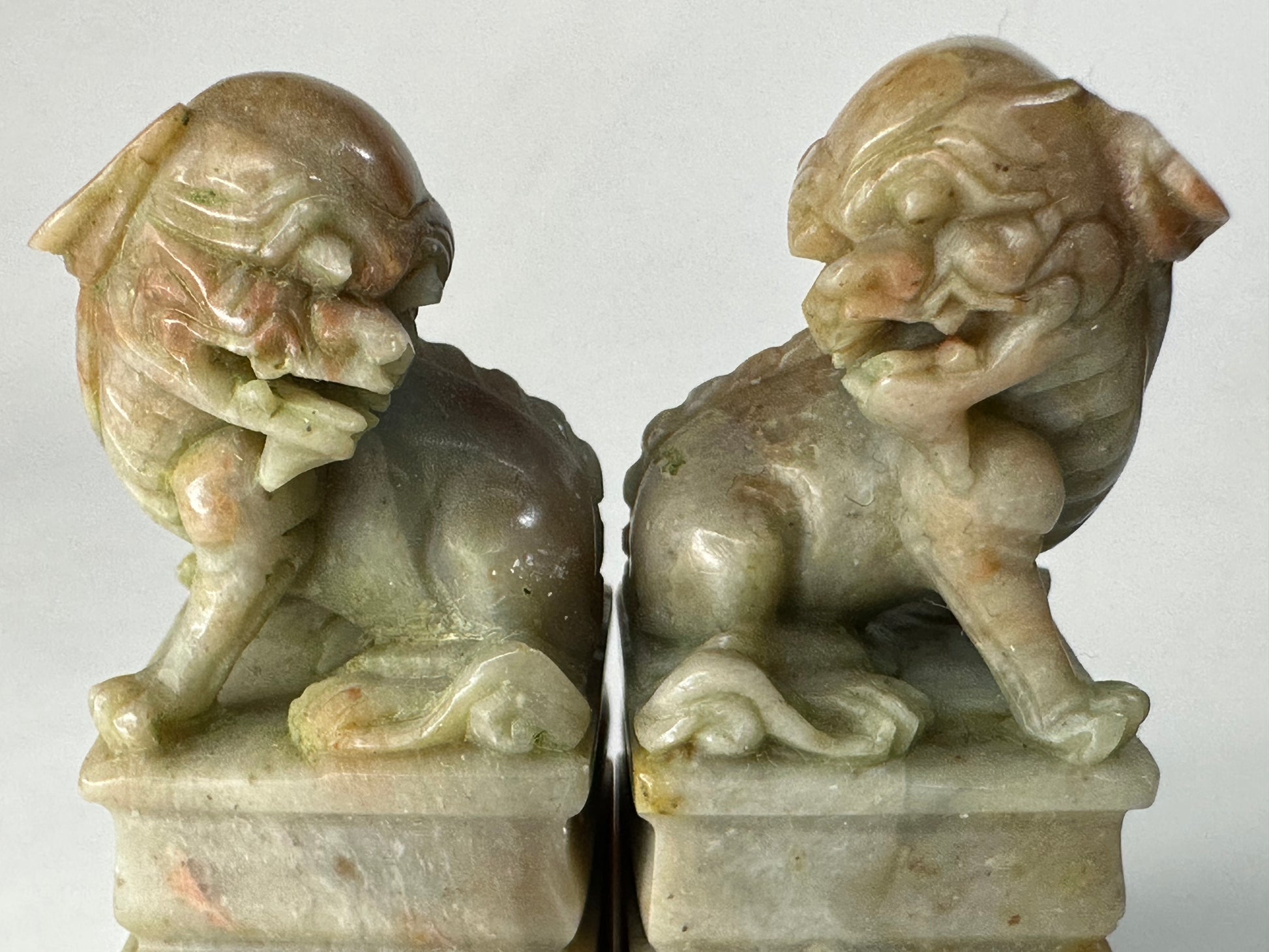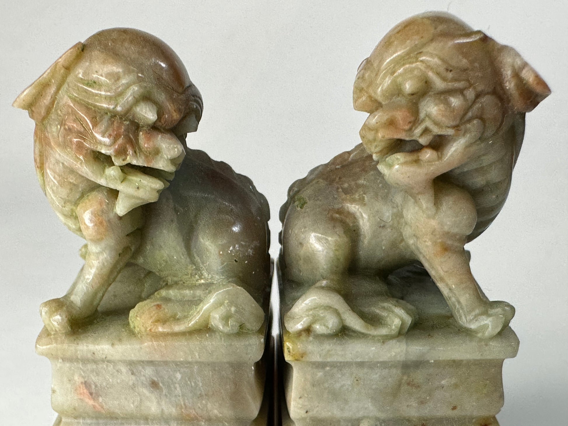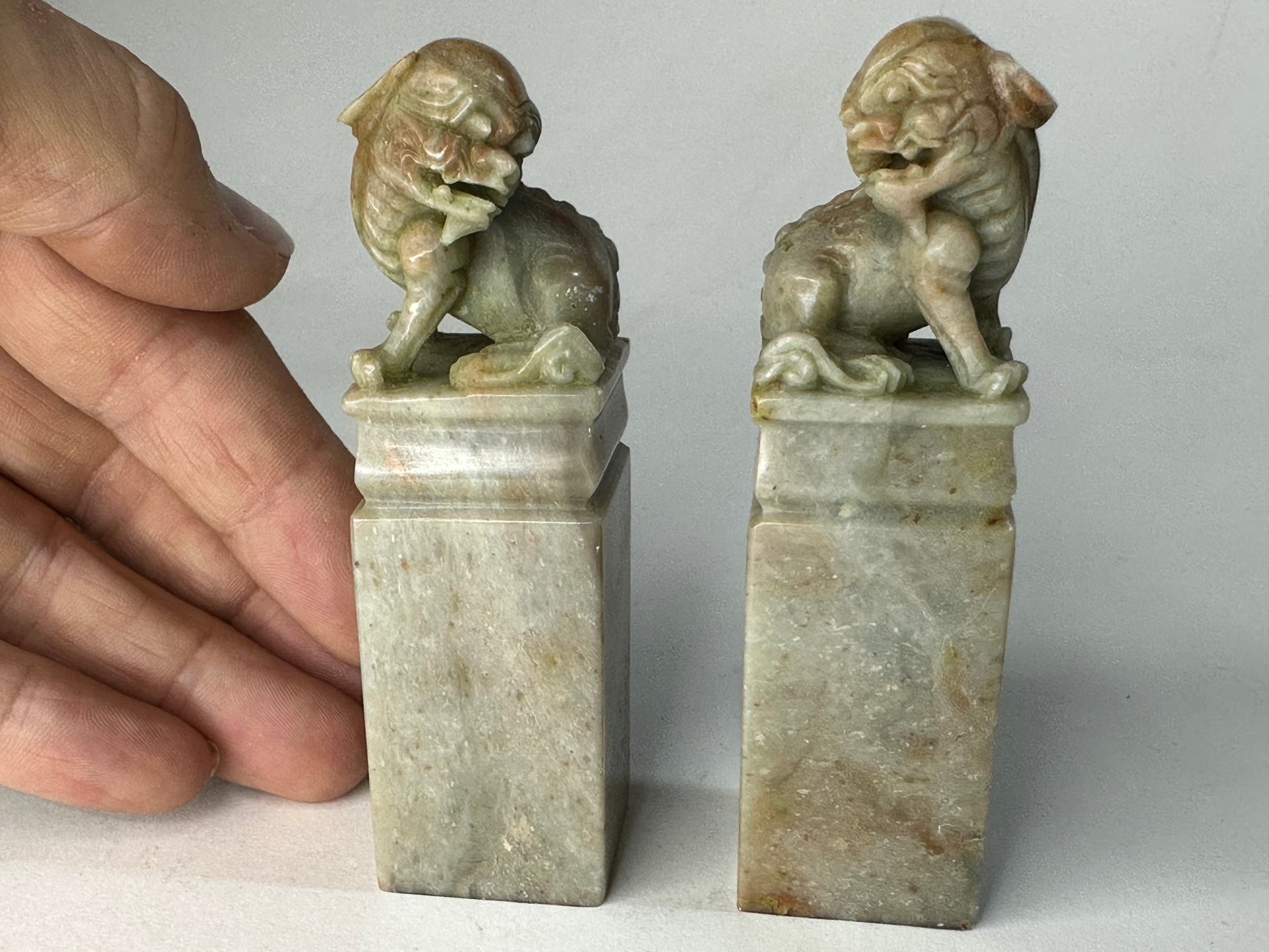 Vintage Chinese Pair of Handcarved Inkan Marble Name Stamp w/ Foo Dog 3.5"