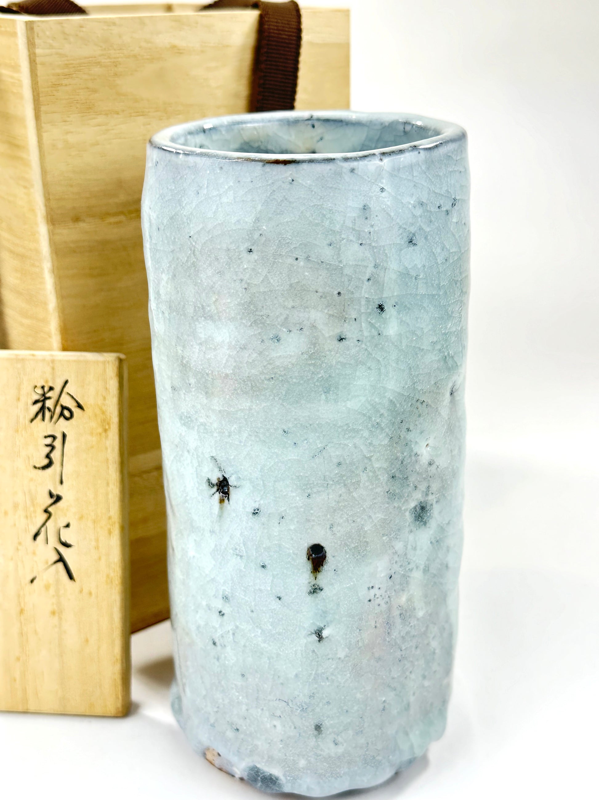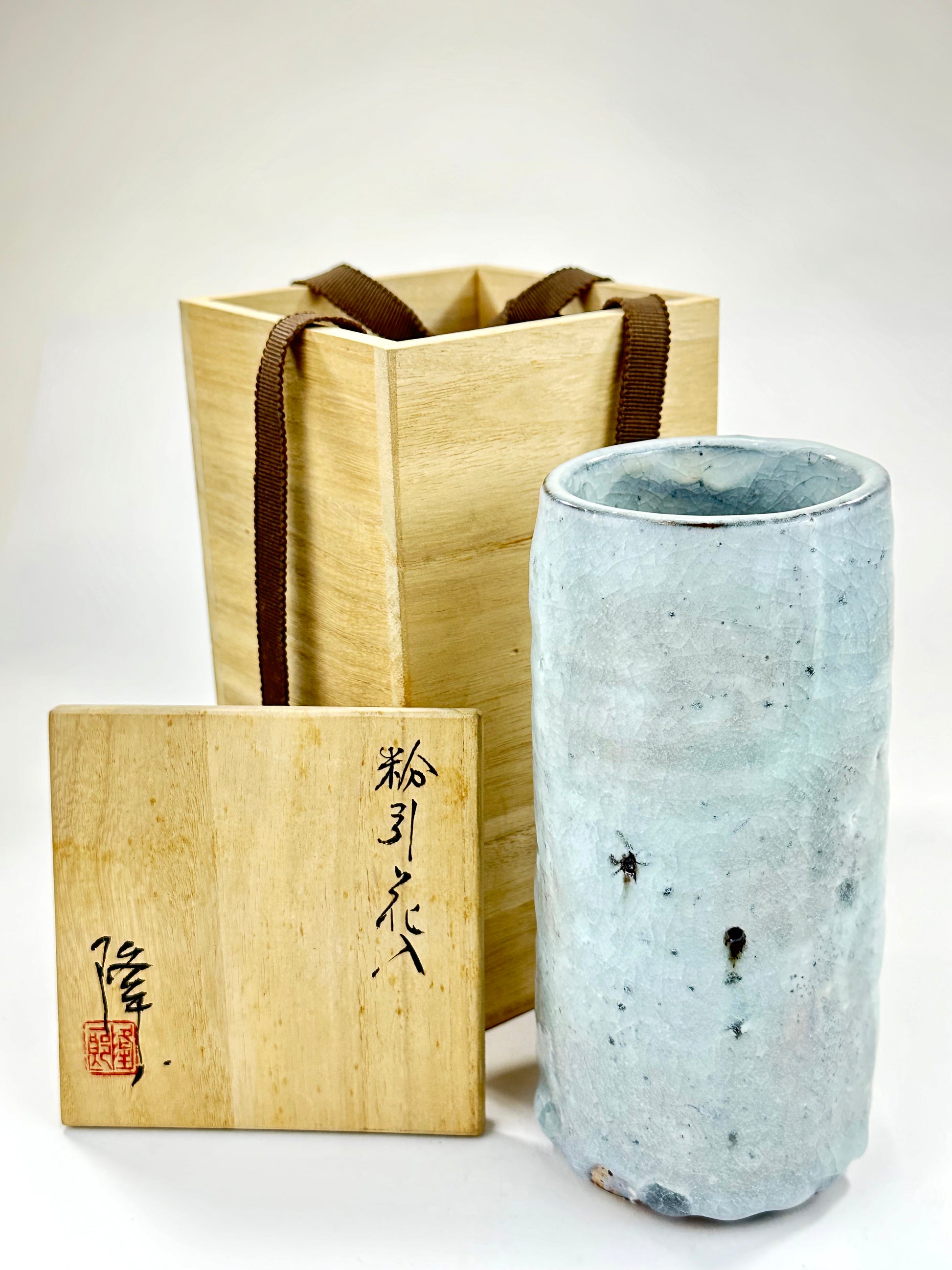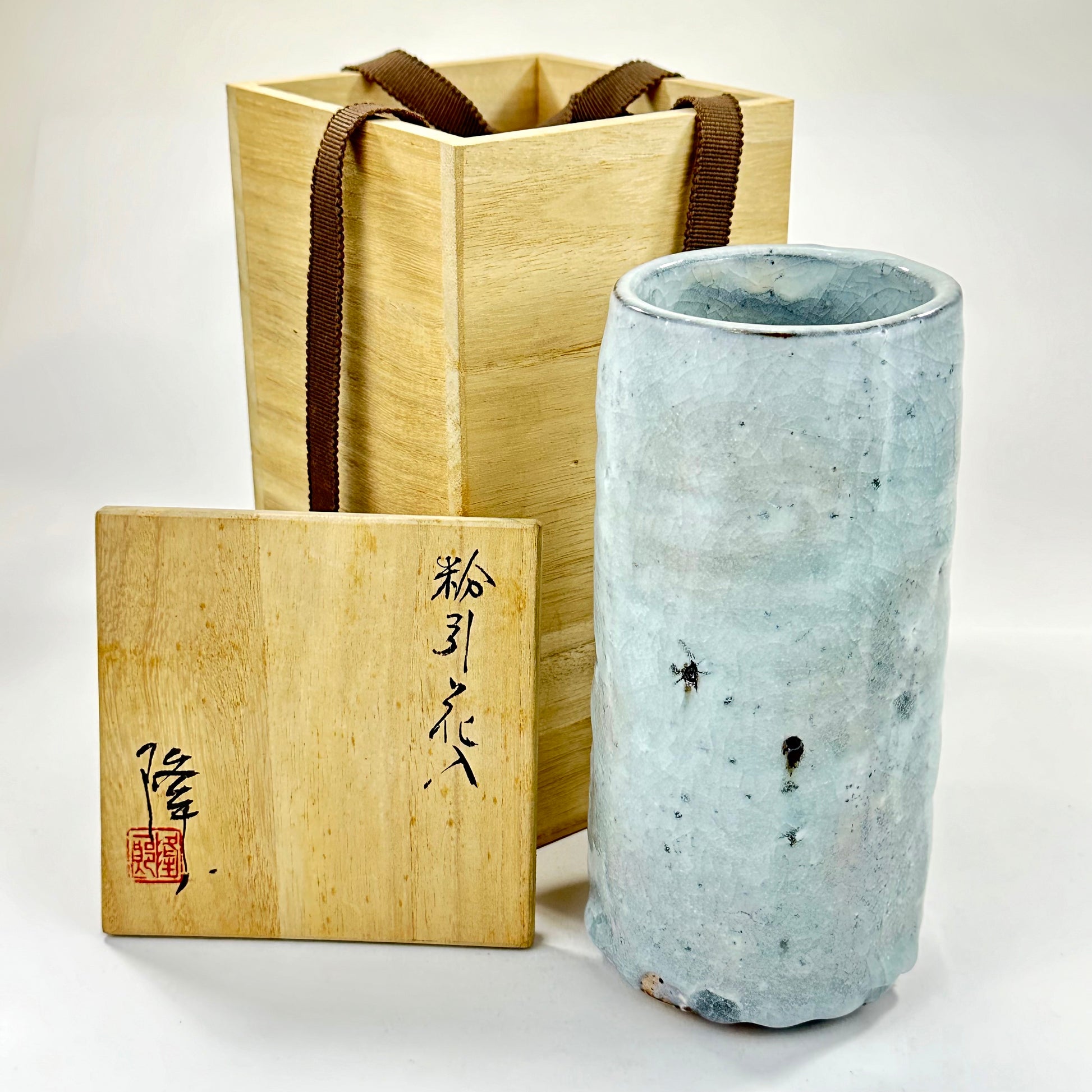This is a vintage Japanese Mino ware flower vase typically used in the Japanese tea ceremony known as Chabana (flower arranging for tea) c1960’s. It is made of ceramic fired at high temperatures for lasting durability. It comes with the original kiri wood presentation box. Having been in storage this vase is in excellent condition.