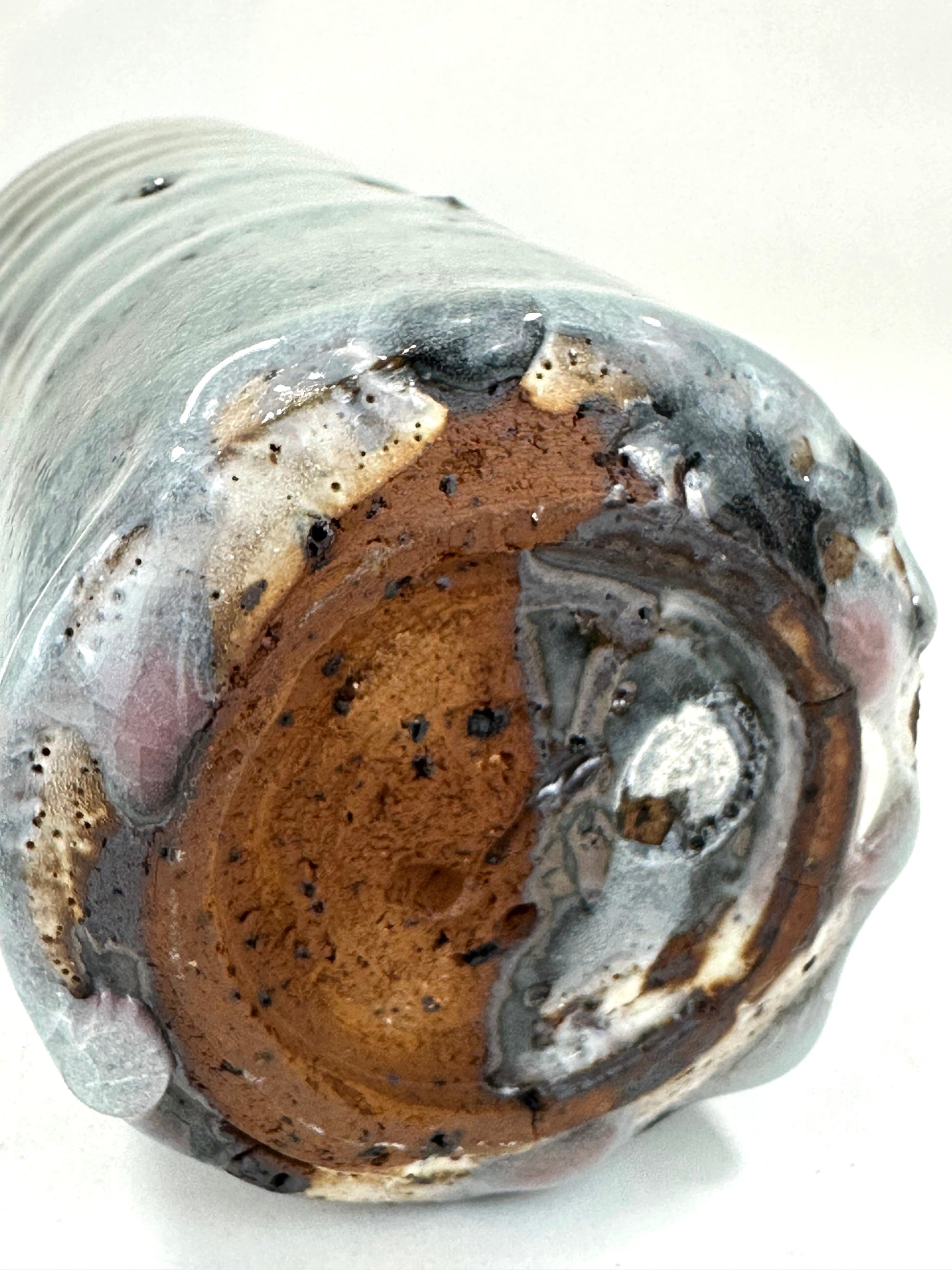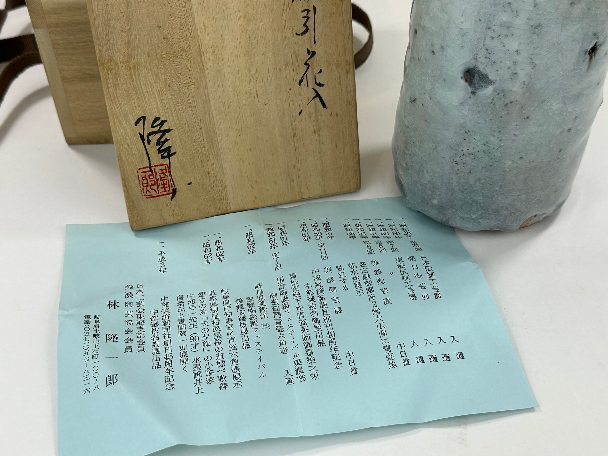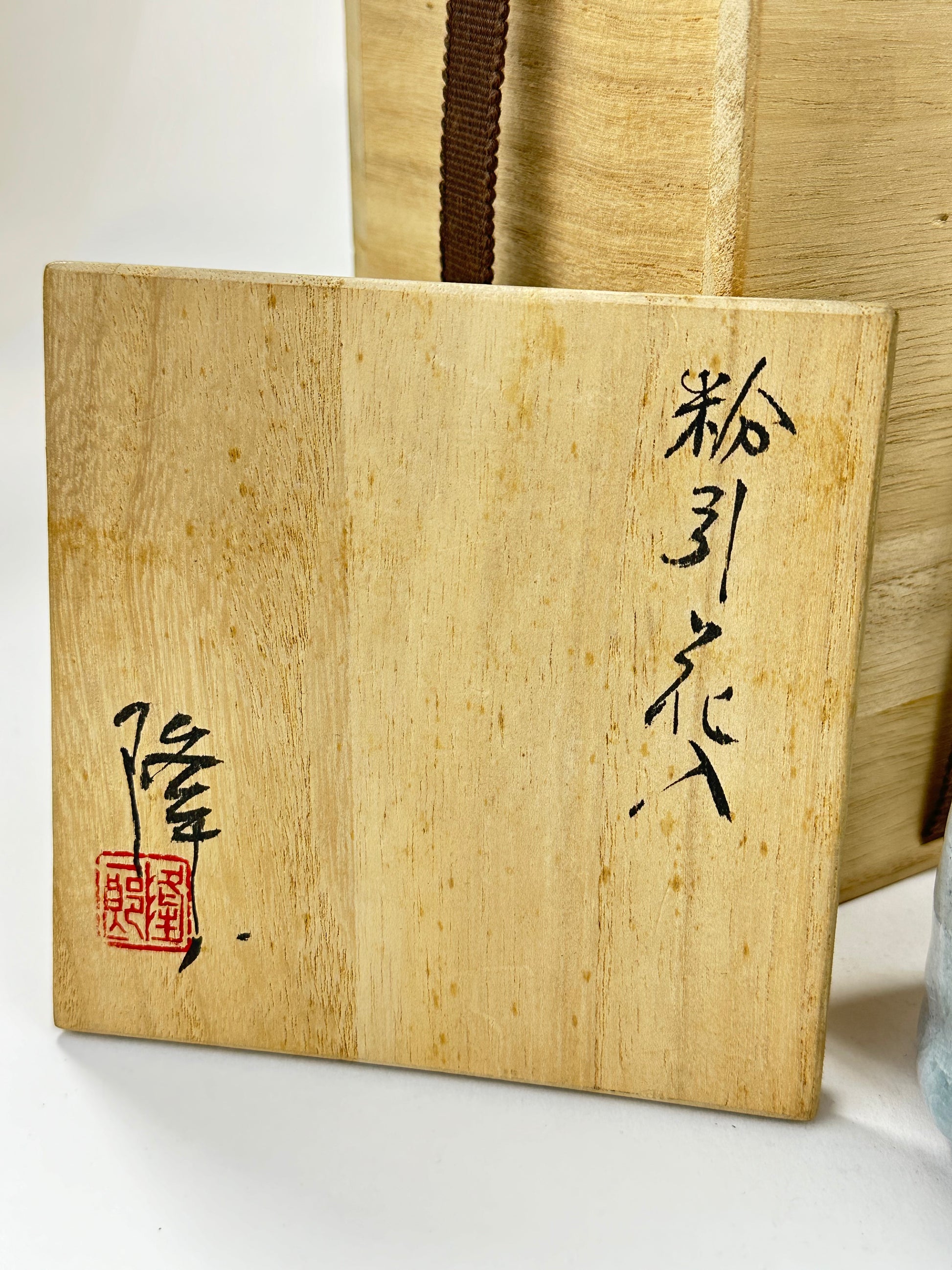 This is a vintage Japanese Mino ware flower vase typically used in the Japanese tea ceremony known as Chabana (flower arranging for tea) c1960’s. It is made of ceramic fired at high temperatures for lasting durability. It comes with the original kiri wood presentation box. Having been in storage this vase is in excellent condition.