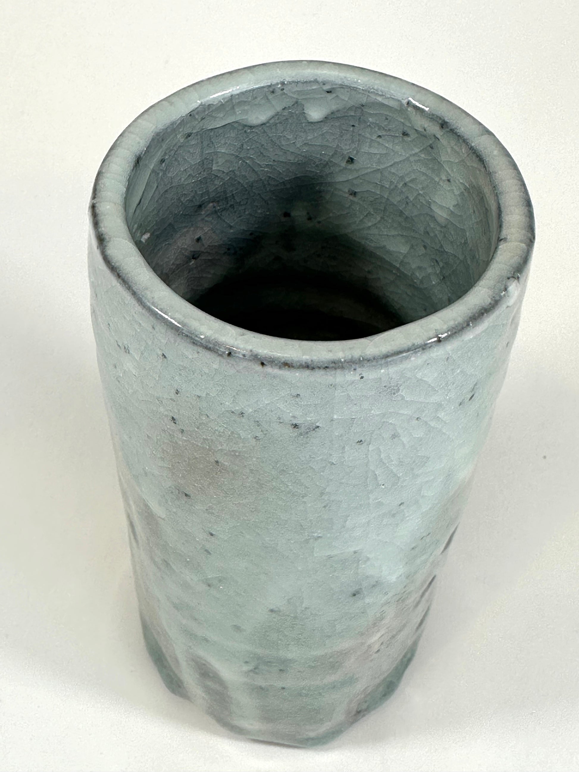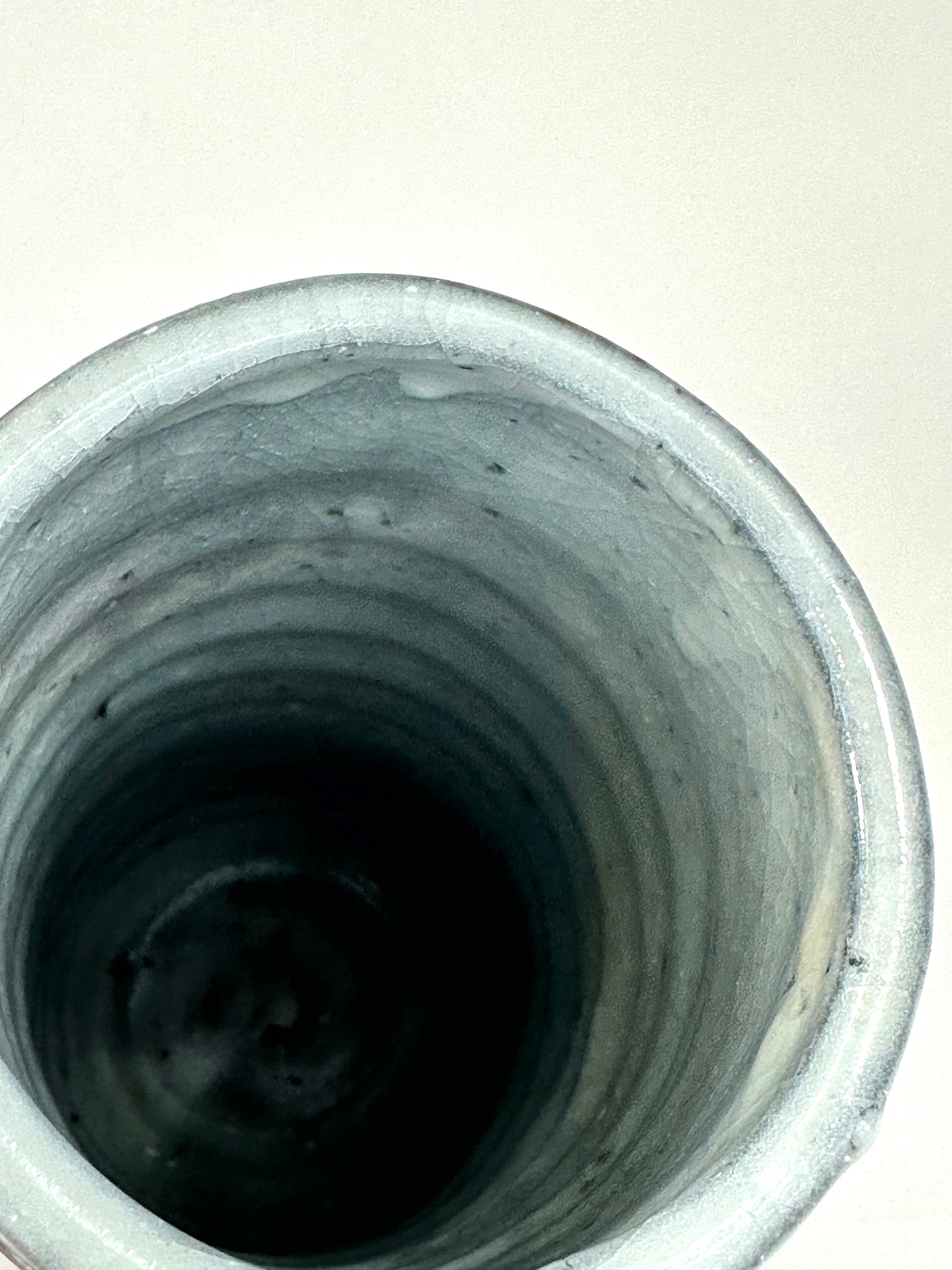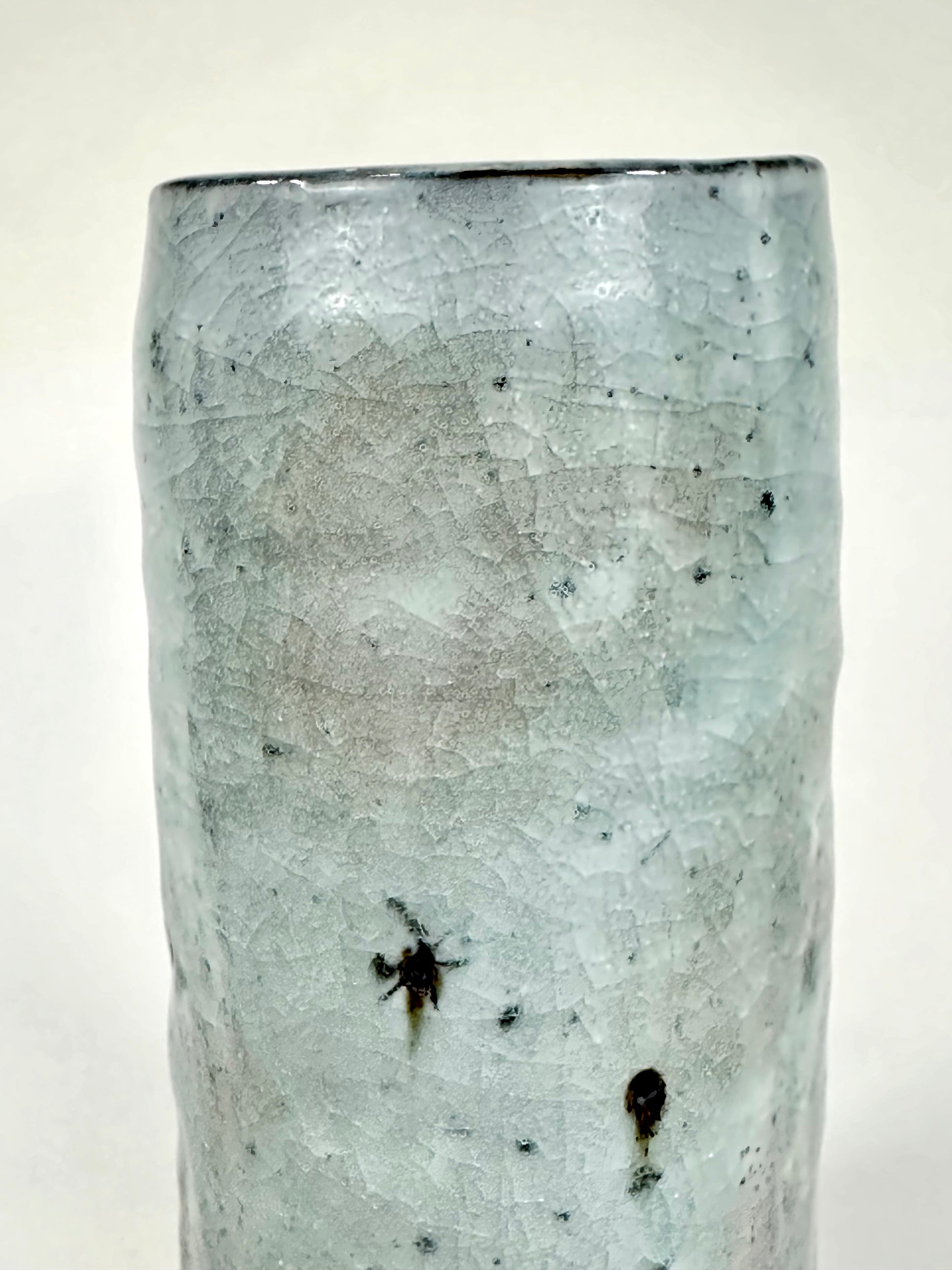 Vintage Japanese Mino Ware Blue Crackle Glaze Ceramic Flower Vase 7”