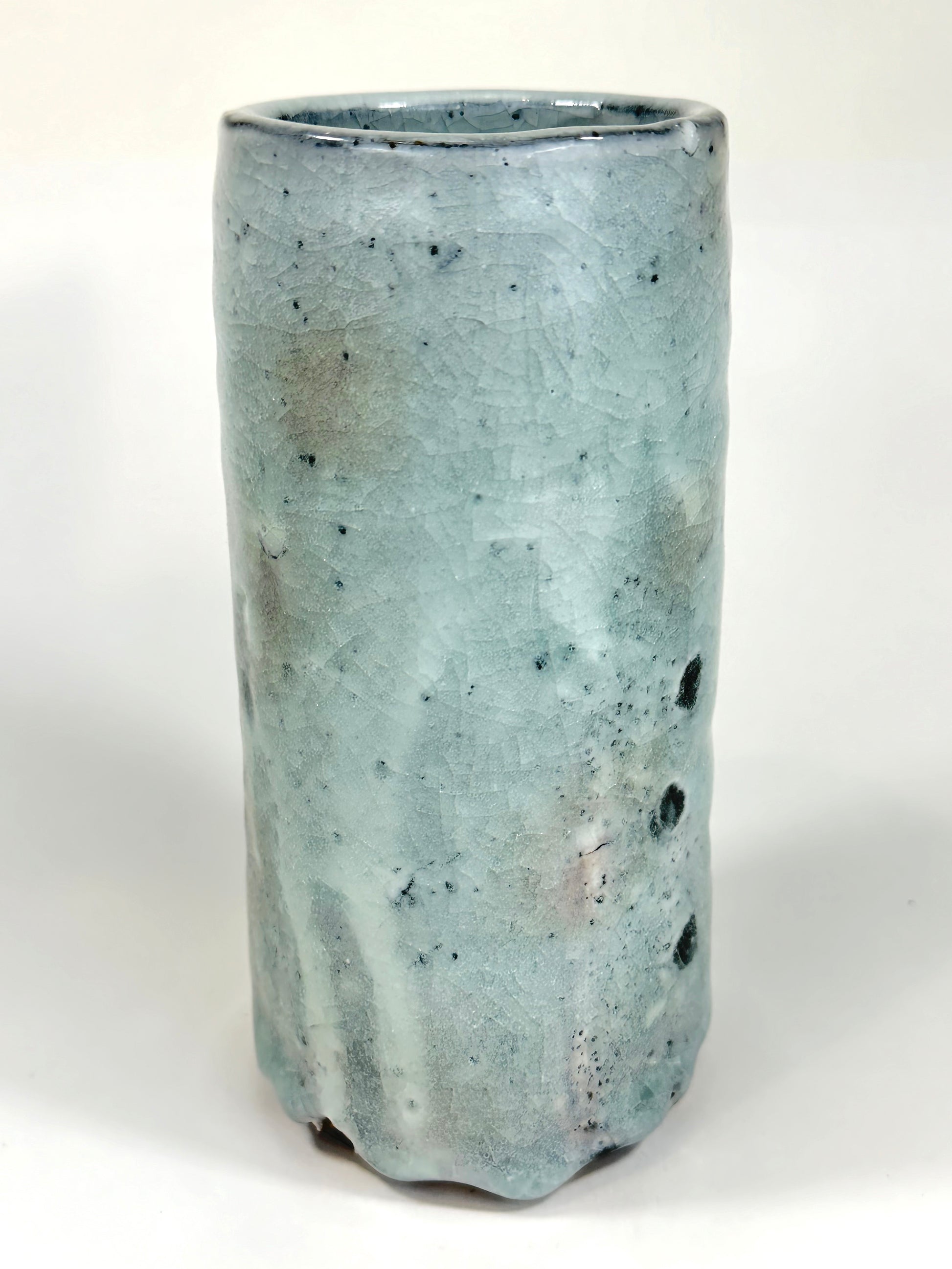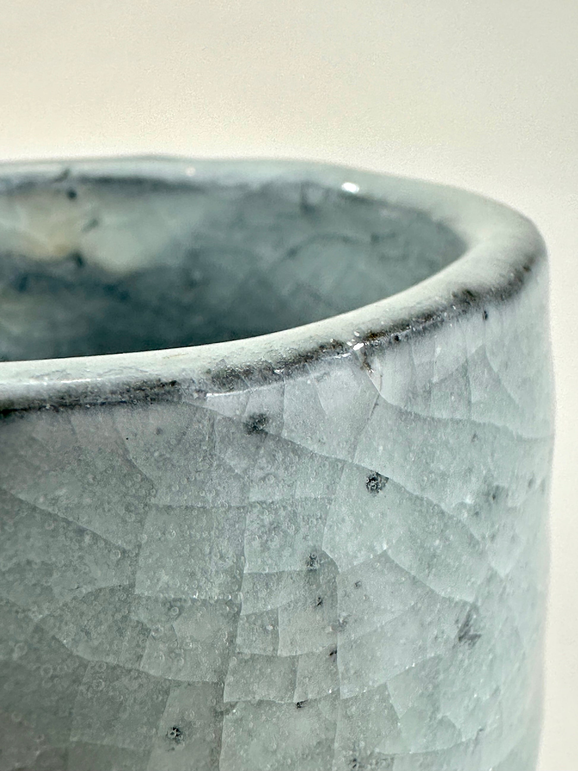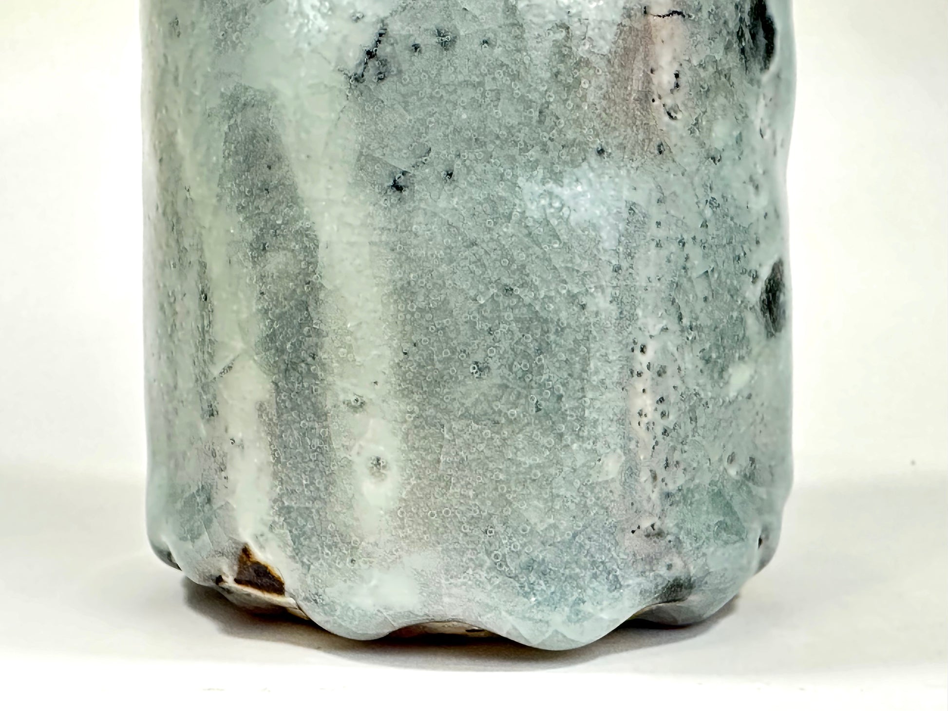 Vintage Japanese Mino Ware Blue Crackle Glaze Ceramic Flower Vase 7”