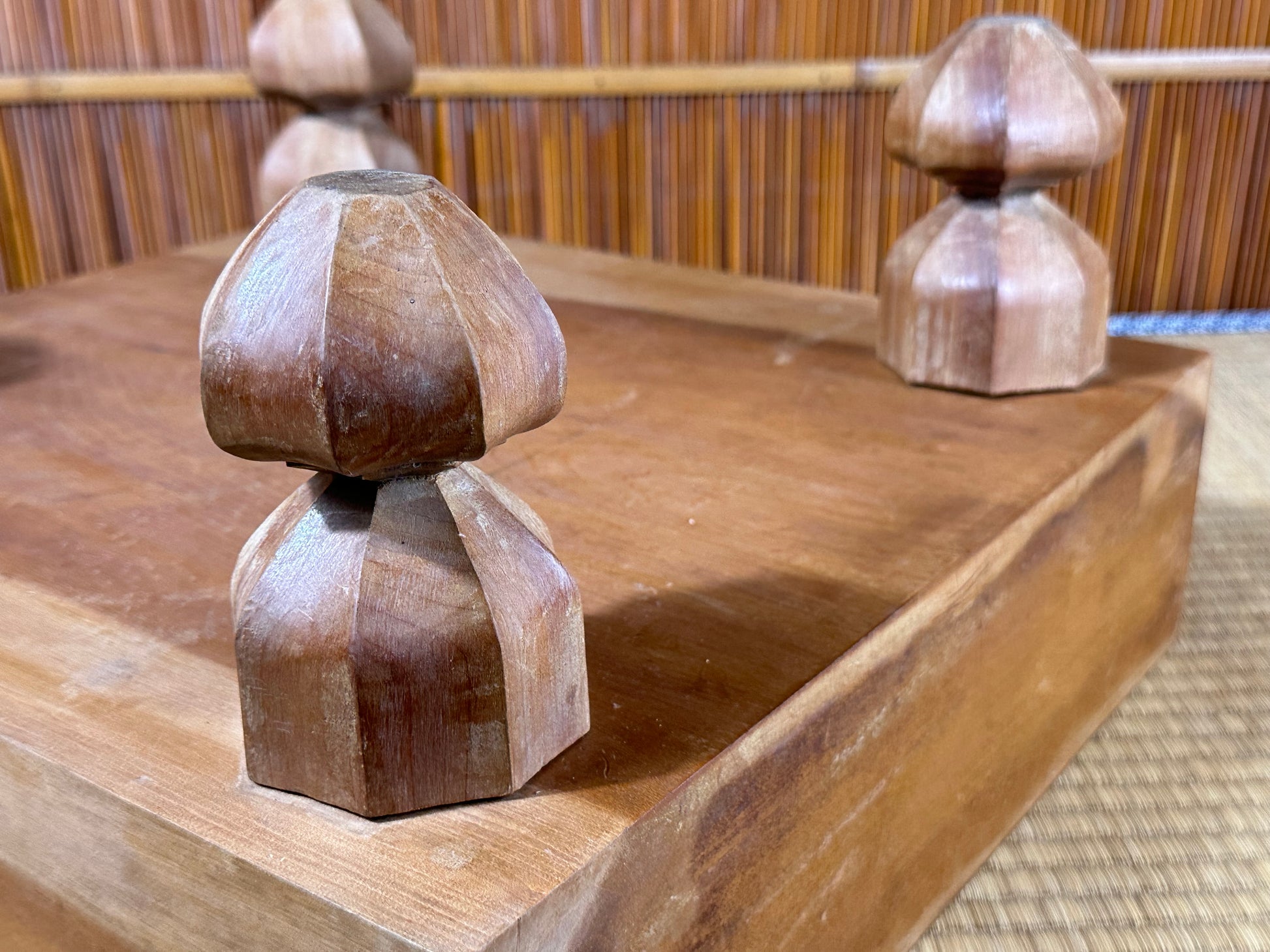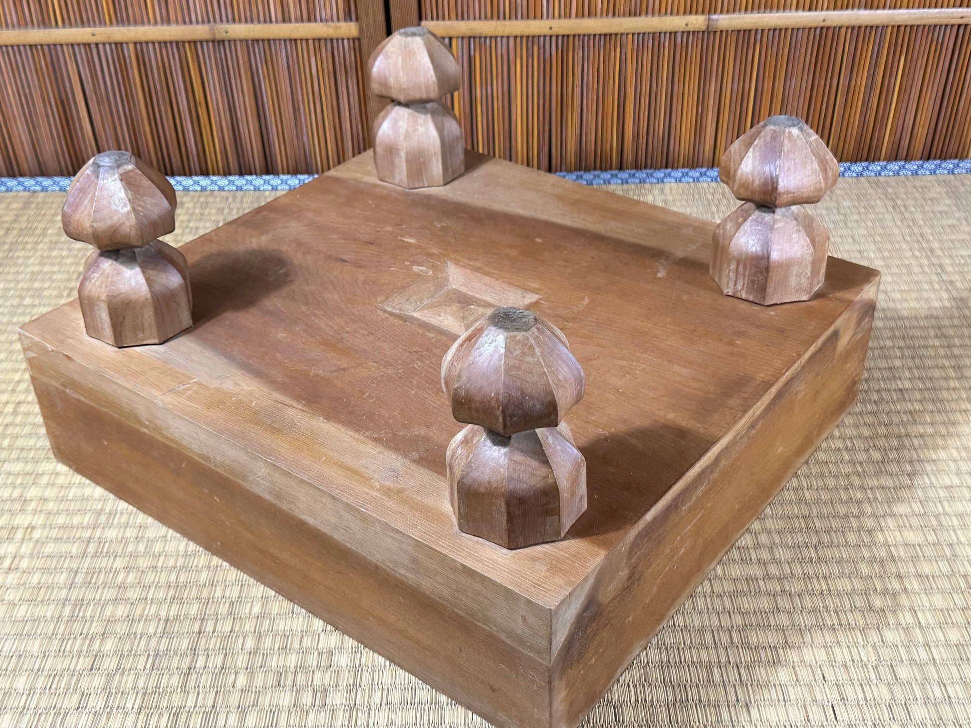 Playing Go on a real Japanese floor board is a different experience from using a thin tabletop board. The thick wooden block produces a deeper, clearer click when stones are placed, a sound that the Nihon Ki-in has long described as part of the “proper atmosphere” of serious play. This resonance comes from both the thickness of the block and the type of wood used. Traditional makers favor kaya, a smooth, golden wood whose density and aging characteristics create a uniquely satisfying tone, but players also commonly encounter katsura, which is heavier and darker, and shin-kaya, a lighter spruce used in modern, affordable boards.