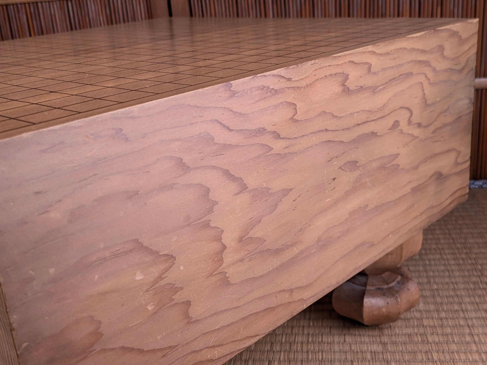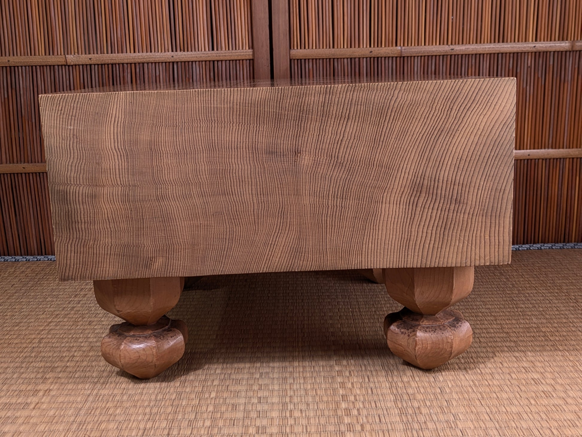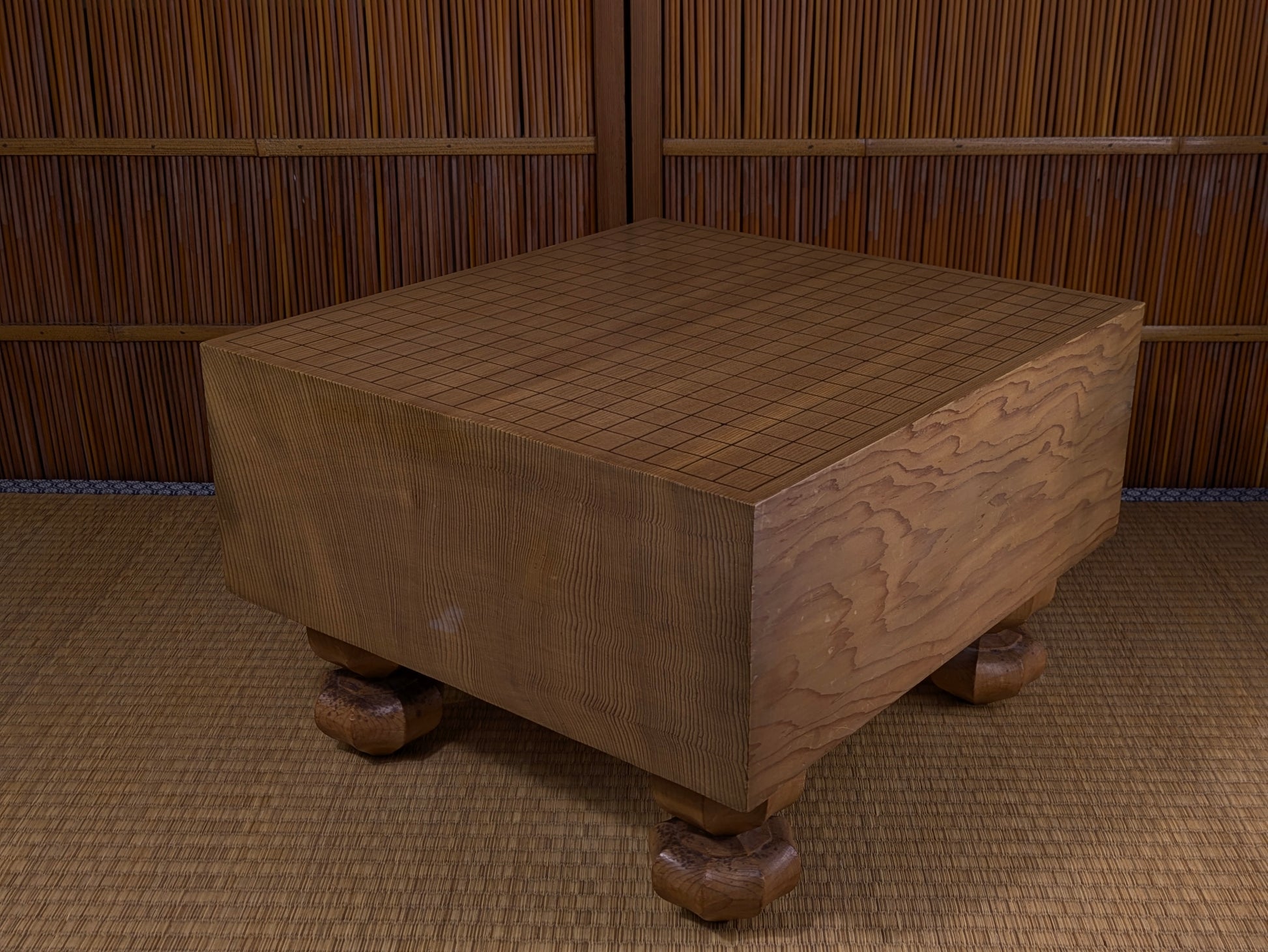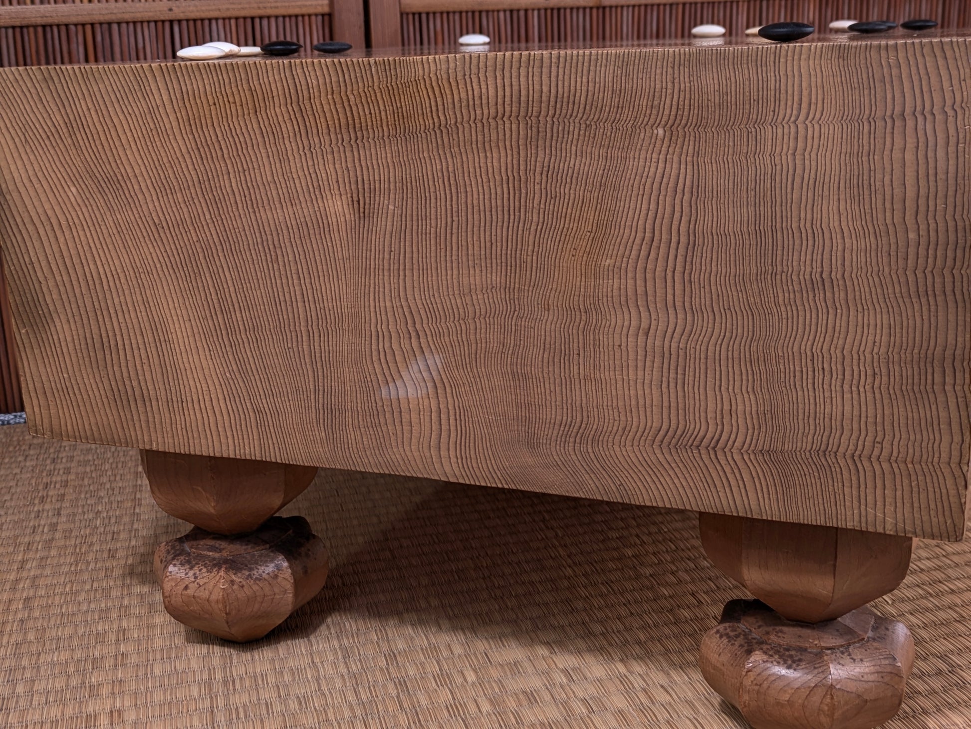 Solid single-block katsura goban (桂) with extremely fine grain and cloud-form feet (雲形足)