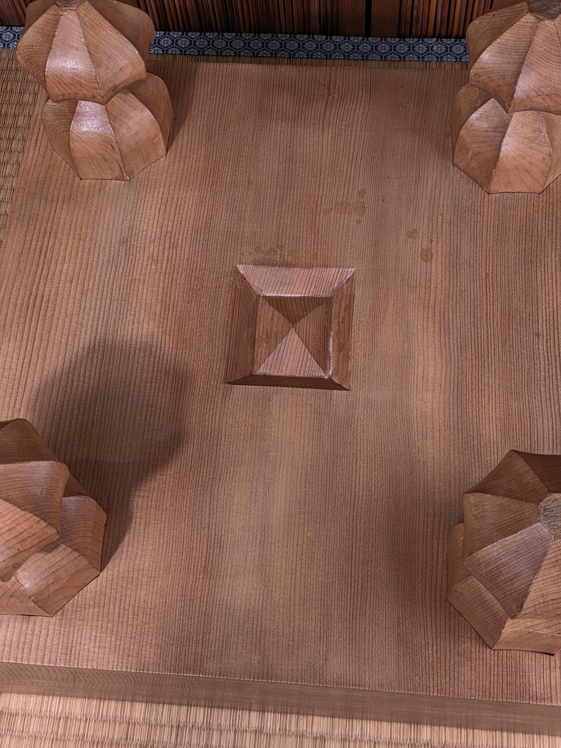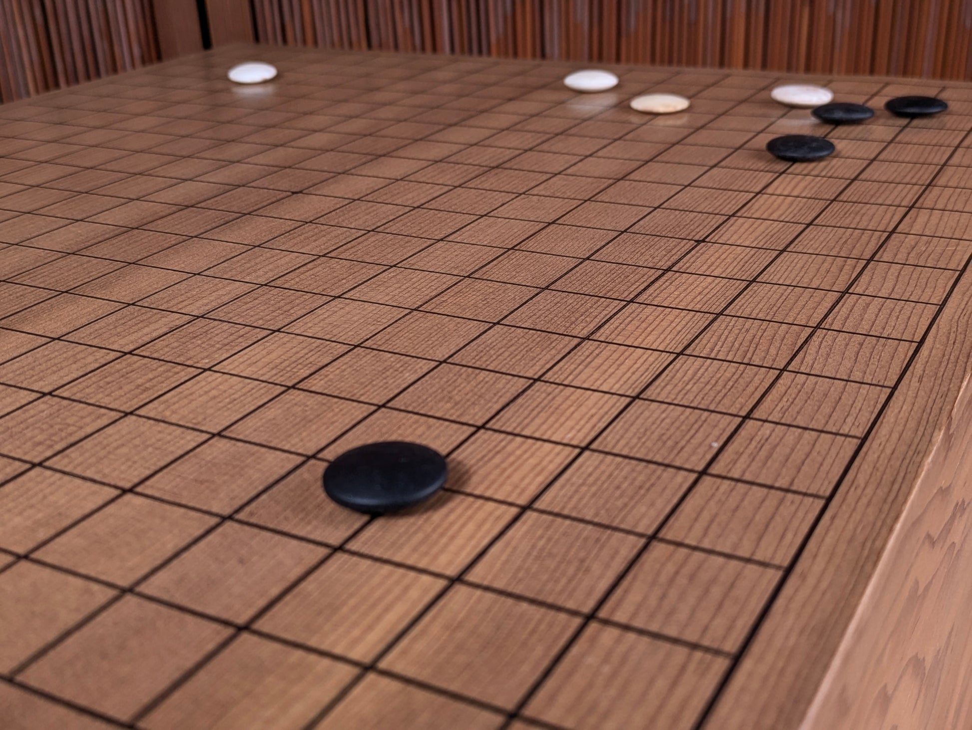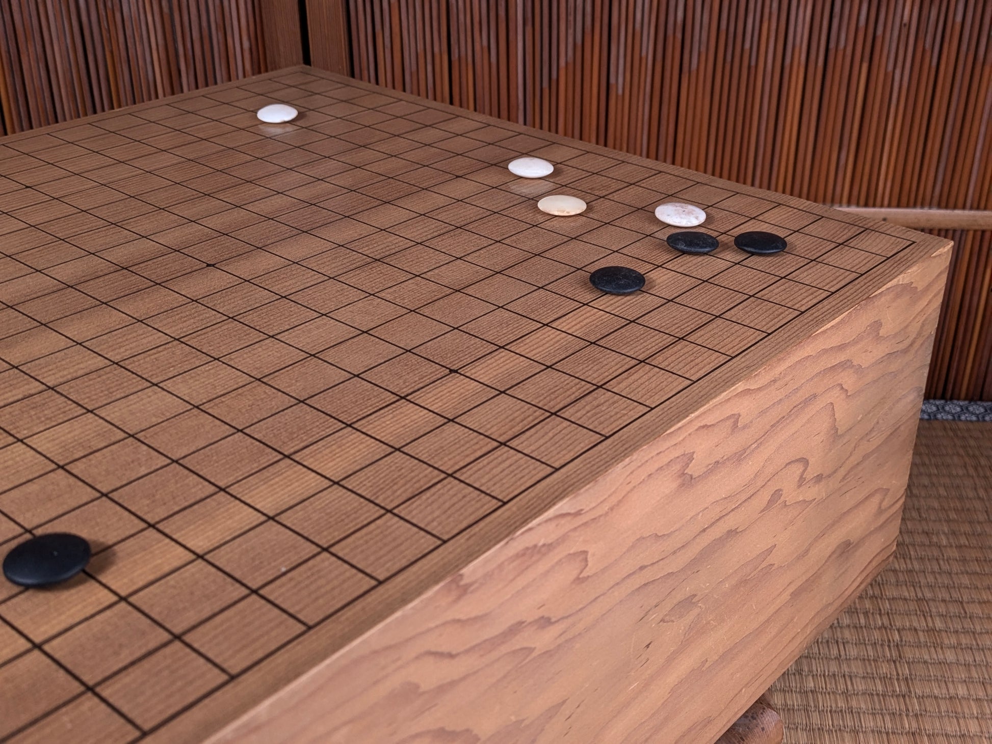 Playing Go on a real Japanese floor board is a different experience from using a thin tabletop board. The thick wooden block produces a deeper, clearer click when stones are placed, a sound that the Nihon Ki-in has long described as part of the “proper atmosphere” of serious play. This resonance comes from both the thickness of the block and the type of wood used. Traditional makers favor kaya, a smooth, golden wood whose density and aging characteristics create a uniquely satisfying tone, but players also commonly encounter katsura, which is heavier and darker, and shin-kaya, a lighter spruce used in modern, affordable boards.