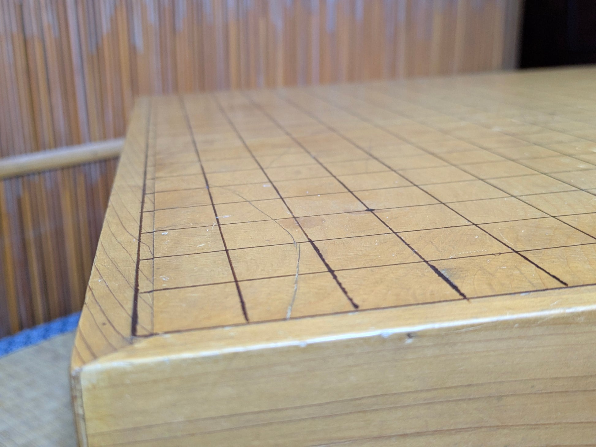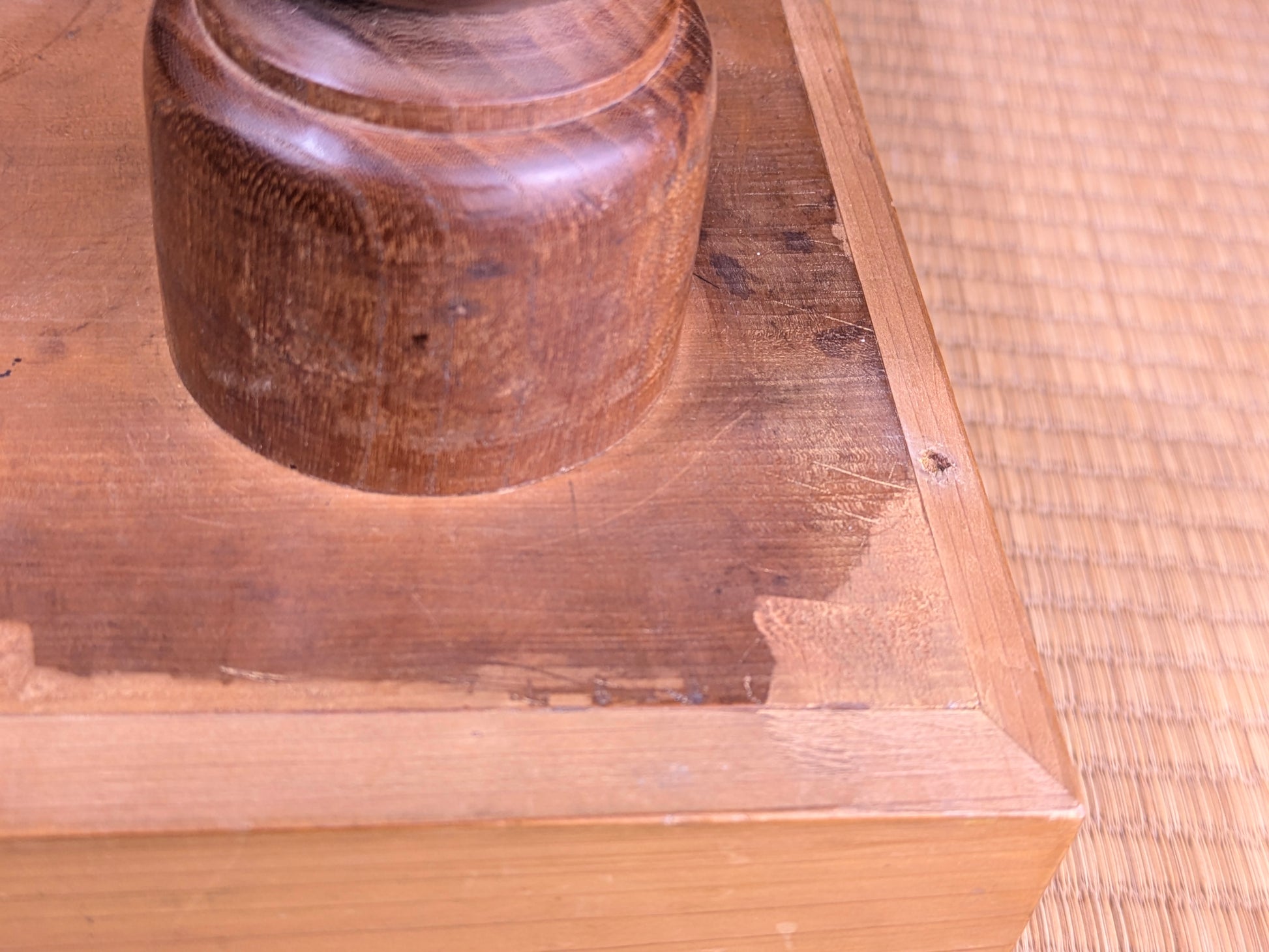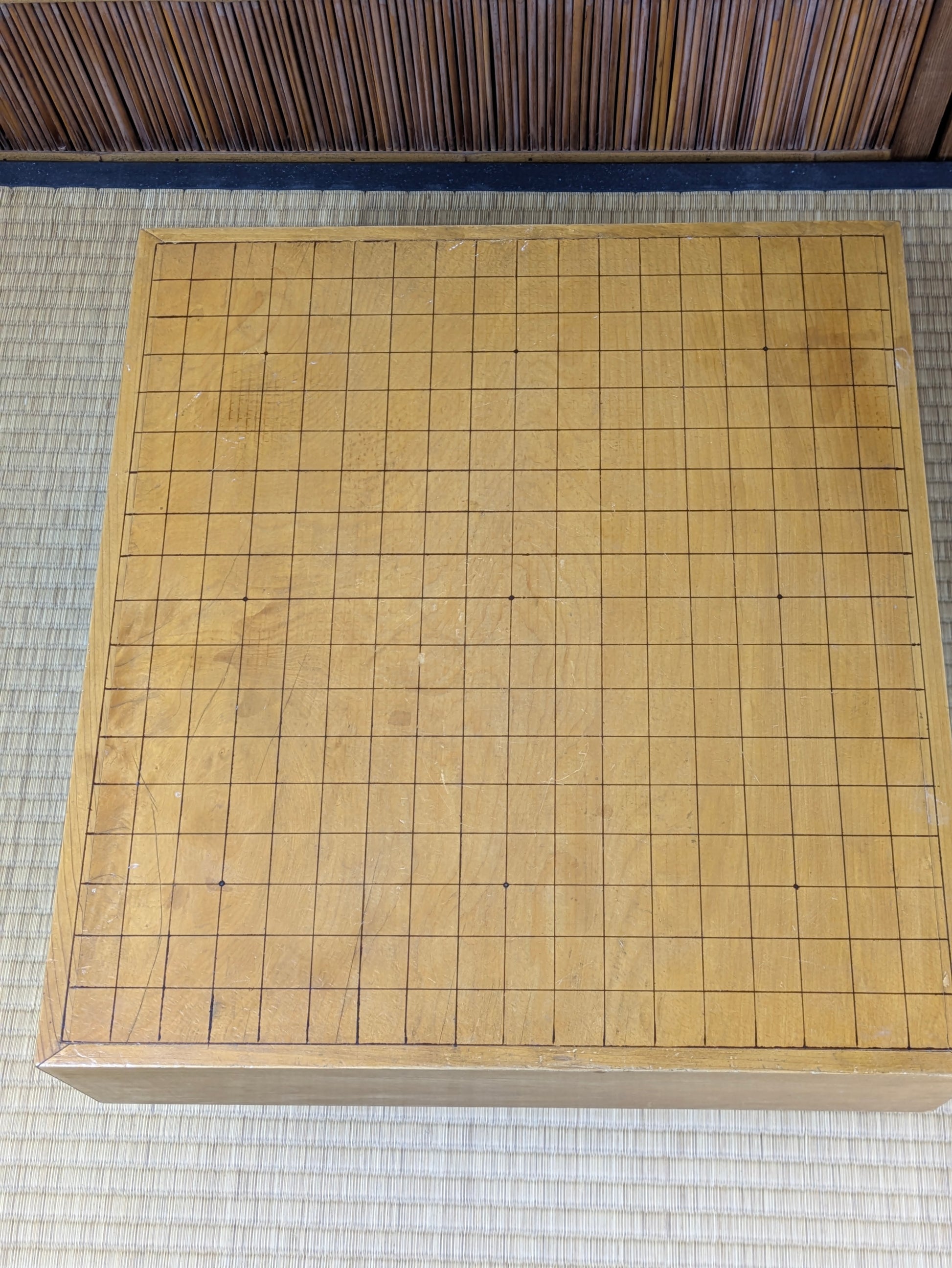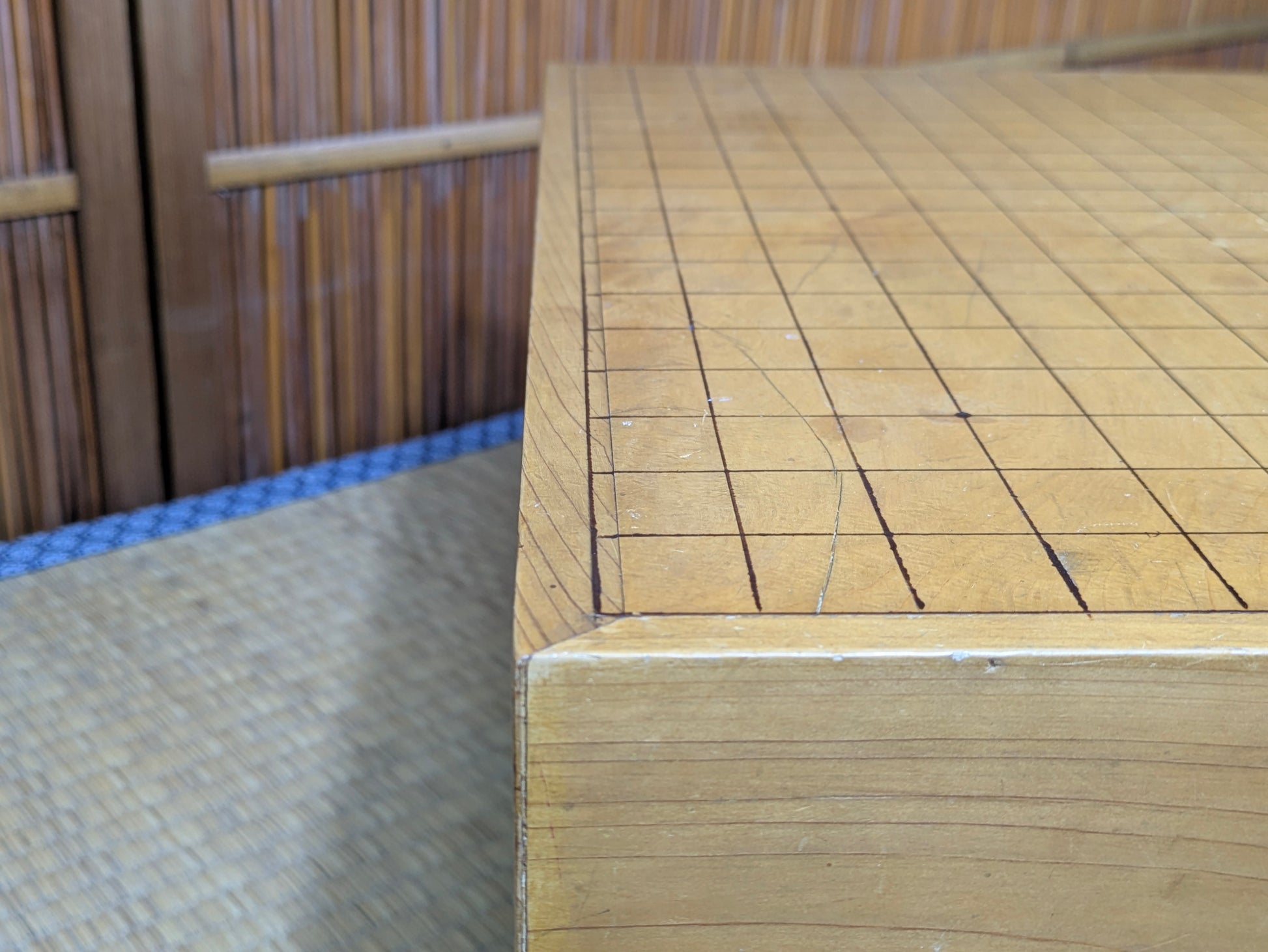 Playing Go on a real Japanese floor board is a different experience from using a thin tabletop board. The thick wooden block produces a deeper, clearer click when stones are placed, a sound that the Nihon Ki-in has long described as part of the “proper atmosphere” of serious play. This resonance comes from both the thickness of the block and the type of wood used. Traditional makers favor kaya, a smooth, golden wood whose density and aging characteristics create a uniquely satisfying tone, but players also commonly encounter katsura, which is heavier and darker, and shin-kaya, a lighter spruce used in modern, affordable boards.