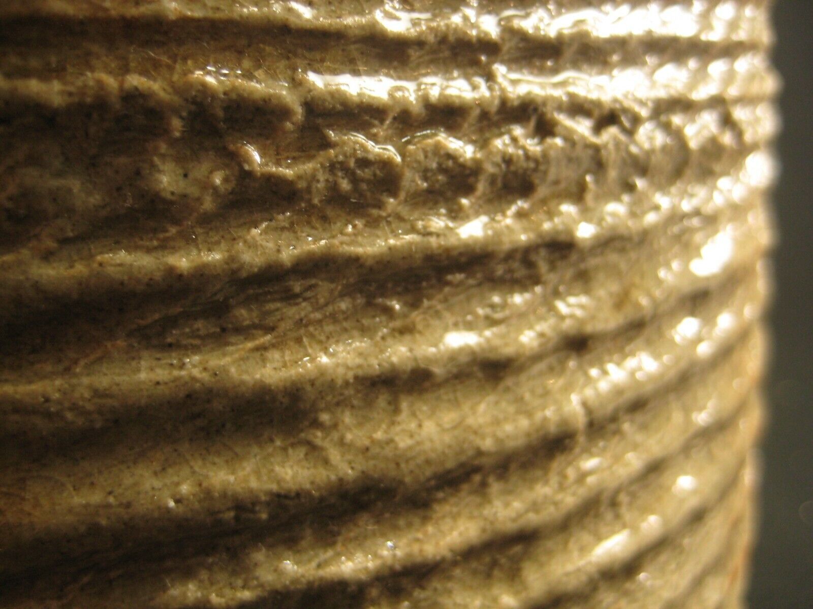 Vintage Japanese Handmade Oribe Ikebana Flower Vase With Rope Impression 10"