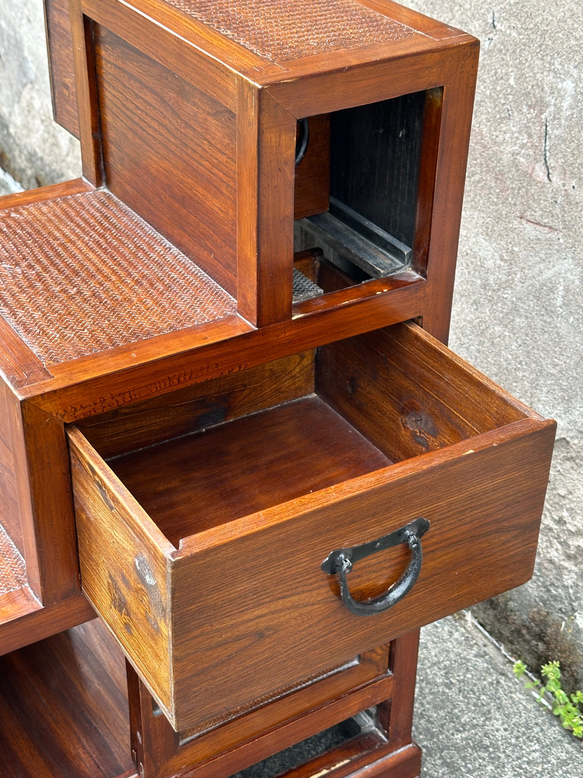 Vintage Japanese Keyaki Step Chest Kaidan Dansu Rattan Double-Sided ~36"H
