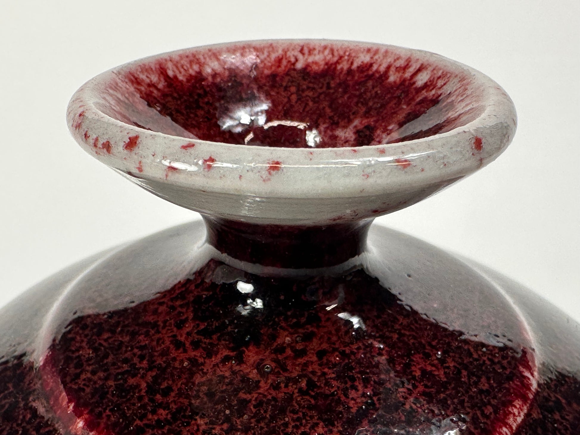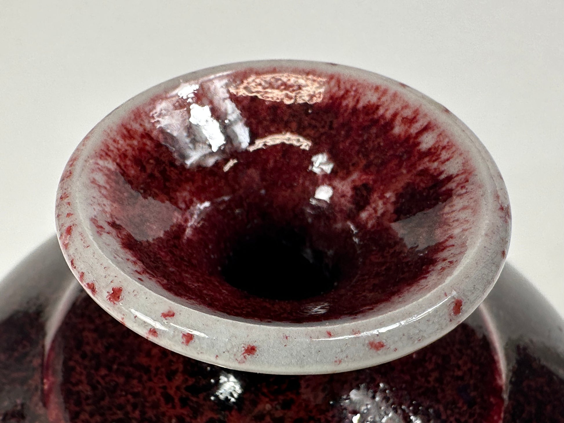 Vintage Japanese Studio Vase with Copper Red Flambé Glaze, 4"H